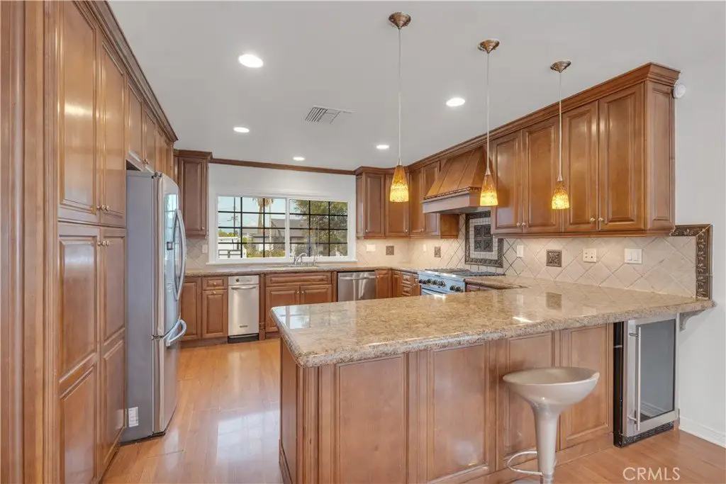 Location, Location, Location! This beautiful home in the heart of Northridge offers 3,137 sq. ft. of open living space on an 11,000 sq. ft. lot. The expansive floor plan combines a spacious living room, dining area, and family room, creating a bright and inviting atmosphere. The large kitchen features granite countertops, slide-out drawers, a trash compactor, wine refrigerator, modern refrigerator, and 6-burner stove. The home includes 3 bedrooms and 3.5 bathrooms, each with its own private bath. The oversized master suite boasts a huge walk-in closet, recessed lighting, sound system, water softener, central vacuum, and abundant storage in the large garage. The backyard is a true showpiece, designed for both relaxation and entertainment. A custom spa/jacuzzi—professionally installed on a special foundation—comfortably fits 10–15 people and features wave functions, jumping water, and stunning night lighting, creating a private resort experience at home. There is also room to build an ADU or guest house, plus ample parking with space for an RV.