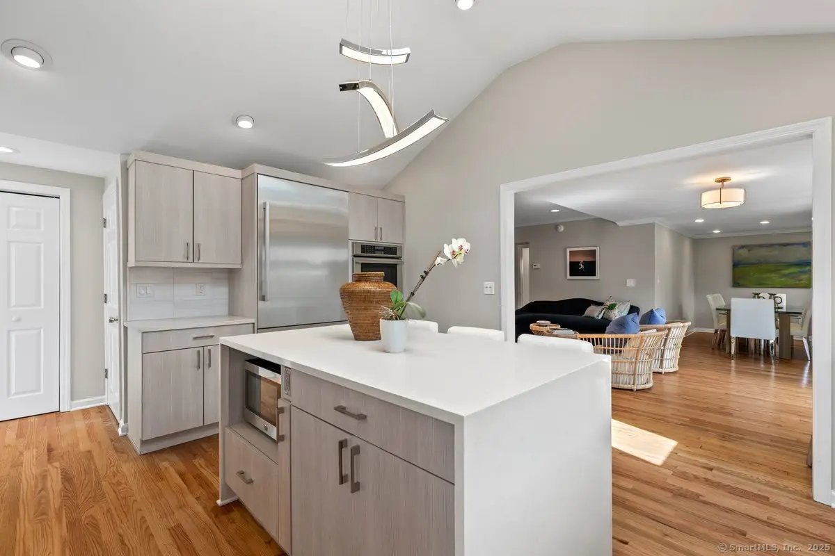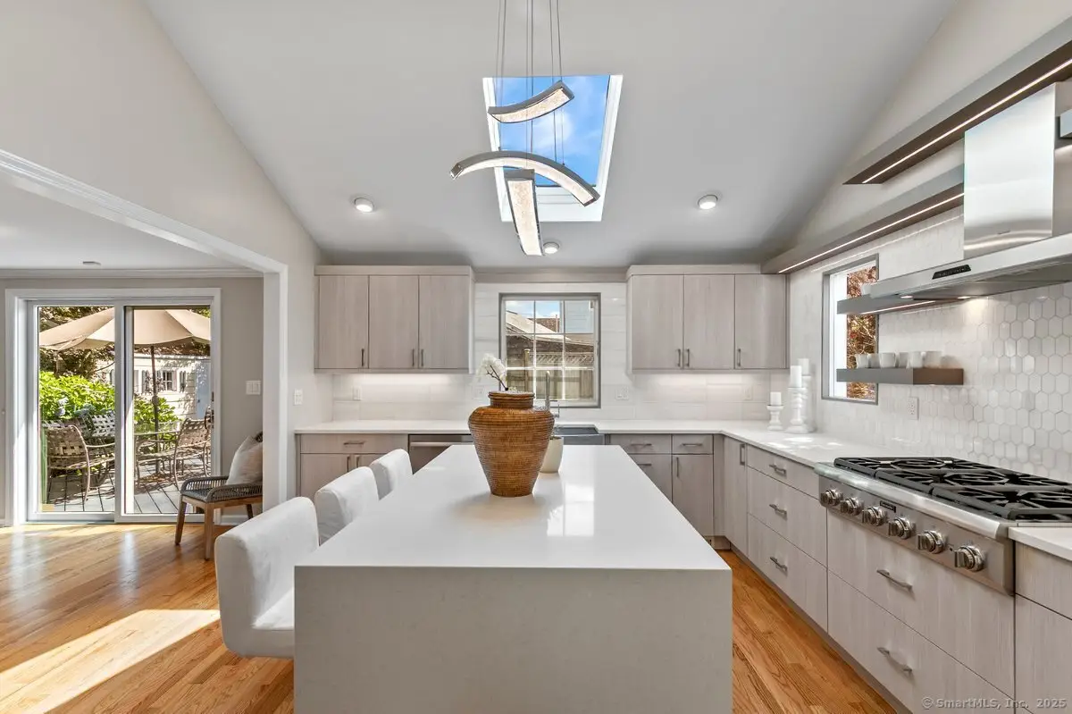 A coastal Connecticut entertainer's dream, this newly updated home is located on a quiet cul-de-sac in the highly desirable Gregory Point neighborhood. With deeded beach access just steps away, you can enjoy stunning sunsets from the sand, your kayak, or stand-up paddleboard. The flexible and open floor plan is designed for both everyday living and seamless entertaining, featuring a two-story fireplace crafted with masterful detail and a custom kitchen designed by award-winning Karen Berkmeyer, as seen in New England Home Magazine. Coastal-curated landscaping and a meticulously maintained exterior enhance the home's charm, while the expansive third-floor bonus space, with water views and a private balcony, offers the perfect spot to relax or host. A first-floor primary suite is also a possibility thanks to the versatile layout. From thoughtful design to exceptional craftsmanship, this Gold Coast gem will wow you at every turn.