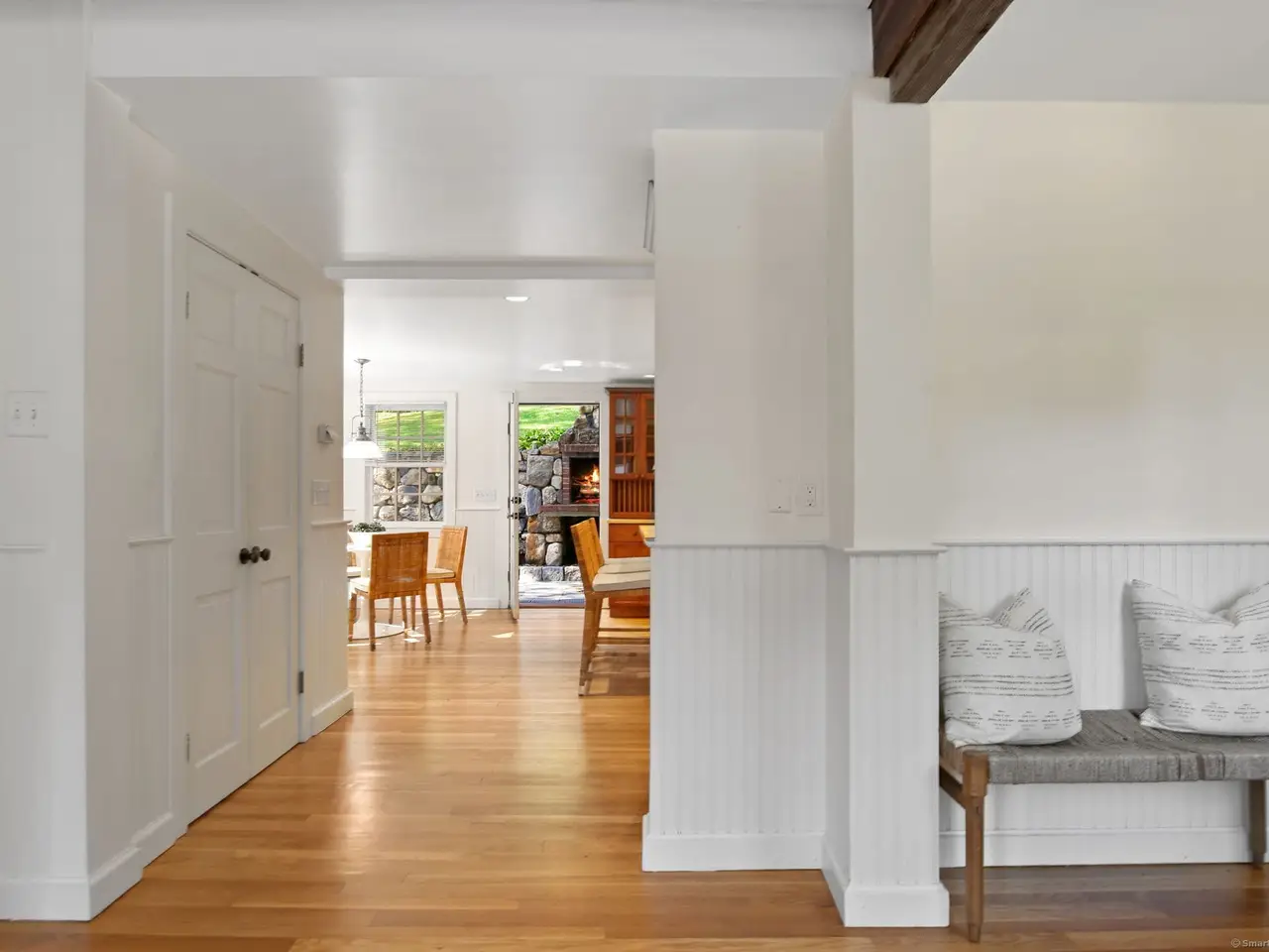 Brimming with character and vintage charm, this home is anything but ordinary. Cathedral ceilings and timeless wooden beams create a warm and welcoming ambiance in the formal living and family rooms, while the light-filled eat-in kitchen invites long breakfasts, late-night conversations, and everything in between. The flexible floor plan adapts to your lifestyle, offering a private office with full bath-or guest room on the main level. Upstairs, the spacious primary bedroom is complemented by 3 additional bedrooms, creating space for everyone-whether for family, guests, or personal retreats. This home is equally at ease hosting a lively dinner party or enjoying a quiet Sunday morning with coffee on the private patio, which seamlessly extends your living space outdoors to enjoy fresh air in comfort and style. The separate cottage is a rare find, complete with its own entrance, kitchen, full bath, sauna, and expansive deck overlooking the property. Ideal for extended stays, creative pursuits, or simply as a personal sanctuary. The extensive upper lawn, both sunny and private, offers ample level space for gardens and family games. Set on over an acre, the grounds offer space to breathe while still being just minutes from the dining, shopping, and the conveniences of Darien, New Canaan, and Norwalk-providing both privacy and unmatched accessibility. A character-filled home blending warmth, flexibility, and lifestyle, all in an extraordinary location.