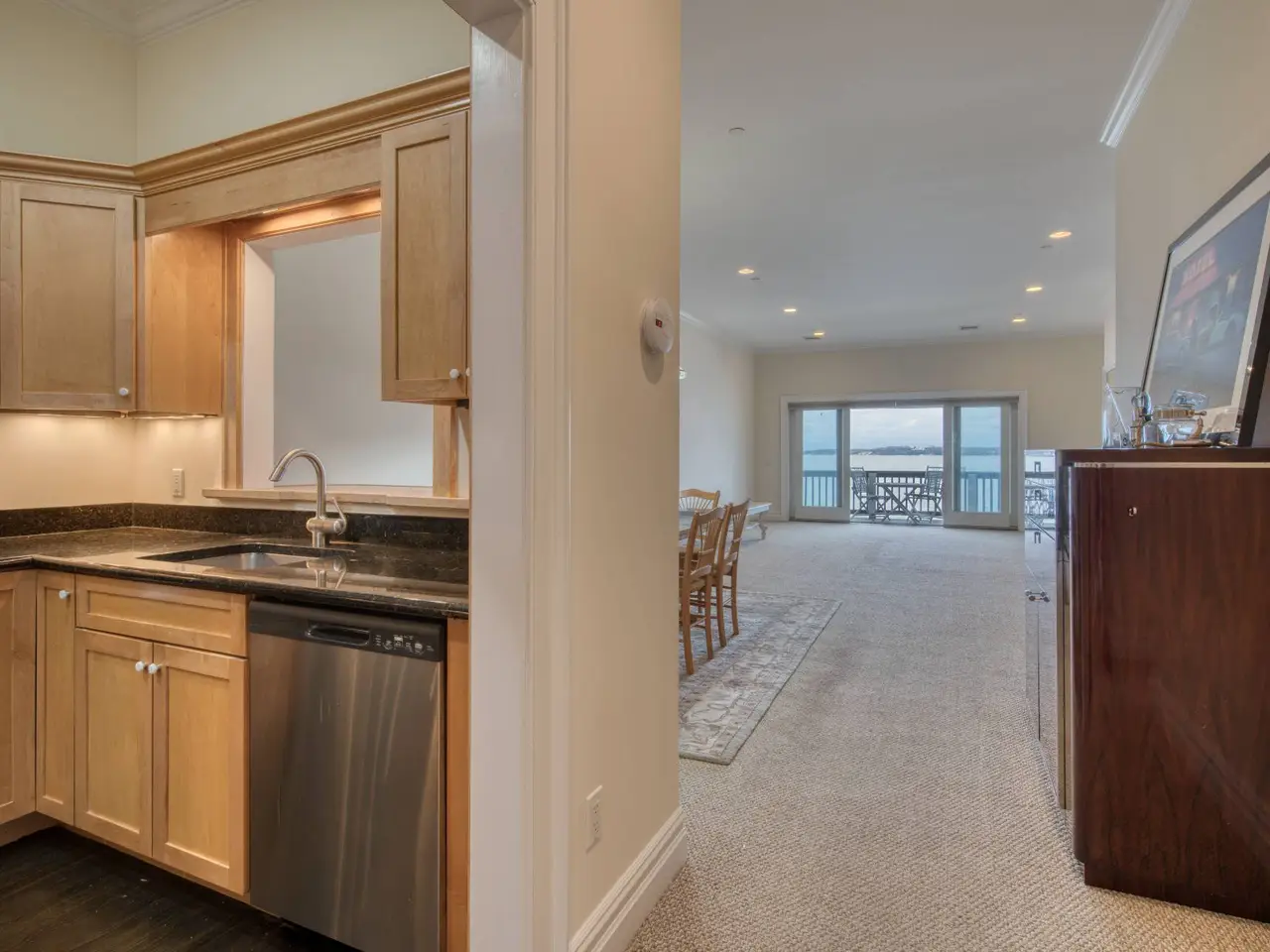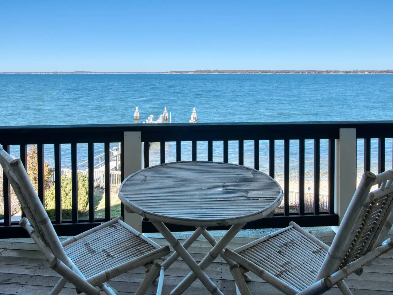 What could be more inviting than sitting on your expansive waterside deck overlooking Long Beach and spectacular sunsets? Spend your summer or year round in this expansive 2,100 square foot, three bedroom, three and a half bath waterside condo. Spectacular water views are not to be missed. Amenities include a lower level indoor parking garage, golf simulator, small gym, elevator access up to the second floor condo unit and down to the lower level. Use the deep water dock, lie on the beach or enjoy the fresh air while meeting friends on Foster Memorial Long Beach for a bonfire or dip in the bay, one of the best Southampton town beaches in the Hamptons with two lifeguard stations. Fabulous area for kite surfing, kayaking, yoga or quietly reading a book. A rooftop deck has soaring views of Noyack Bay, Noyac Harbor and surrounding, Shelter Island, North Fork, Southold and Greenport. Only a few minutes from Sag Harbor Village, five minutes to Bridgehampton and not far from pristine ocean beaches.