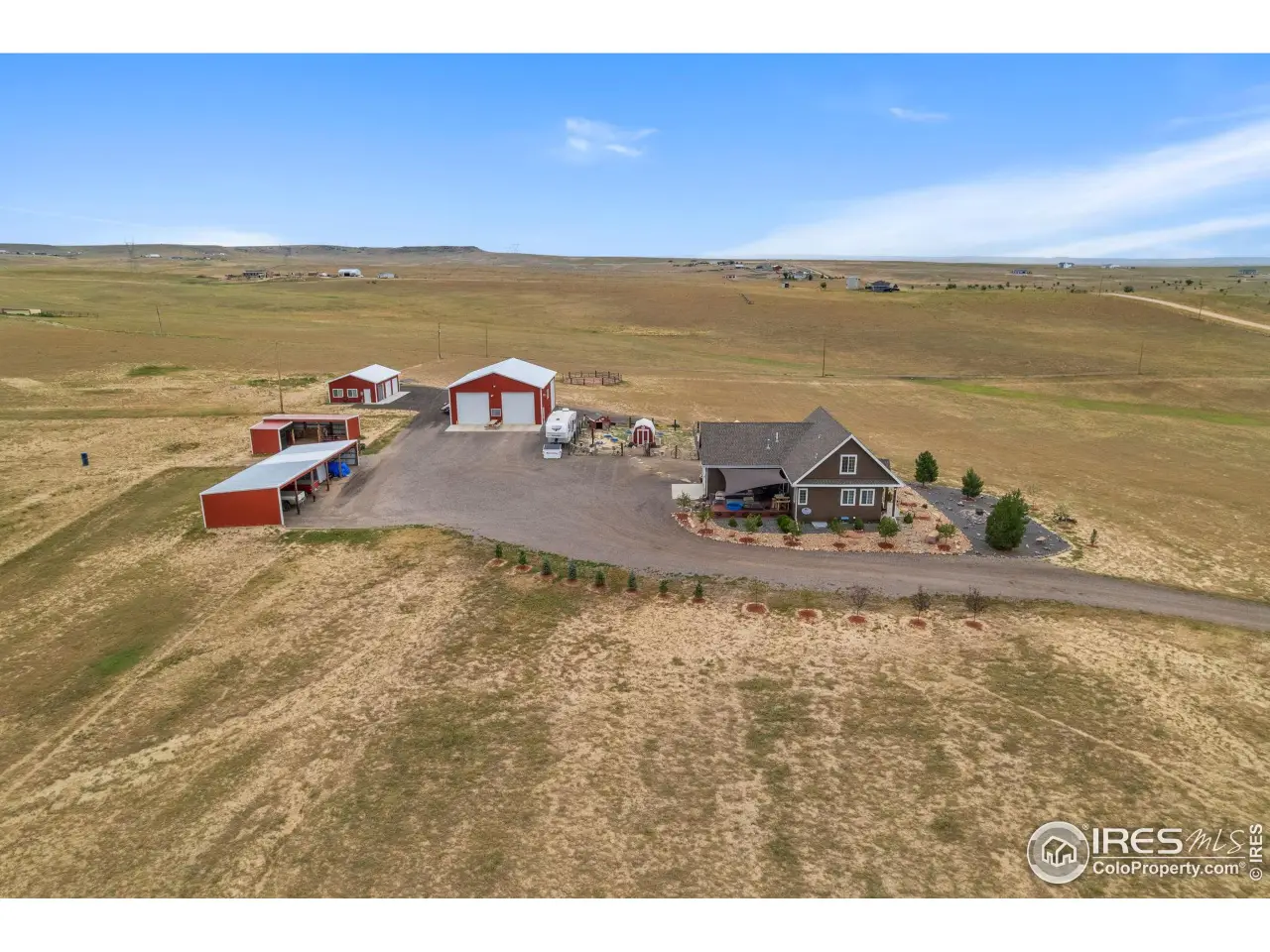 Escape to your own private Colorado paradise! This stunning 45-acre property offers the quintessential country lifestyle with ample space, breathtaking views, and versatile outbuildings. This 3 bedroom, 4 bath, 2 story has fresh exterior paint and new windows. The cook in your family will enjoy a recently updated kitchen with new granite counters, new appliances that are included, new fixtures, and an island with a breakfast bar that is also great for meal prep. Tile flooring accents the main level for easy maintenance and durability. The main level primary bedroom has a soothing soaker tub, separate shower, and a huge walk-in closet. A main floor office is perfect for working from home. The laundry room is on the main level. Upstairs you will find a spacious loft area, 2 more bedrooms and a full bath. Luxury plank wood flooring accents the upper level. The fully finished basement has a full bath, a rec room, and a great bonus area to watch the games or a good movie. The 2 car attached garage has a new insulated garage door and is heated. Outside you will find a deck off the kitchen with a sail shade, a 40' x 50' shop that is heated, insulated, has 220V, and has 3 14' high insulated doors with openers perfect for your RV storage or work trucks, and a RV plug-in. A second 36' x 20' outbuilding/flex space is heated, insulated and has mini split AC, a 63' x 24' auto shed, a 23' x 8' hay shed with two attached 12' x 12' storage areas. Your chickens will have deluxe accommodations in the country-cute chicken coops. There is room to roam and also a round pen for your horses. Property is serviced by Poudre Valley REA electric, propane, well and a septic. The internet is Nunn Telephone Company. Meticulously maintained and nicely landscaped by the sellers. It's country living at its best! We would love to welcome you home!