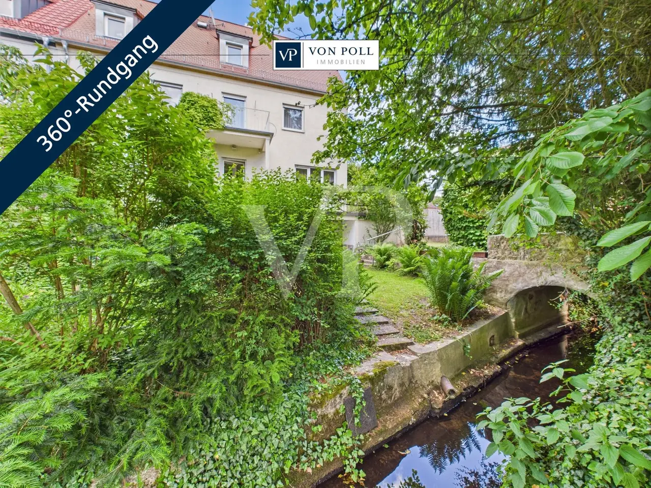 This charming corner terraced house, built in 1936, is located in the sought-after Zerzabelshof district – one of Nuremberg's most popular residential areas. The quiet surroundings, proximity to the Tiergarten park, and excellent transport links make this location particularly attractive for those seeking to harmoniously combine urban living with nature. The house offers approximately 256m² of living space with a total of 9 rooms, including 5 bedrooms and 3 bathrooms – ideal for families or those with a need for plenty of space. The floor plan is well-thought-out and flexible – with potential for the functional redesign of individual areas. Thanks to its size and clear structure, the property is also ideal for multi-generational living or for combining living and working under one roof. A spacious terrace on the ground floor and a balcony on the upper floor offer beautiful views of the lovingly mature garden – with direct access to the Goldbach stream. The approximately 941m² property is a green oasis with a special charm. The attic apartment has been reliably rented since August 1, 2022. The last comprehensive renovation of the building took place in the 1970s. In the 1990s, both the ground floor bathroom and the windows were replaced. The roof was completely replaced in 2010, and in the same year, the heating system was converted from oil to a modern gas heating system. Although a thorough modernization is pending, the property offers ideal conditions for a stylish and contemporary reinterpretation according to your own ideas. An additional highlight is the adjacent property, which is currently leased by the owner from the City of Nuremberg. It is easily accessible via a small bridge in the garden. The existing lease can be taken over and expands the green space by approximately 800 m² – ideal as a playground, retreat, or additional garden area. Such an ensemble in this location is a rarity. If you are interested, we look forward to hearing from you – we would be happy to provide you with further information or arrange a viewing appointment.