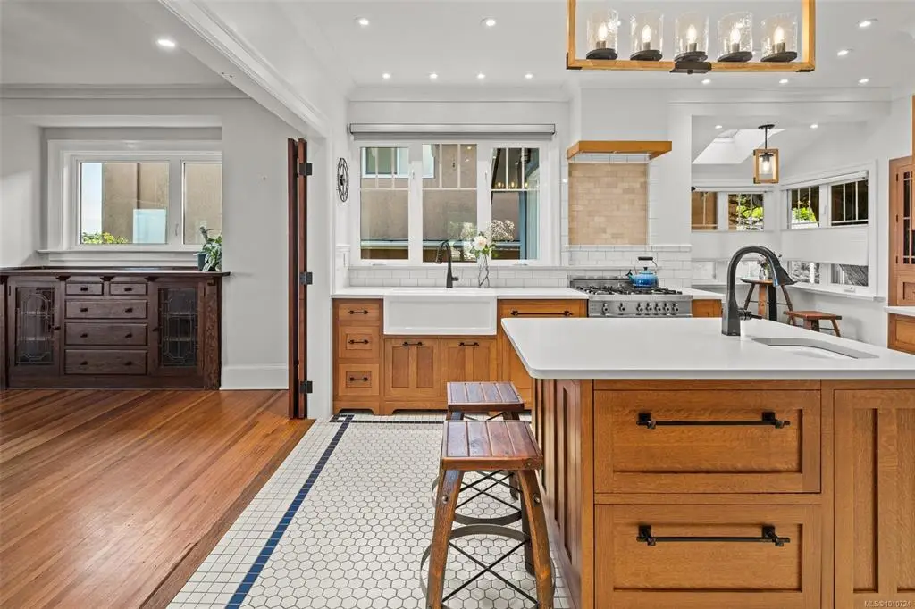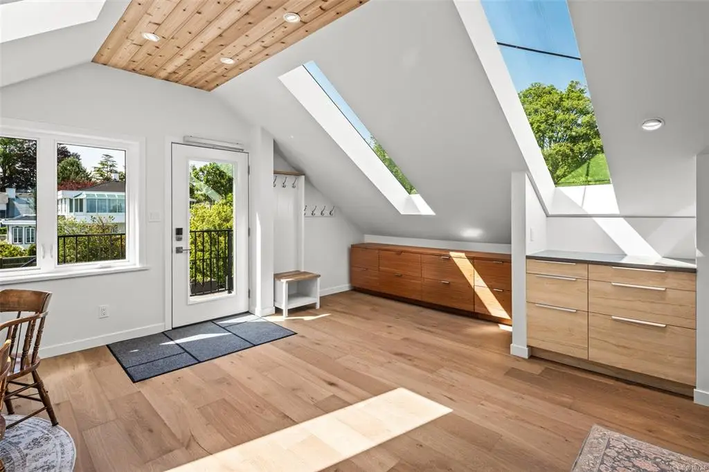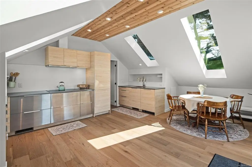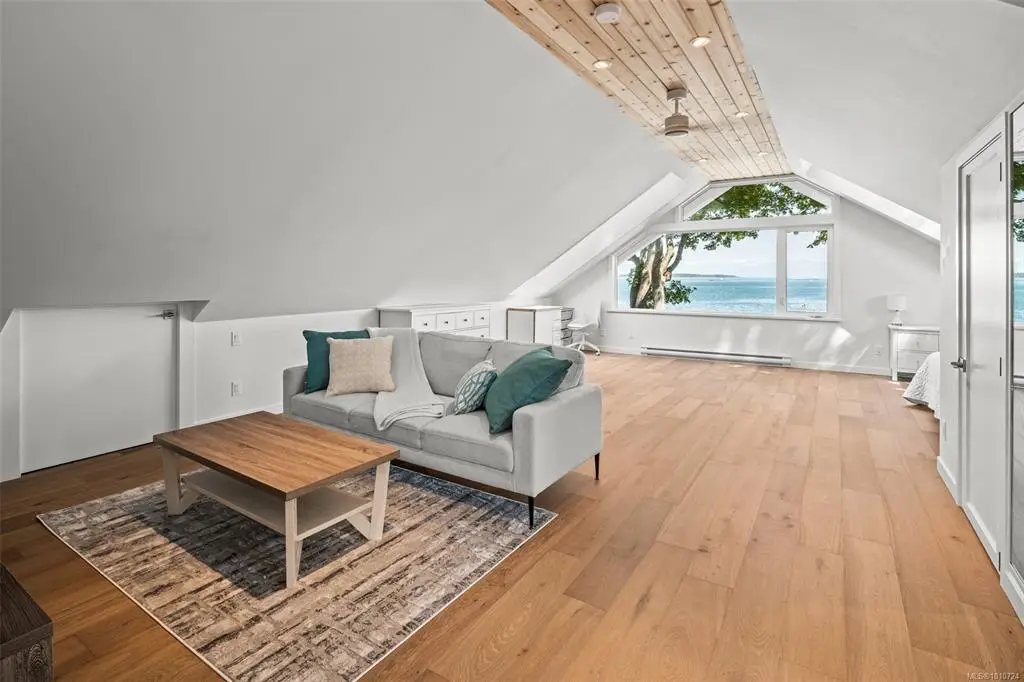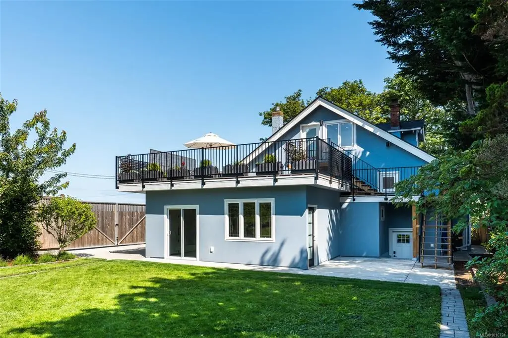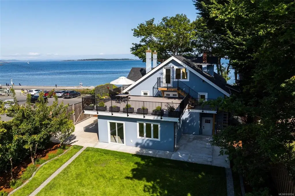 Welcome to The Esplanade – Victoria’s most beloved beachfront community. Tucked along the quiet, tree-lined side of sandy Willows Beach, this charming, fully renovated character home sits on an expansive 11,500-plus square foot lot. The primary residence offers three bedrooms, one bathroom, a custom kitchen with handcrafted rift-cut oak cabinetry, Sub-Zero appliances, in-line dining and a cozy home office with breathtaking 180° ocean views. Upstairs, the dramatic one bedroom loft suite features soaring 8-foot skylights, panoramic views and a 650 square foot rooftop patio made for sunsets. The walk-out basement includes two access points and provides room to expand or create two additional one bedroom suites. The versatile floorplan makes this an ideal multi-generational living opportunity. A private backyard filled with mature fruit trees and two separate driveways opens the door to future development. Rarely do homes come up for sale in this magical seaside setting on Willows Beach.