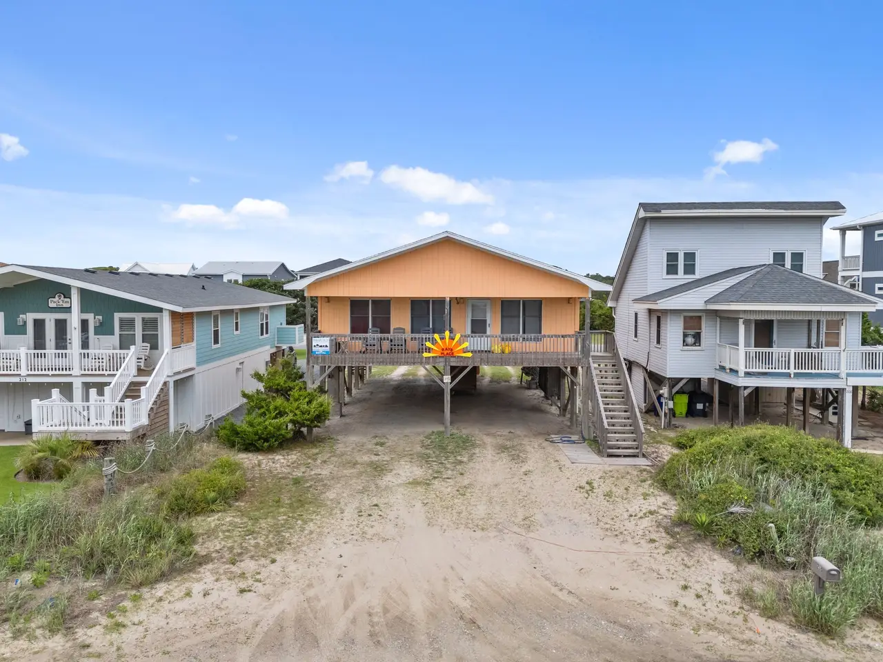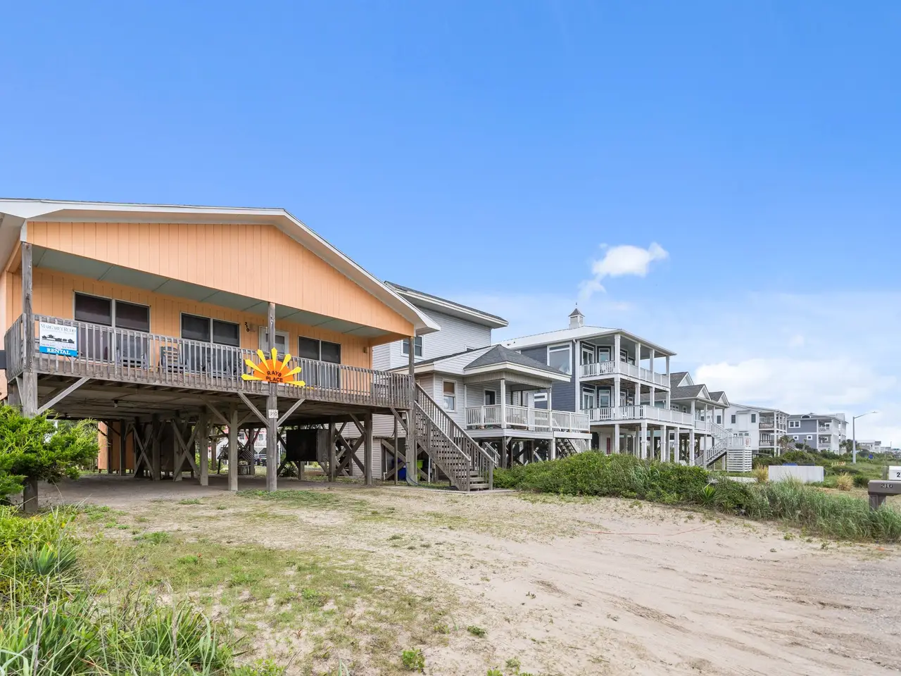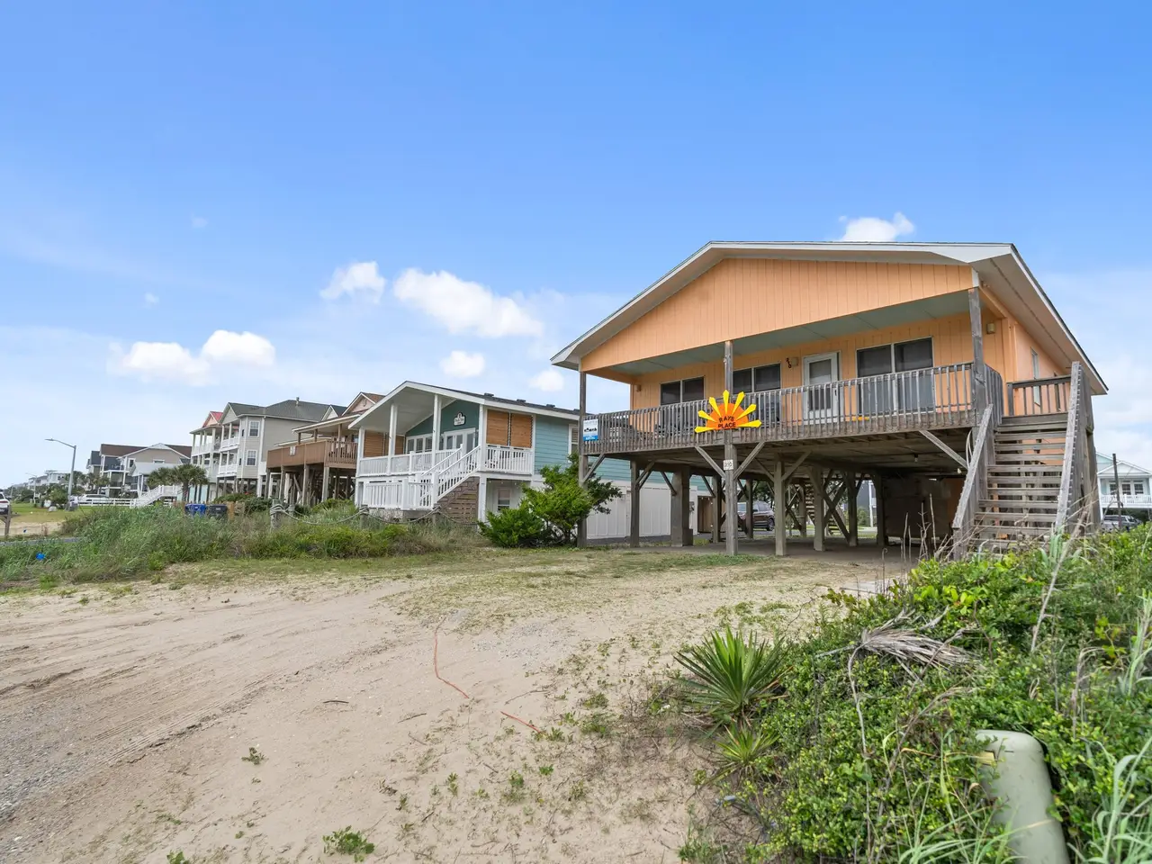 Welcome to your seaside sanctuary—offered fully furnished and lovingly held by one family since 1985. Ideally positioned just steps from the shore on desirable West Beach Drive, this second-row coastal retreat offers captivating ocean views and timeless charm. Inside, the home features four spacious bedrooms and two full baths, thoughtfully arranged in a split floor plan that provides privacy and comfort for guests. Each wing of the home includes two bedrooms, a bathroom —perfect for hosting with ease. Vaulted ceilings, abundant natural light, and warm wood finishes elevate the airy main living space, where a whimsical, custom train glides above the kitchen and living room, adding a one-of-a-kind touch. Step outside onto the expansive front deck to enjoy sweeping ocean views and salty breezes, or retreat to the large back deck for a more private outdoor escape. Below, enjoy ample covered parking and space to design your dream outdoor entertaining area or add a coastal lounge. Whether you're searching for a serene getaway, an investment property, or a new family tradition, this Oak Island treasure delivers. Located just minutes from Southport, Wilmington, and Myrtle Beach, the home is also part of an active rental program—advance notice for showings may be required due to guest occupancy. Luxury, location, and legacy—your coastal dream begins here.