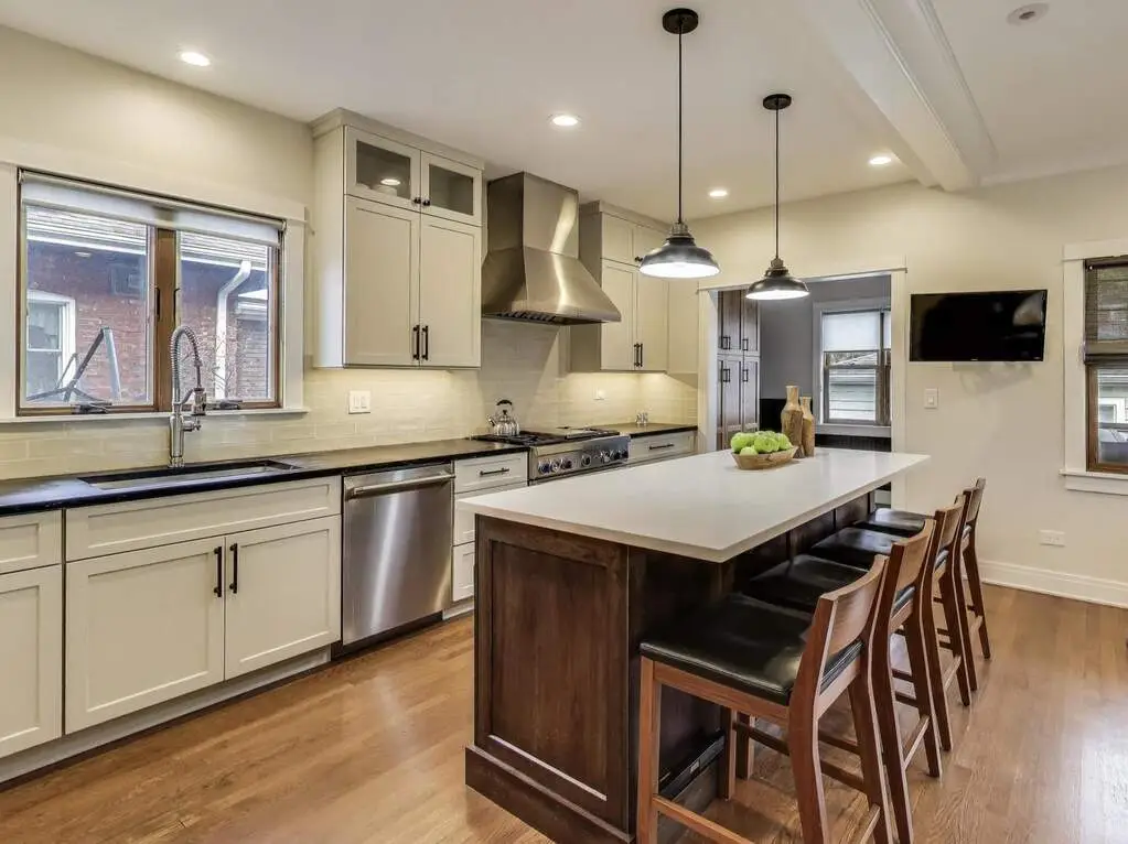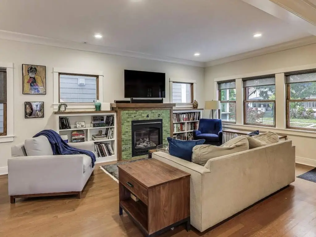 Welcome to this stunning, remodeled home nestled on a friendly, tree-lined street just moments from the city. Fully renovated to the studs in 2019, the open and inviting floorplan is flooded with light. The welcoming front porch was constructed with maintenance-free TimberTech and has the look of real wood with greater sustainability. Step inside to the spacious living room which includes a custom tile surround fireplace fueled by natural gas and enclosed with built-in bookcases which can also be enjoyed from the attached dining room. The kitchen is a showstopper and features a large island with quartz countertop. Oversized, gray cabinets outline the wall and are a striking contrast to the black, soapstone countertop. Thermador appliances, floating shelves, and a coffee nook are a few more touches that complement this incredible space. Directly off the kitchen is an attached family room and mud room with large, oak pantry and seating area with hooks. There is also a first-floor bedroom located off the dining room and full bath with custom tile and bathtub. The second floor features a large primary suite with a spa-like bath and dual walk-in closets. An adjacent laundry room with front loaders and custom, maple shelves for folding. And no need to lug around an ironing board since it folds out from the wall! There are two additional bedrooms and a large, hall bath with beautiful tile, heated floors, and large bathtub. A built-in, floor to ceiling bookcase is featured in the hallway next to the cozy sunroom drenched with light. White trim and baseboards bring a clean, modern finish to first two levels of this home. A fully finished mid-century basement is an entertainer's dream. The rec room features a bar with sink and shelving for beverages. The bar currently has an 8-tap kegerator (negotiable). The back of the basement presently serves as an in-law kitchen and brewery (appliances and equipment negotiable). The fourth bathroom is in the basement and is just as wonderful as the rest with a traditional Chicago style design with "daisy" pattern tile and a full, walk-in shower. Clad in Hardie Board siding, the oversized garage has a rear party door providing direct access to the paver patio. Steps to Oak Park Avenue restaurants and the Blue Line and easy access to the Eisenhower expressway. Beyond move-in ready!