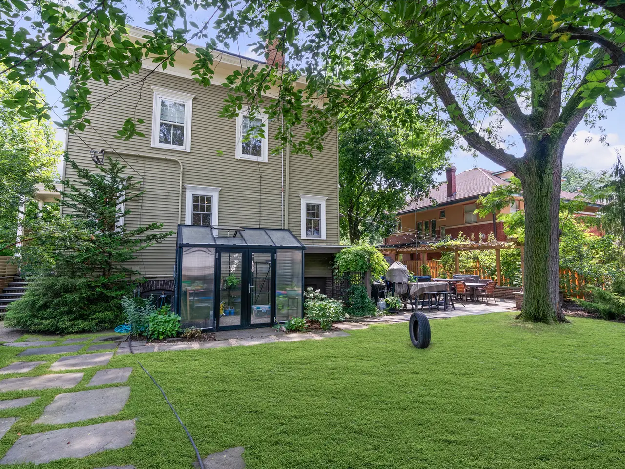 Timeless. Elegant. Captivating. These are just a few adjectives to welcome you at 333 Linden Avenue. A one-of-a-kind home on an incredible 75'x168' fenced in corner lot in the Frank Lloyd Wright Historic District offers an impressive slate entryway to the front door. Step inside this late 19th century Italianate Victorian and be prepared to swoon. Gorgeous hardwood floors, high ceilings, beautiful lighting, and a grand staircase are the showcase of the large foyer. The double parlor living room with its tall windows, gas fireplace and built-ins is ready to wow everyone who walks into the room. Perhaps the most delightful room in the house is the adjacent sunroom. Open the windows and let the breeze flow...it's the perfect place to unwind or enjoy an intimate gathering. Whether your dinner gathering is small or large, there is room for everyone in the formal dining room and they are going to love the meal you prepared for them in the gourmet kitchen which was completely renovated in 2017. A Capital 36"" five-burner cooktop, Bosch double ovens, Frigidaire Professional refrigerator, custom cabinetry, and white quartz counters are waiting to assist in your culinary adventures. Entertaining while cooking? Not to worry. Your guests can gather around the kitchen peninsula, the dinette area, or in the adjacent den, so you won't miss a moment. The cozy den, also renovated in 2017, includes custom built-ins, gas fireplace, and a fantastic bar area with a hammered stainless steel sink and honed black granite counters. The fantastic renovated pantry/mudroom has an abundance of storage and drop zone area. Ascending up the grand staircase to the second floor, you will discover all five bedrooms and two full baths on the same level. The primary suite is a dream. Not only is it a serene room for getting your beauty rest, there is a stunning ensuite bath, fully renovated in 2017, with a custom vanity, bubble soaking tub, separate shower, and a beautiful marble mosaic floor. The walk-in closet has custom organizers. The dreamy bonus is another private sunroom surrounded by the towering trees outside. A place of peace and serenity to begin and end your day. The second bedroom can be accessed from the hallway or the primary bedroom, making it a perfect nursery, home office, or dressing room. The third bedroom is bright and spacious, and offers a wall of spacious built-ins. Two additional bedrooms offer nice closet space and lovely views of the backyard. The hall bath is quite charming and was updated in 2022. The partially finished basement is the perfect hang out space with a finished rec room and full bath. There are multiple unfinished storage rooms and a laundry area, but the best bonus of all is a temperature controlled, walk-in cooler that makes for the perfect wine cellar. With 4000 square feet of living space (there's also a huge unfinished attic with a large cedar closet), don't forget to spend time outside in the lush and professionally landscaped backyard. Dine al fresco, enjoy a beverage with friends, or curl up with the latest best-seller on the expansive patio under the lights and pergola. Love to garden? There is plenty of room for your green thumbs to get a workout in the charming greenhouse (installed in '21) and fenced in raised garden area. Towering trees shade the yard and house, and a multitude of perennials provide a bounty of blooms and color season after season. Additional features of this special home include a two-car garage, two additional parking spaces, owned solar panels ('19), new washer and dryer ('24), new wood fence, gutter guards, and water heater (all in '25). Surrounded by other historic homes on a tree-lined street, enjoy an active and friendly neighborhood community, and with the shops and restaurants of the vibrant Hemingway District, Scoville Park, and the Oak Park Library three blocks away, the location has the best of everything Oak Park has to offer. Let your dreams come true today. Welcome Home!