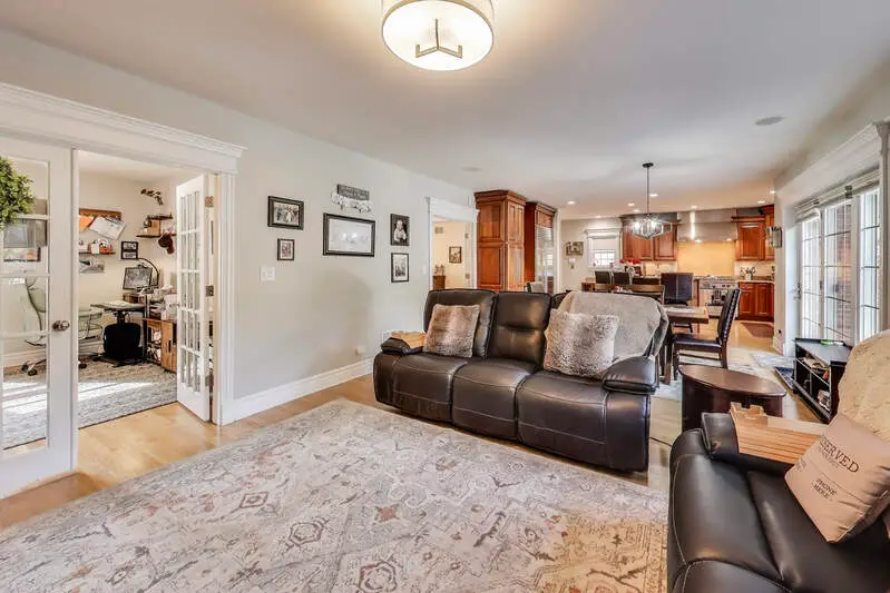 Prime Oak Park location! This impressive Tudor sits on an oversized 53x173 lot with a side drive and 3-car garage. Offering 5 bedrooms, 5.1 baths, and over 5,100 sq. ft. of living space, the home blends timeless character with modern updates. Step into a grand entry with a stunning, height-adjustable chandelier. The formal living room with fireplace flows seamlessly into the dining room. A chef's kitchen features a Wolf range, Sub-Zero refrigerator, Bosch microwave, and large island-perfect for cooking and conversation. Sun-filled family room opens to a spacious (590 sq. ft.)Trek deck (50-year warranty) with a custom 3-season room in progress (permits complete). Second floor includes 4 bedrooms-two ensuite (including the primary with walk-in closet)-plus a second laundry. The bright third level offers a new bath, walk-in closet/dressing table, and flexible living space, ideal for guests or extended family. Lower level highlights recreational/workout room, a "Costco closet," additional laundry, great storage, and full bath. Beautifully landscaped grounds feature uplighting, a firepit, and expansive yard for entertaining. Updates include solar panels, 2 new HVAC systems (last 6 yrs), hot water tank, new Bosch microwave, mechanical skylight blinds, all new windows, California Closets, and more. A rare Oak Park offering with space, style, and thoughtful improvements throughout!