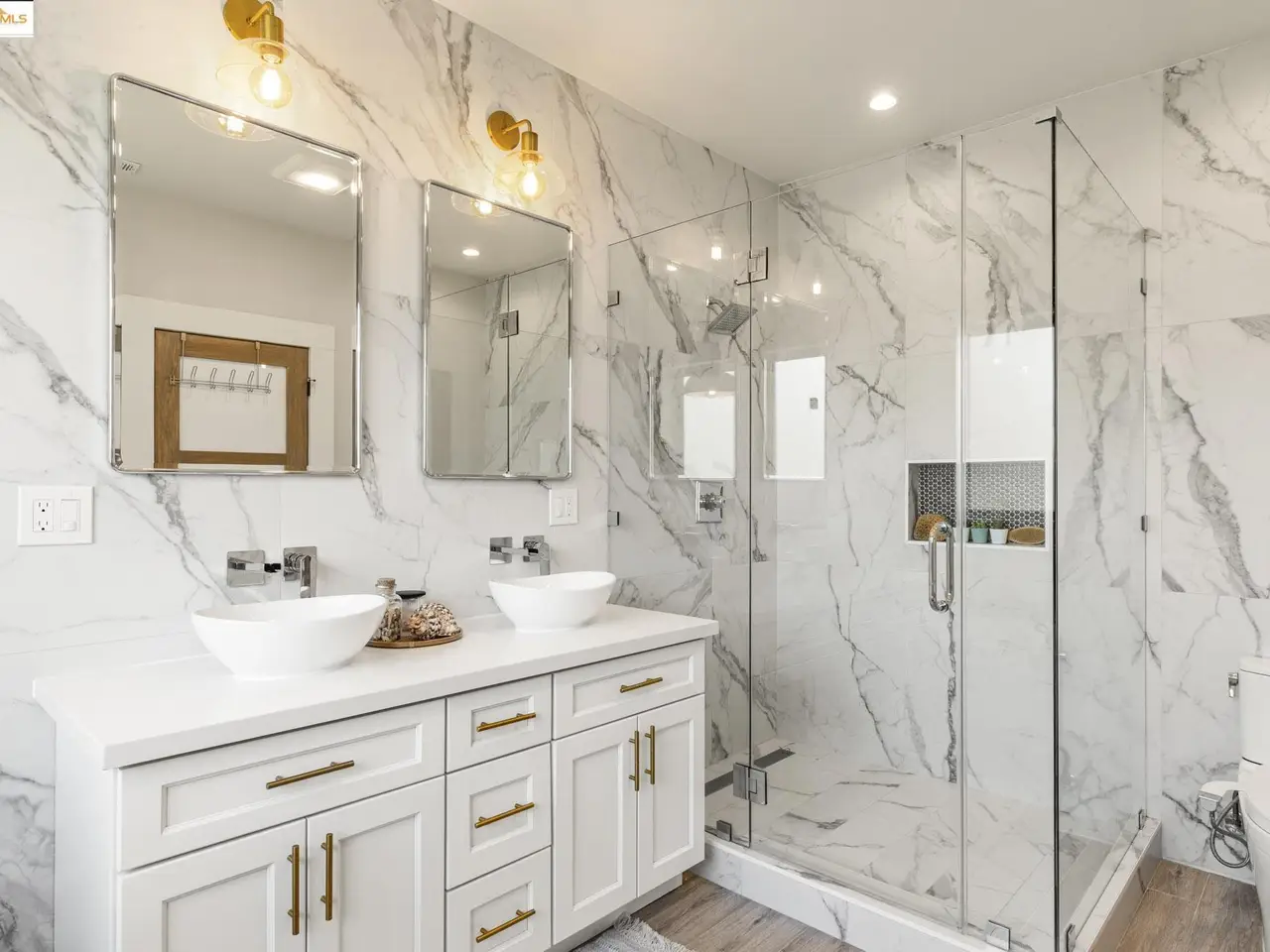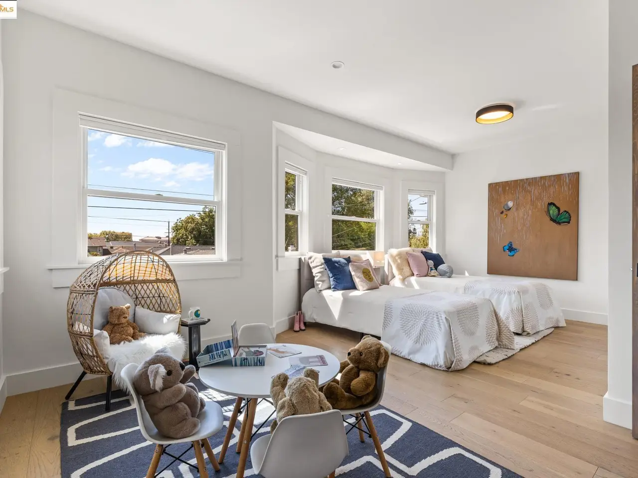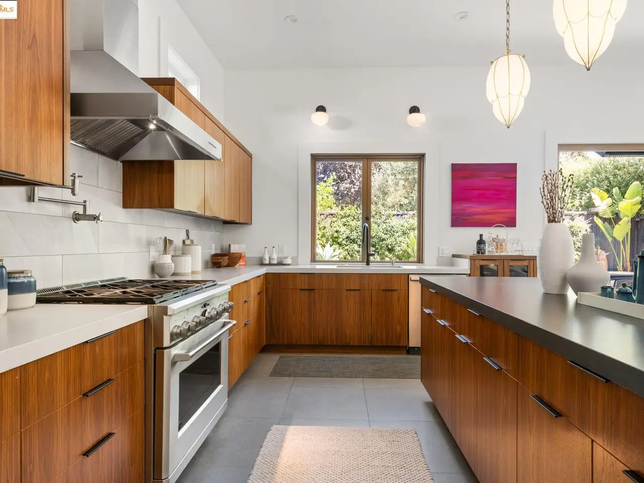 Welcome to this reimagined and remodeled home where stunning curb appeal meets sleek, high-end interiors. Modern landscaping, crisp white trim, bold black windows, and blooming bougainvillea set the stage. Inside, wide-plank wood floors, curated lighting, and designer finishes flow throughout. A sun-filled den and main-level bedroom and bath lead to a dramatic great room with soaring ceilings. The chef's kitchen features a central island for gathering, high end appliances, walk-in pantry, and two bifold doors which completely opens up the home to the landscaped backyard. Upstairs, you will find three bedrooms including a luxurious primary suite with balcony, walk-in closet, and spa bath with a huge designer soaking tub. Conveniently located close-by is a gracious bedroom, fun bath and another oversized en-suite room. A flexible alcove is ideal for a home-gym, office, play space or reading nook. Grand laundry room with so much storage! Detached storage shed and bike shed, EV charger, Nest thermostat and newer systems throughout. Fabulous North Oakland neighborhood with so much to offer: Bushrod and Dover Parks minutes away, trendy Temescal and Rockridge shops/restaurants, Whole Foods and BART! What more could you ask for!
