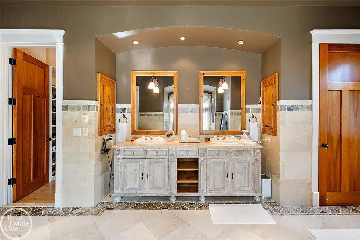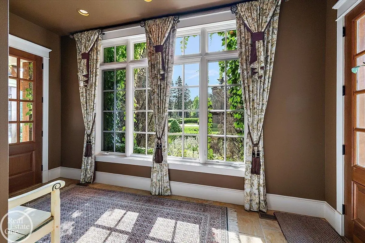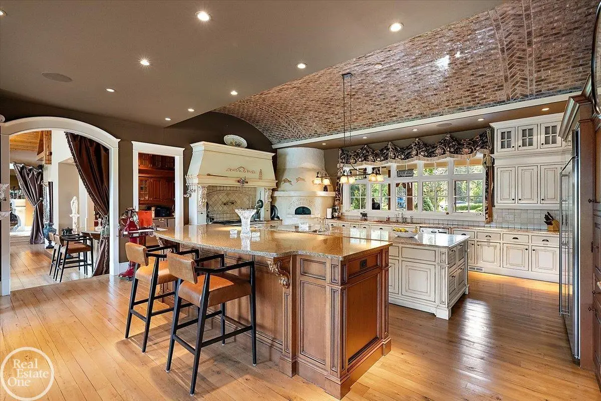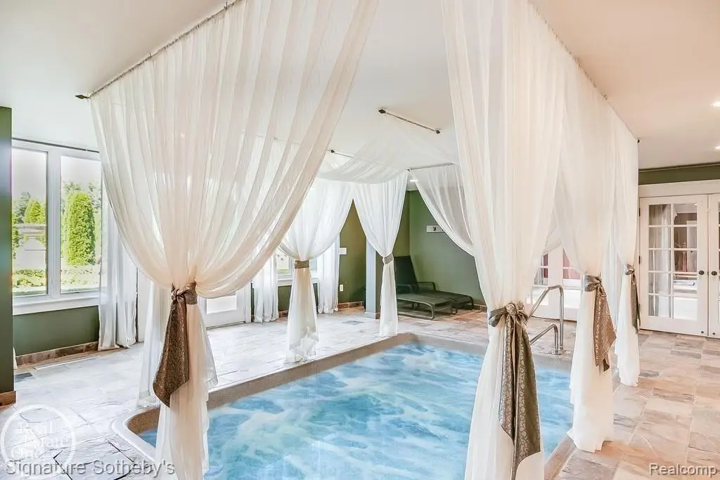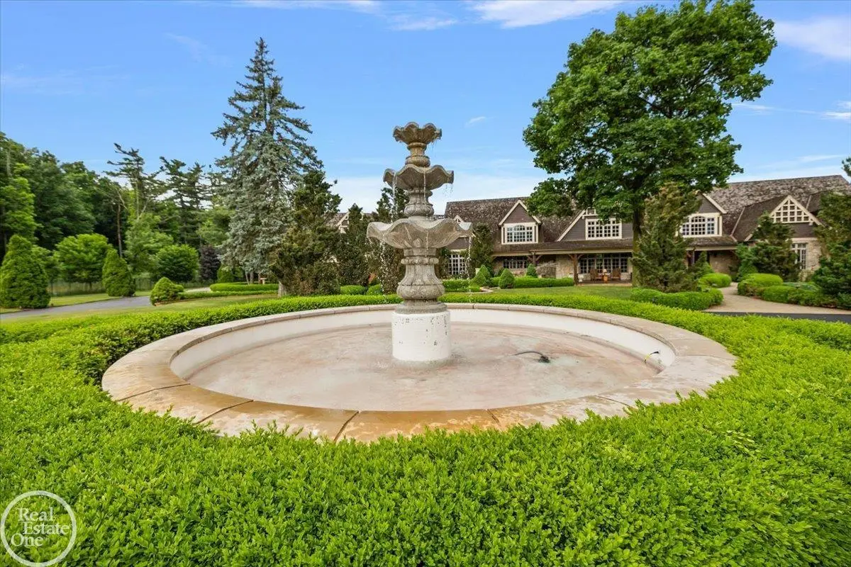 Discover an exceptional opportunity with this private 12-acre French Country Manor Estate in Oakland Township, offering over 12,000 square feet of stunning living space. Enjoy expansive terraced patios leading to beautifully designed Parterre Gardens and a built-in swimming pool measuring 25 feet by 55 feet. A helipad adds convenience for helicopter access right in your backyard, along with a state-of-the-art helicopter hangar. The property features extensive landscaping and an irrigation system covering all 12 acres, a 6-car garage, ample hangar storage for car enthusiasts, and a horse barn equipped with 6 stalls. The gourmet kitchen is a chef's dream, complete with a separate pizza oven and commercial-grade appliances. The spacious great room boasts beamed ceilings and large windows that offer views of the grounds. The estate includes 6 fireplaces, 6 bedrooms, a private loft area, maple-planked flooring, and a finished walk-out lower level with a 15-foot by 10-foot indoor lap pool and gaming spaces.