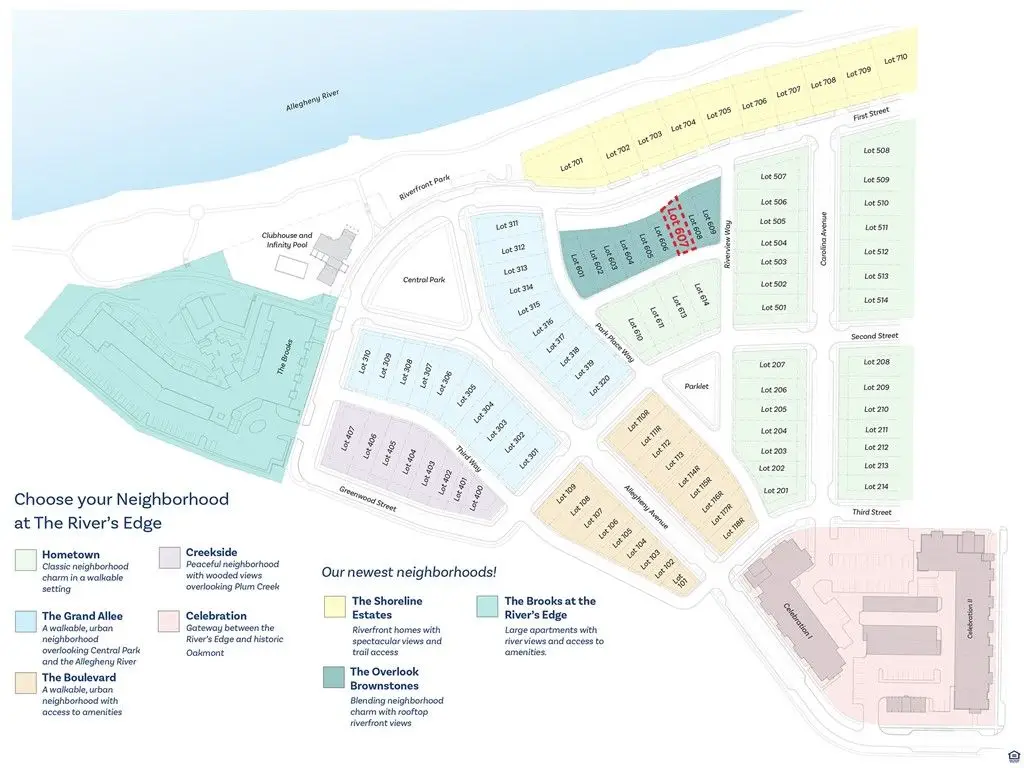 Welcome to the Overlook Brownstones, modern city-style vertical residences within The River's Edge of Oakmont community. This brand-new residence stands tall along the Allegheny River with water views from the multi-level balconies and large top-level terrace with fireplace. As a corner unit, many tall windows make it bright and airy. Interior features include an in-home elevator, open floorplan with 10-ft ceilings on main level, 3C/B?B=4-bedroom suites and bonus room. Finished to drywall stage > buyers can make interior selections and customize to their liking. The riverfront clubhouse for residents includes a fitness center, infinity pool, great room/party room, and fire-pit. Low-maintenance community C/B?B=no more cutting your grass! Paved walking trail along the water. Close to the shop and restaurants of the Oakmont business district. 30 minutes or less to Downtown, Oakland or Bakery Square.