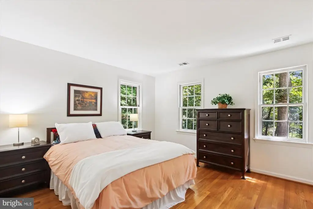 Step into your classic dream home, a stunning retreat nestled on a private 0.95-acre lot. This freshly painted and impeccably maintained residence offers nearly 4,900 square feet of comfortable living space with five spacious bedrooms and 3.5 baths. No detail has been overlooked. Enter the elegant two-story foyer onto a gleaming polished porcelain tile floor. From there, the floors transition to beautiful oak hardwood that flows throughout the main and upper levels (with the exception of the bathrooms). The large country kitchen is a chef's delight, featuring brand new quartz countertops, classic oak cabinetry, and views of your serene backyard. It opens onto an expansive rear deck, perfect for outdoor dining and entertaining. A cozy family room with a wood-burning fireplace and brick hearth is the ideal spot to unwind, while large windows throughout the main floor offer tranquil views of the surrounding sylvan retreat. A convenient enclosed breezeway connects the two-car garage to the main house, providing access to both the front patio and the rear deck. The main level also includes a large laundry room that also accesses the breezeway. Upstairs, the primary bedroom is a true sanctuary with multiple closets, a spacious sitting room, and an updated ensuite bathroom. Three additional large bedrooms and an updated hall bath complete the upper level. The finished lower level is an entertainer's dream, featuring an expansive recreation room with a wet bar, perfect for game tables or a home theater. A fifth bedroom with its own ensuite bath makes for a private guest suite, and a large storage room provides plenty of space for your belongings. New LVP flooring flows throughout the rec room and 5th bedroom. Outside, the curb appeal is enhanced by a wide stone paver patio leading to the front door, while the backyard is a private paradise with a multi-level deck, a ground-level patio, and a lush, green lawn surrounded by mature trees. Updates include: fresh paint and quartz counters and LVP flooring lower level in 2025, septic renovation 2024, well renovation 2022, washer /dryer 2020, Jenn-air 5-burner cooktop 2019,chimney refurbishment 2017, hvac and complete attic re-insulation 2016, roof replaced with Certainteed Landmark Pro shingles with transferable warranty 2015, water heater 2014, shutters replaced 2012, hardwood and porcelain flooring installed 2011, hall bath and powder room 2011, primary bath 2009.