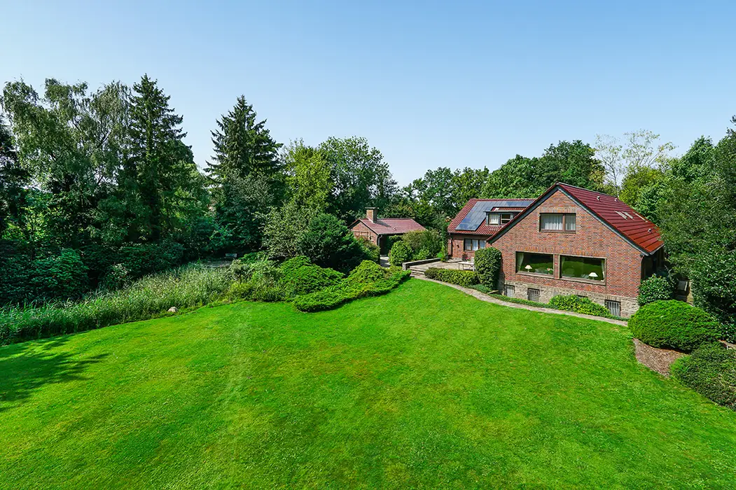 This spacious single-family home, built in 1954, sits on an impressive plot of approximately 5,860 m² and, with approximately 630 m² of living and usable space, offers ample space for individual lifestyles. The property is ideal for families who prefer living close to nature and value spatial diversity and privacy. The total area is divided into a total of 10 rooms, which, thanks to their attractive architecture and well-thought-out floor plan, offer flexible usage options. You will be warmly welcomed in the inviting entrance area, which offers ample space for a cloakroom and reception area. From here, you will access the various living areas, designed for spaciousness and offering numerous options for individual living ideas. The living space on the ground floor is approximately 241 m² and impresses with three spacious bedrooms, an extra-large living room with an adjoining piano room, a representative, spacious dining room, and a separate kitchen. In addition, there is a master bathroom with two showers and a sauna, as well as two separate guest toilets, which together offer first-class living comfort for the whole family. The oversized sun terrace is accessible from the hallway via the dining room. From the terrace, you can enjoy a magnificent view of the expansive garden and the adjacent forest. The garden boasts mature trees, numerous shrubs, and plants – ideal for creative landscaping. A pond at the rear of the property provides an additional, tranquil atmosphere. Adjacent to the property is a spacious garage with a basement, perfect for tradespeople and hobby gardeners. A toilet and another room offer additional comfort for every user. The attic is comfortably converted and offers approximately 165 m² of usable space. Here, you'll find ample space for your hobbies, or you can use it as a combined living and working area under one roof. Connections for a kitchen are available, and a modern bathroom completes the offering. The spacious garden offers a wide range of possibilities for individual design. It offers space for both play areas for children and quiet areas for relaxing hours in the fresh air. The size of the property also offers potential for ambitious garden projects. A spacious parking area in front of the garage is available for your vehicles. The property is located in a quiet residential area with good transport links. Shopping facilities, schools, and public amenities are easily accessible. The property is well-maintained, in keeping with its age, and offers scope for individual modernization options. The furnishings are also appropriate for its age, allowing for flexibility in design according to your wishes.Thanks to its size and versatility, this single-family home is ideal both as a long-term family residence and as a home for both living and working under one roof. Get a personal impression of the design options and see for yourself the exceptional space available during a viewing. We would be happy to provide you with further information and arrange a viewing appointment. Read more Location Description This property is located amidst picturesque nature, right on the edge of the forest. From here, beautiful walks and bike rides beckon. Grafenmühle, the Haniel spoil heap, the Gasometer, and Oberhausen Castle are all within easy reach by bike or car. The nearby town center of Königshardt offers numerous shops for daily needs. Schools and kindergartens are also nearby. Various restaurants and an ice cream parlor complement the dining options. A nearby bus line provides easy access to surrounding towns, while short journeys to the A3, A516, and A2 motorways offer additional convenience.
