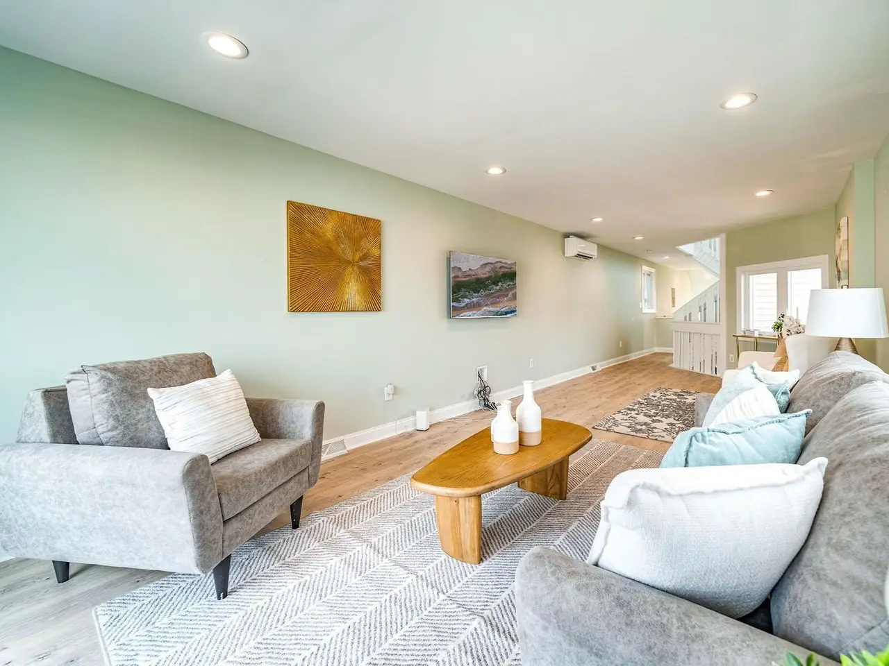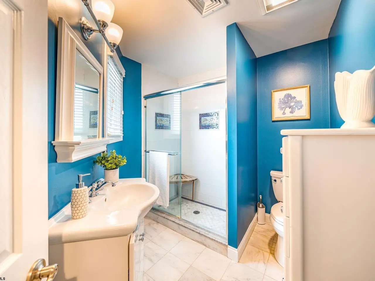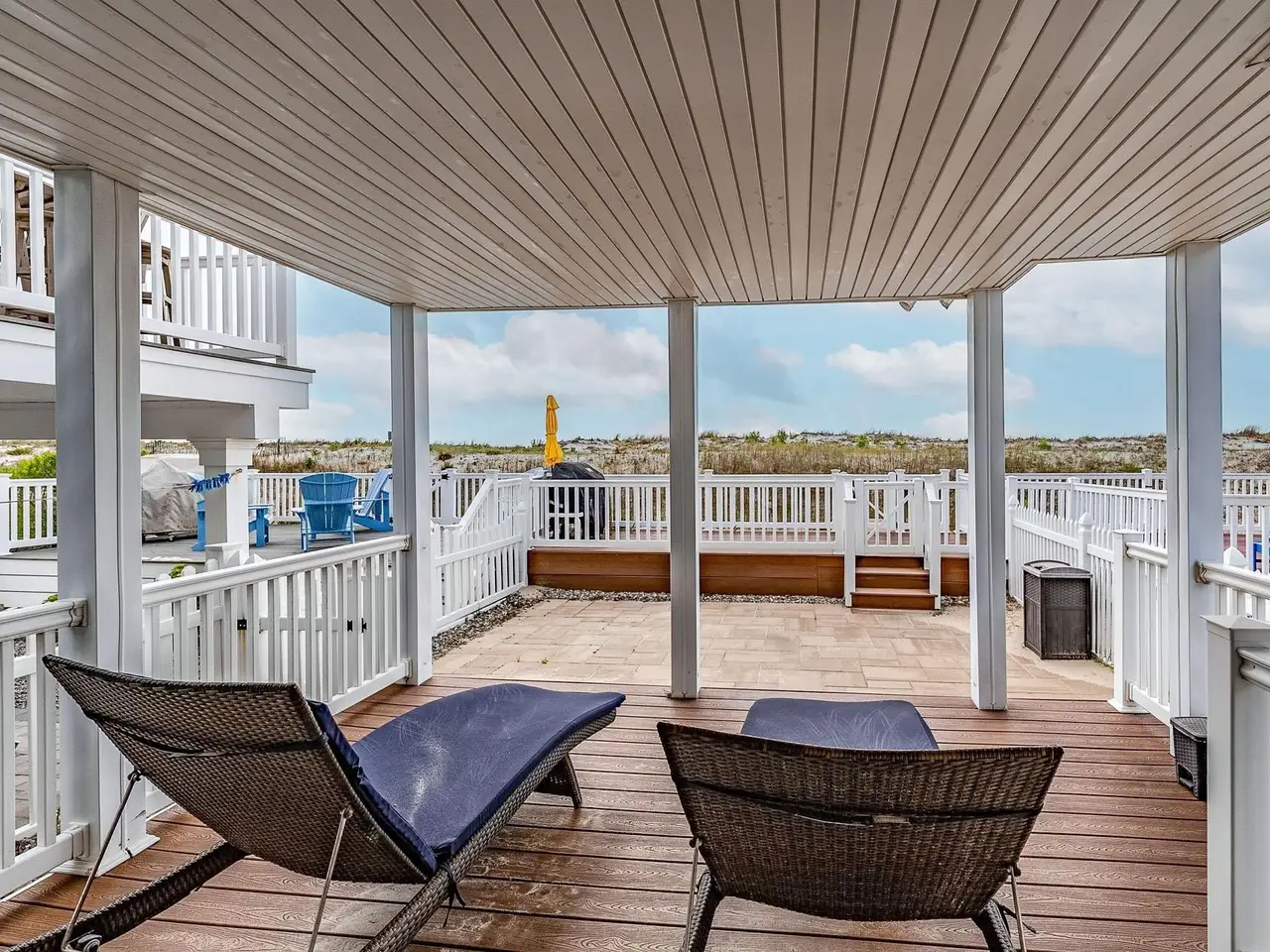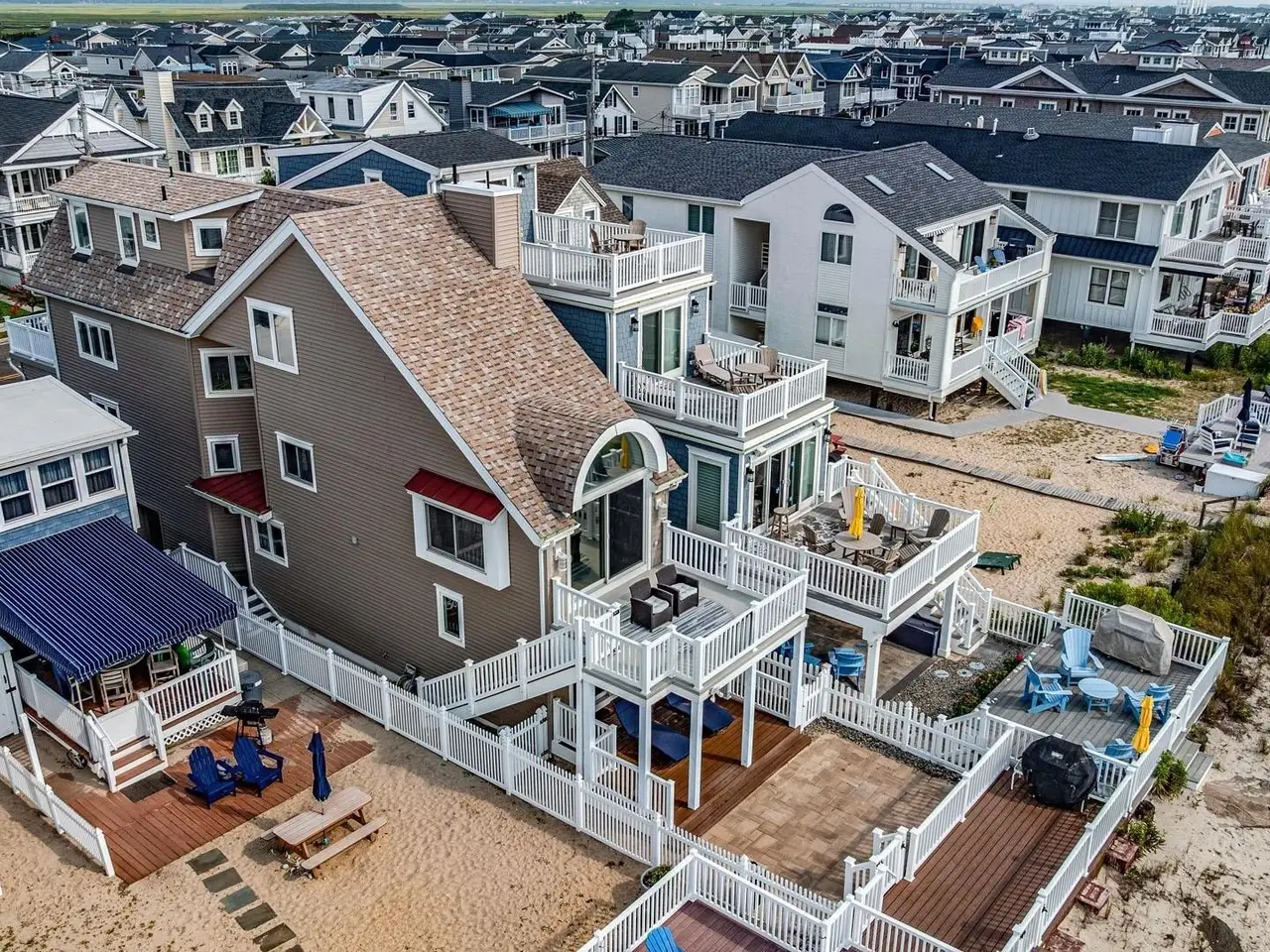 BEACHFRONT BEST BUY! From Brigantine to Cape May you will NOT find a more affordable single-family beachfront home along the South Jersey Shore coastline. Built on a unique 20 x 100-foot lot, this 2,200 square foot home is larger than most four bedroom, three bath condos and captures ocean views from multiple vantage points. Entering in the front door, you're greeted with the option of going up the steps or making a right into the ground floor bedroom complete with a full bath, that can be used as the primary bedroom if desired. Just off that bedroom is a covered deck. A few short steps up take you to another full bath that also services two more spacious bedrooms and some hall storage. Going up the stairs to the next level is the well-appointed kitchen with a cathedral ceiling, counter seating and an eat-in dining area. Step out onto the sweeping rear deck for panoramic ocean views during the day and star-gazing at night while enjoying the lights of the coastline. Up to the left is the sizable Living Room large enough to fit the whole family; featuring a big flat screen TV with Sonos Audio Technology, enough space to also include a sitting area with ocean views and complete with an expansive front deck great for happy hour as the sun sets, and covered by a retractable awning. The entire top floor hosts the Master Bedroom with an ensuite bathroom and multiple closets, including a walk-in closet. The split-level design utilizes all the space and gives this Beach House a comfortable flow while taking advantage of all the views and outdoor spaces that make Shore Living your Peace of Paradise. The ground floor area boasts parking for three cars, an oversized storage room, enclosed outside shower, outdoor staircase leading up to rear deck, patio-paver area for sunbathing and an elevated deck over the bulkhead for additional outdoor space when entertaining. This is your chance to buy that Beachfront Oasis in the South-end of Ocean City NJ. Easy to show. Call today for your private showing.