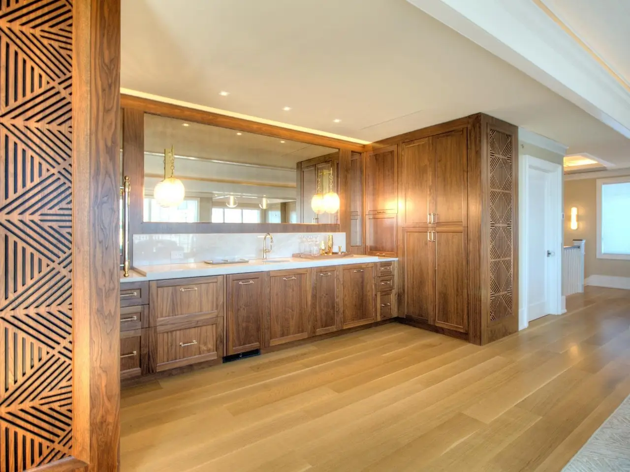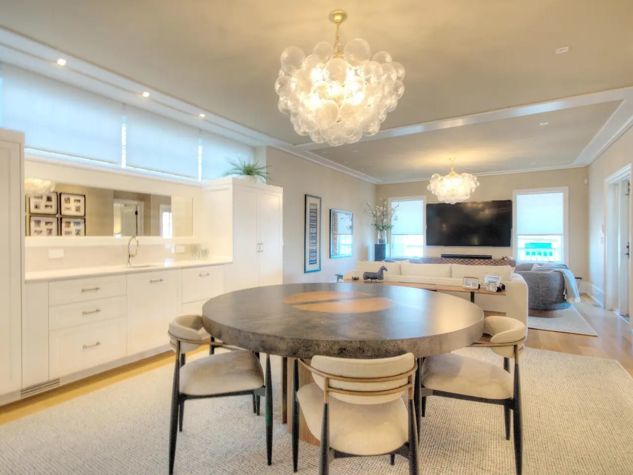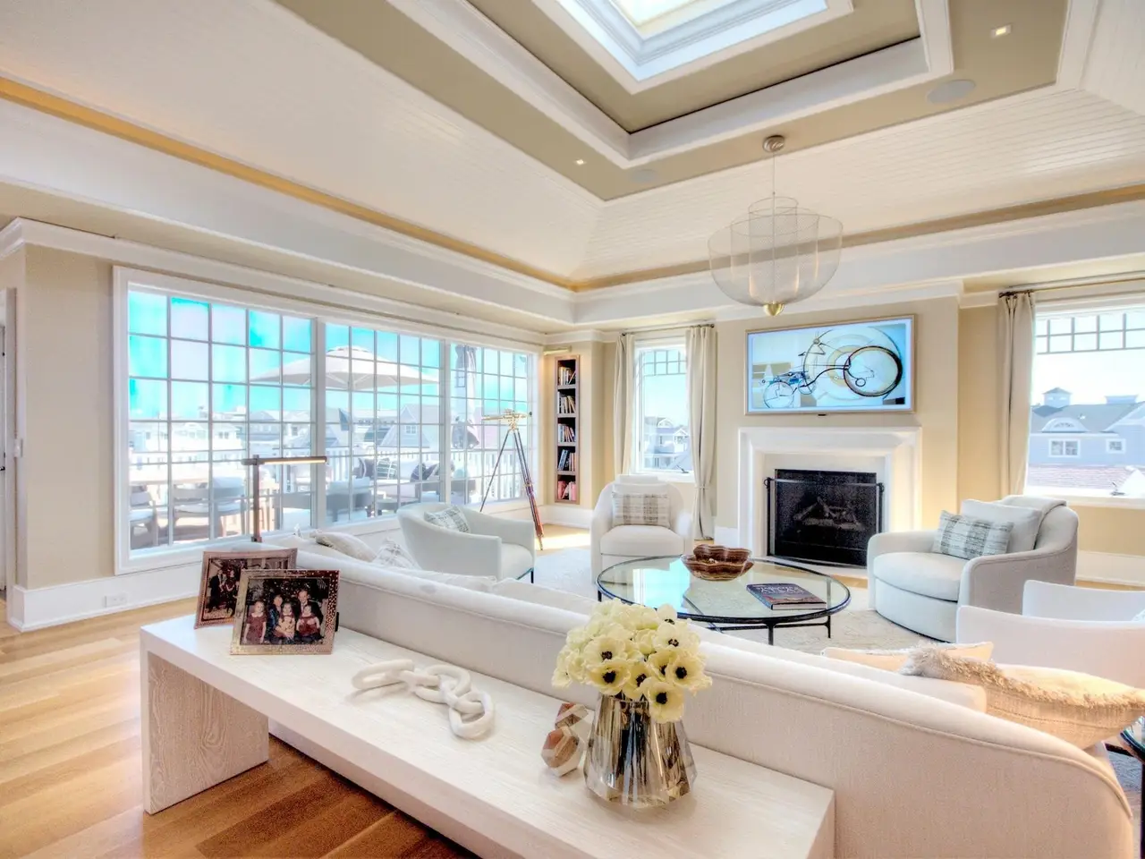 Perched just steps from the shoreline, this beach house is stunning. Two expansive decks provide the perfect spots for morning coffee at sunrise or evening cocktails. The state-of-the-art kitchen features premium appliances, custom cabinetry, and elegant quartzite counter tops. Spa-inspired bathrooms boast sleek, modern fixtures and luxurious finishes, creating a private retreat in every suite. With its perfect blend of coastal charm and modern sophistication, this home is designed for both relaxation and entertainment. - Five-floor elevator - Heated floor in Master Bedroom - Marble Gas Vented Fireplace - Bar area with Refrigerated Drawer - Upholstery Stain Repellent - Oversized fire pit - and much more........