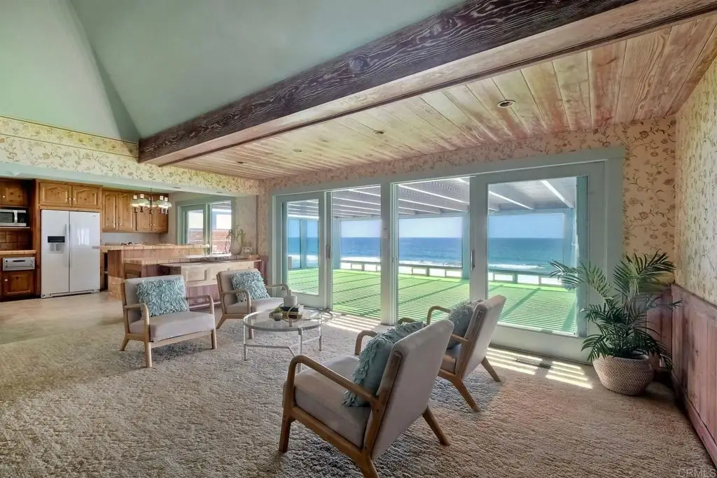 ONCE-IN-A-LIFETIME Beachfront Opportunity-100 Feet of Oceanfront Living! Welcome to your dream estate--pristine beachfront, over 6,700 sq ft of living space & a 16,000+ sq ft lot designed for ultimate relaxation & entertainment. This rare oceanfront property features 7 bedrooms, 6 bathrooms & three full kitchens--one on each level--making it ideal for multi-generational living or large-scale entertaining. Step through the front door & be greeted by a dramatic staircase leading down to the expansive Primary Suite & oversized living room. Just off the main entry, you'll find a private office, guest bedroom & full bath, perfect for guests or a home workspace. The office features stunning ocean views & opens to a large private patio. On this main level, enjoy 3 more bedrooms-one is ensuite, 2 baths, a spacious dining room, sitting area & a full kitchen w/ eat-in bar. From here, step out onto an oversized patio or take the private beach access stairs down to the sand--or simply ride the elevator for convenience. Up a charming winding staircase from the kitchen is a cozy maid's quarters with its own Oceanview deck, providing a peaceful retreat. The 2nd level features the Primary Suite with a private balcony, two separate bathrooms, dual walk-in closets, and a dressing area that opens to an additional outdoor space. The adjacent living room is massive, perfect for family gatherings, and showcases the Pacific Ocean through walls of glass. A second kitchen and wet bar complete this level, with a nearby laundry room for convenience. Head to the beach level & you'll find an entertainer's paradise! This floor boasts a third kitchen, huge bar, shuffleboard table, full bathroom w/ two showers, a fun bunk room & direct access to the beach. Step outside to a sprawling patio, giant turf play area, sandbox w/ a custom wooden pirate ship & your very own private boardwalk with steps leading directly to the sand. Own your own slice of oceanfront paradise!