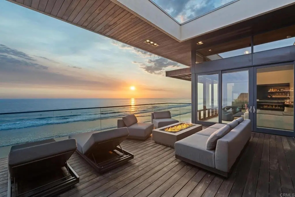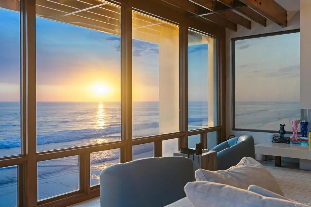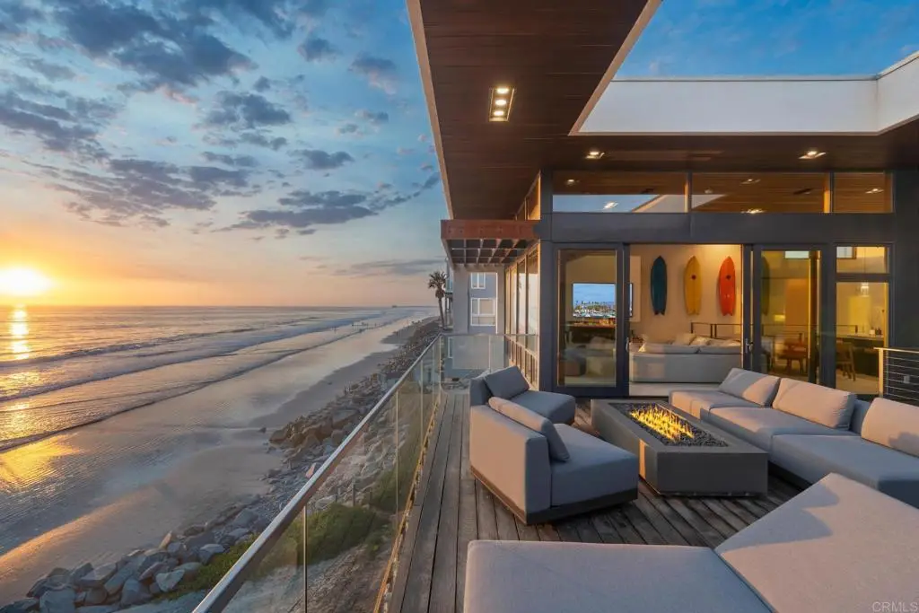 Showcasing 60' of ocean frontage across two lots on the prestigious south end of Pacific Street. Escape to this coastal stretch to experience one of Southern California's "Most Authentic Beach Towns," as cited by The New York Times. Oceanside boasts the #1 Resort in the US and California, as ranked by Travel + Leisure, the longest wooden pier on the West Coast, a museum dedicated to surfing, and the famous "Top Gun" house. This exquisite modernist retreat combines extraordinary architecture and design with a warm and inviting layout. Refreshing ocean breezes, striking sunsets, and sounds of the surf are ceaseless. Concrete custom built construction with an emphasis on seamless indoor-outdoor living, this is the So-Cal beach dream that is so hard to find! Take in panoramic unobstructed ocean views as soon as you step inside. Views stretch from La Jolla to Dana Point, and on clear days views of Catalina and San Clemente islands. Watch surfers and wild life - pods of dolphins and pelicans skimming the waves The unique highlight of this property is the vast useable and exceptional outdoor space. Enjoy year round temperate weather in your choosing of the skylit entry courtyard, main level sundeck with full bar, the beach level California room complete with jacuzzi and cold plunge, and of course the private sandy beach! Ideal as an entertainer's ultimate paradise or enjoy it as your own personal oasis & live like you're on vacation every day! This property has undergone many recent luxurious upgrades and improvements including completely new state of the art kitchen, primary suite with custom walk-in closet, awe-inspiring spa like sauna room, owned solar, new garage doors, garage lift for additional parking, electric car charging, new central A/C, tinted floor to ceiling windows for additional privacy, among much more! This property is directly ocean front, there is no road or walking/bike path between! Easy access for swimming, surfing, or walking the coastline to the Oceanside Pier. Positioned between Carlsbad Village and Downtown Oceanside, you'll never run out of things to do. Enjoy Michelin star restaurants, trendy coffee shops, weekly farmer's markets, boutique shopping, and nightlife all within minutes! Don't miss your chance to own this unparalleled coastal retreat.