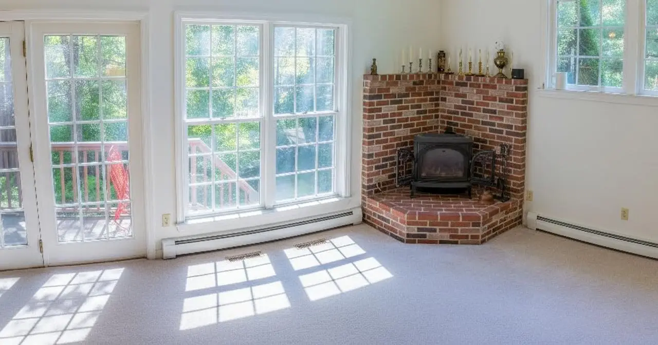 Brick fireplace with propane wood stove