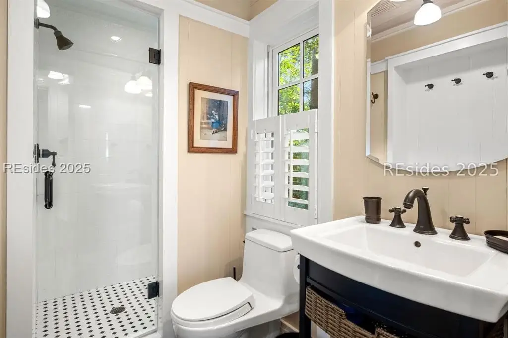 Exquisite sunsets over Callawassie Creek and the Colleton River provide a breathtaking backdrop for this rare Nantucket-style family compound on coveted Spring Island. Sited on 3.5+ acres, this 5,223 sq. ft., 5BR/5.5BA waterfront estate includes a private tidal dock with direct access to Callawassie Creek, the Colleton River, and the Atlantic Ocean. By boat, enjoy easy day trips to Hilton Head, Savannah, or Beaufort, or simply relax at home while fishing, crabbing, shrimping, or watching dolphins and Roseate Spoonbills from your backyard sanctuary. The 3,249 sq. ft. main residence (2BR/2.5BA) was designed for year-round living, showcasing an open floor plan, chef's kitchen, and porches that span the length of the home. The east wing features an apsidal screened porch with Savannah brick fireplace, ideal for Lowcountry outdoor living. The entire second floor is dedicated to a private owner's retreat, complete with sitting room and fireplace, screened porch, spa-like bath with freestanding tub and oversized shower, a large custom walk-in closet, and abundant finished storage. A 995 sq. ft. guest house (2BR/2BA) offers its own living room with fireplace, kitchenette with full-size appliances, washer/dryer, children's loft with built-in bunks, and screened porch overlooking the river. The detached two-car garage with golf cart bay includes a 482 sq. ft. carriage house, perfect for additional guest quarters, studio, or office along with a professional-grade darkroom. A freestanding 764 sq. ft. workshop provides a creative haven, currently outfitted as a professional woodworking studio with exceptional equipment (available separately), but equally suited as an artist's studio. Life on Spring Island is unlike anywhere else, with 3,000 acres of preserved natural beauty and premier amenities: an Arnold Palmer-designed golf course, equestrian center, tennis and pickleball, state-of-the-art fitness complex with heated and chilled saltwater pools, miles of scenic trails, a 7.5-acre farm, and an inspiring art barn. Blending timeless design, craftsmanship, and an extraordinary setting, this rare compound offers the ultimate in Lowcountry luxury, an unparalleled opportunity for multi-generational living on Spring Island.
