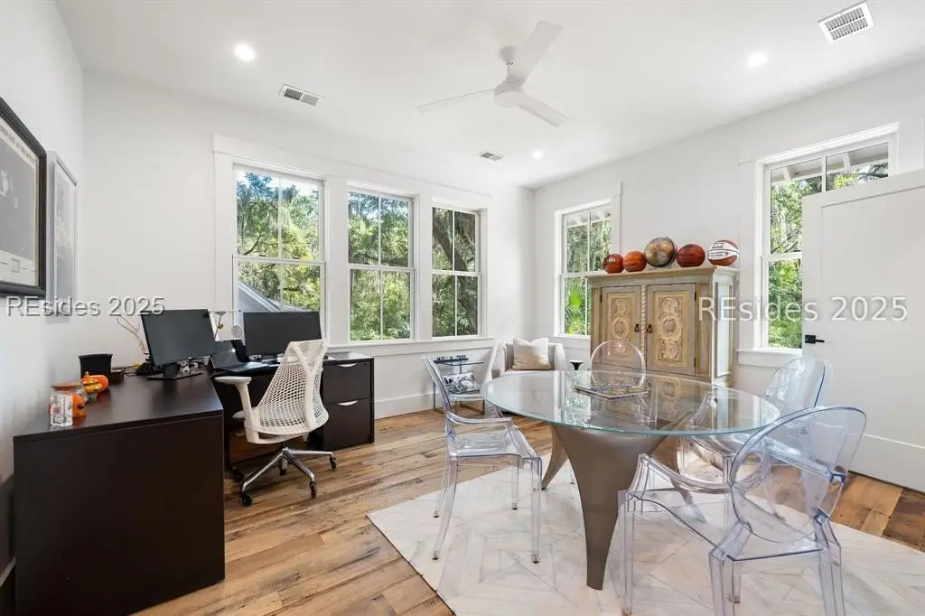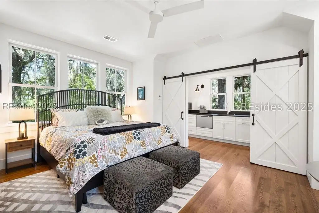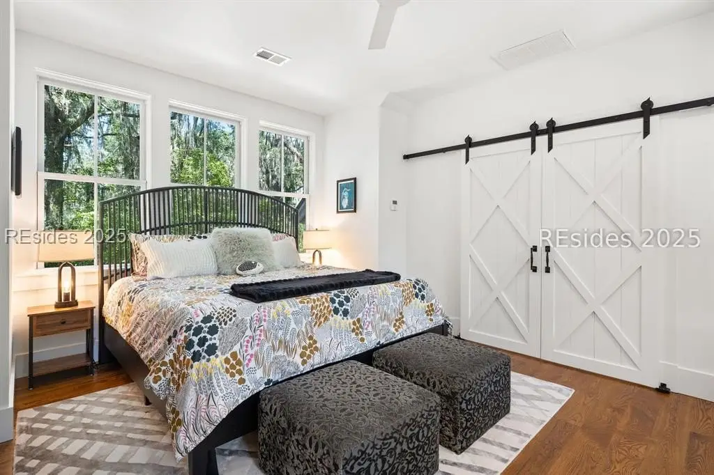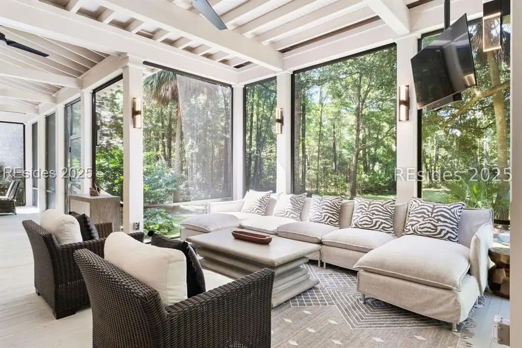 Where contemporary elegance meets timeless Lowcountry beauty. This 4-bedroom, 4 1/2-bath, 3,435-sq-ft Spring Island masterpiece is a seamless fusion of modern design and the soulful charm of the Lowcountry, perfectly positioned among centuries-old Live Oaks. Built in 2021, this home was honored with the coveted Lighthouse Award in all four categories - Best Kitchen, Best Bathroom, Best Exterior, and Best Overall - a true testament to its exceptional craftsmanship and design. Inside, light pours into open, inviting spaces. The chef's kitchen with premium appliances and an entertainer's layout flows into a great room anchored by a striking tabby fireplace. Walls of windows invite the outdoors in, while an expansive, heated screened porch, complete with outdoor grill, kitchen pass-through, and TV, creates the ultimate gathering space for any season. The first-floor primary suite is a serene retreat, featuring a spa-inspired bath with the rare luxury of both indoor and outdoor showers. Upstairs, each guest suite enjoys its own private bath, offering comfort and privacy. An elevator connects every level, ensuring effortless living. The grounds are a work of art - front and rear water gardens shimmer in the sunlight, while a tranquil backyard water feature sets the stage for evenings around the fire pit under a canopy of stars. Conveniently located to both the River House and Golf House, you'll enjoy Spring Island's unmatched amenities with over 3,000 acres of preserved beauty, an Arnold Palmer golf course, equestrian facilities, tennis and pickleball, deep-water docks, and miles of scenic trails. More than a home, this is an experience - crafted for those who value beauty, nature, and the art of living well.