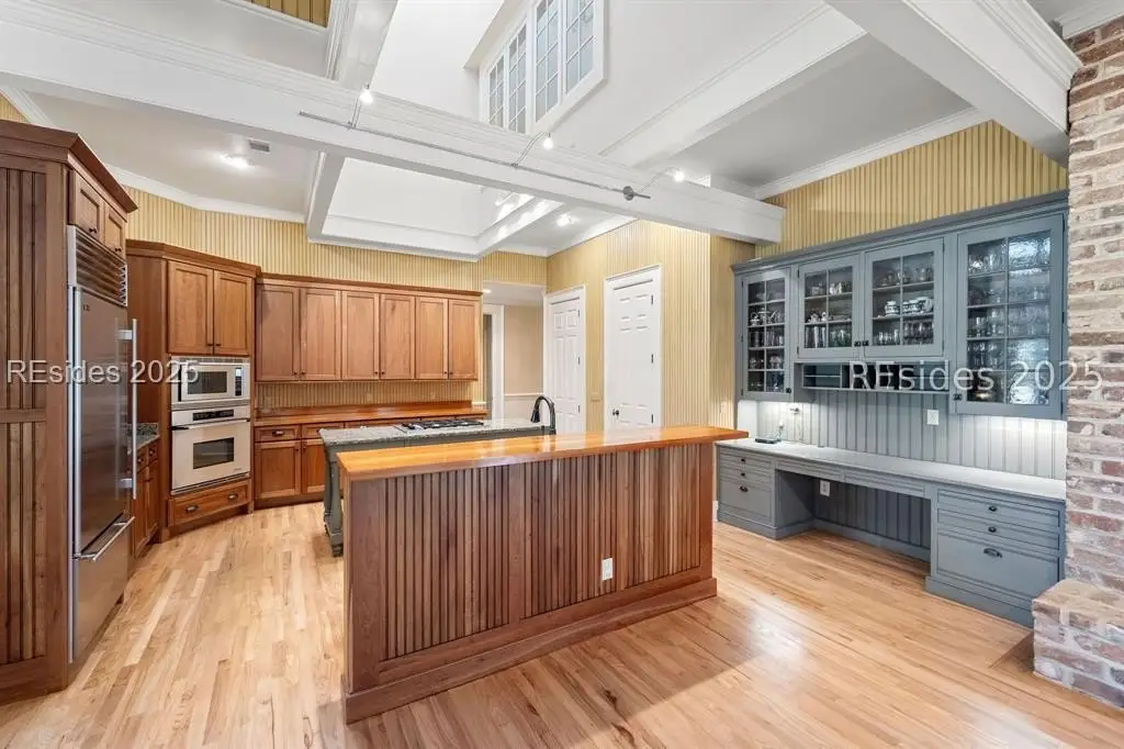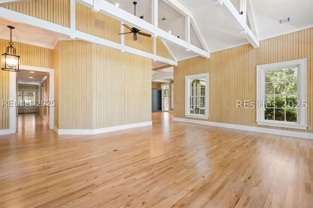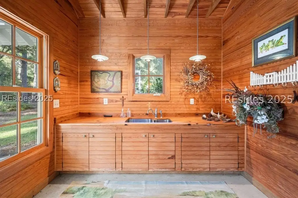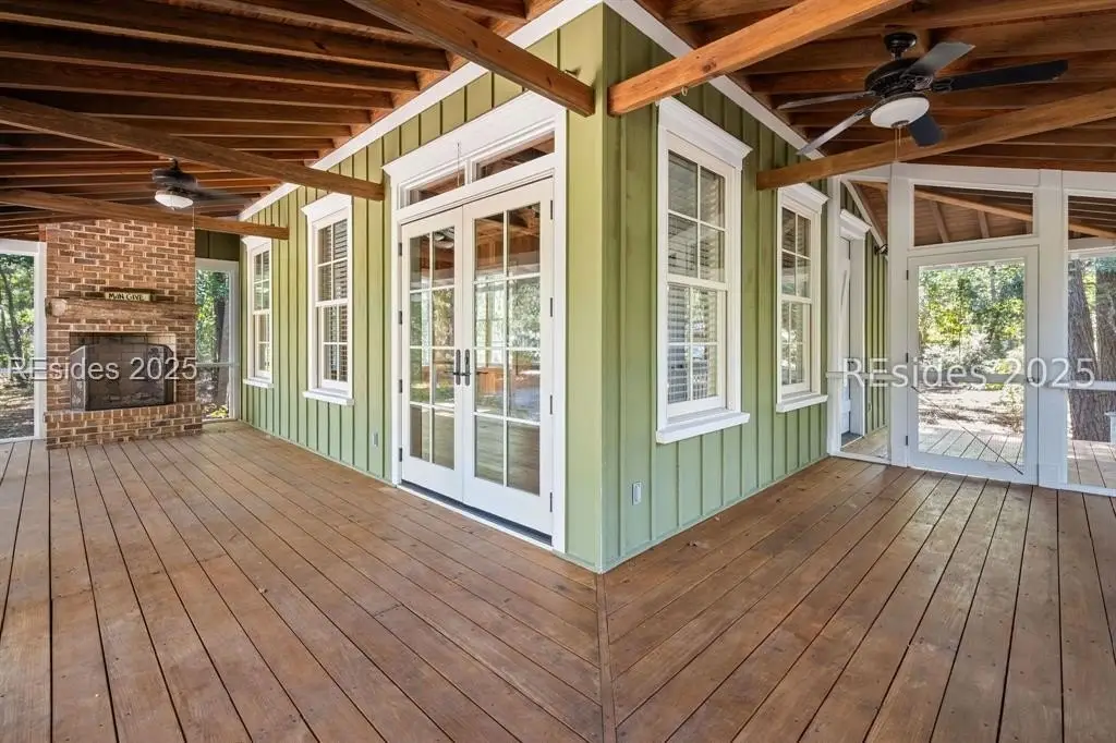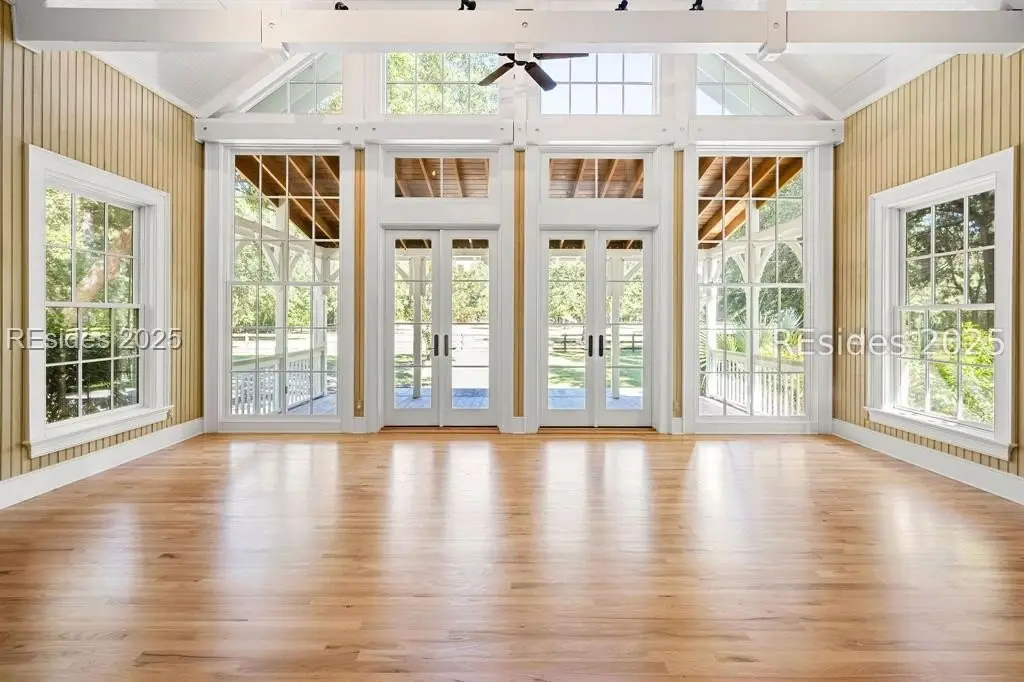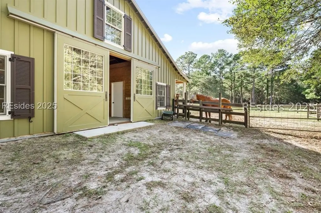 A Refined 13+ Acre Lowcountry Equestrian Retreat on Spring Island - A long, oak-lined drive leads to this extraordinary 13.2-acre equestrian estate - an intimate compound within the private, gated community of Spring Island. The property features a main house, guest cottage, 2+ car garage with golf cart bay and potting shed, the Orvis retreat, an equestrian viewing gazebo, three-stall barn, and two large, fenced pastures plus one paddock around the stalls. The main residence offers a welcoming front porch with sweeping views of pastures and the barn. French doors open to a vaulted great room filled with natural light and fine craftsmanship. The chef's kitchen with dual islands and premium appliances flows into a keeping room anchored by a Savannah brick fireplace. A screened porch opens to gardens for year-round Lowcountry living. The primary suite includes a sitting area, spa-style bath, and private porch. Guest suite, laundry, and bright studio or "woman cave" complete the main living areas. A breezeway connects the main house to the garage and potting shed, ideal for gardeners and nature enthusiasts. The guest cottage offers front and back porches, a sitting area with kitchenette, and two ensuite bedrooms, providing privacy and comfort for family or friends. Across a wooden bridge, the Orvis Room "man cave" features a wraparound porch with outdoor fireplace overlooking a tranquil water feature. Inside, a great room, office, or bourbon room, and full bath create an ideal gathering place. The gazebo overlooks pastures, perfect for entertaining or watching dressage. The three-stall barn includes a tack room, bath, utility area, and space for future living quarters. Two large, fenced pastures and one paddock provide ample room for horses. Life on Spring Island is unlike anywhere else, offering 3,000 acres of preserved natural beauty and premier amenities: Arnold Palmer-designed golf, equestrian center, tennis and pickleball, fitness complex with heated and chilled saltwater pools, scenic trails for walking or riding, a 7.5-acre community garden, and an inspiring art barn. (Note - 5 photos with furniture in them have been virtually staged to show the home's potential)