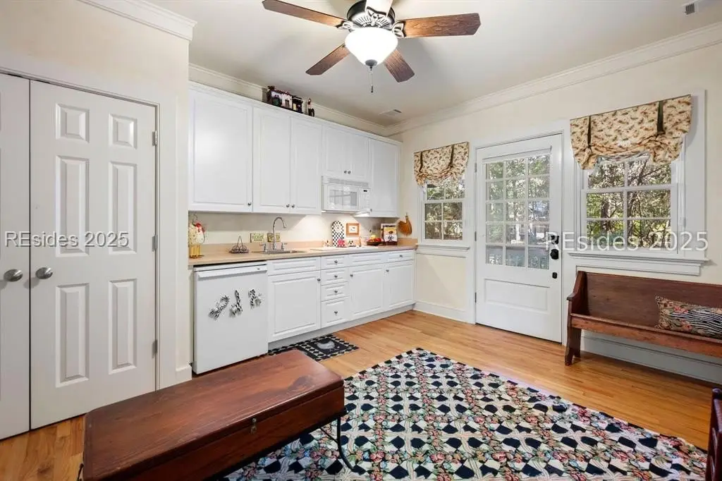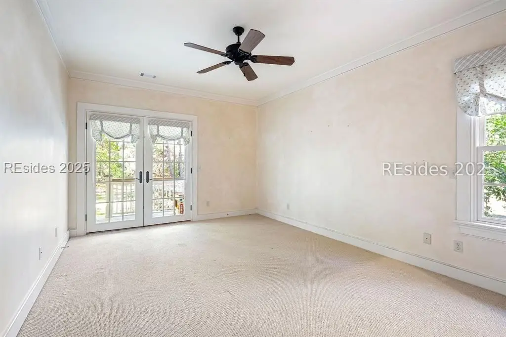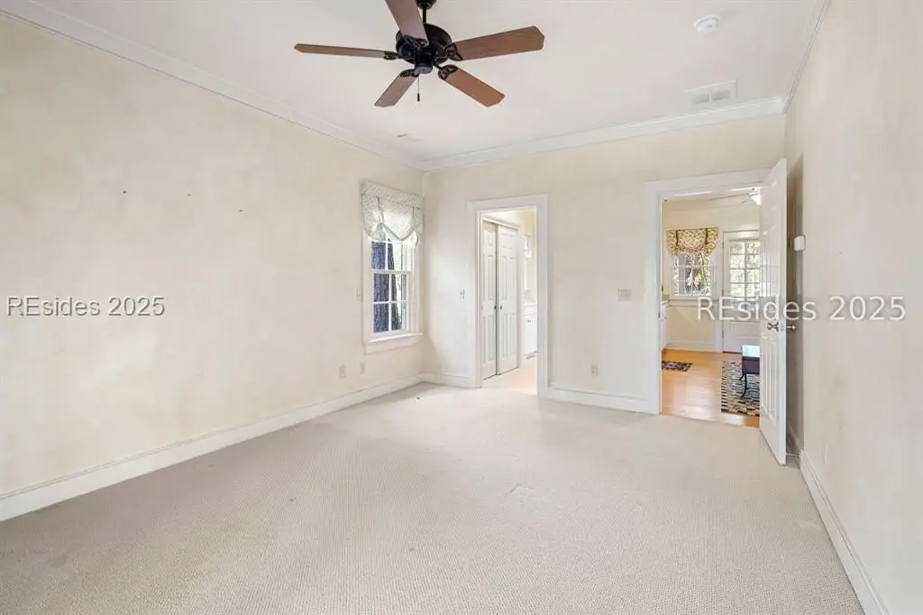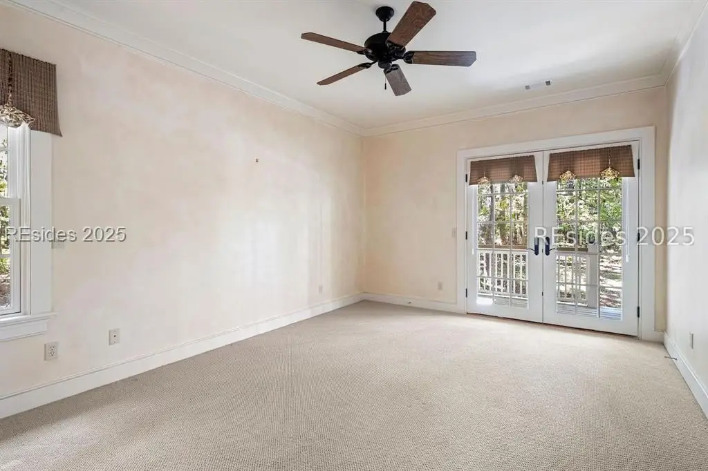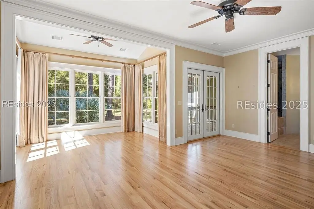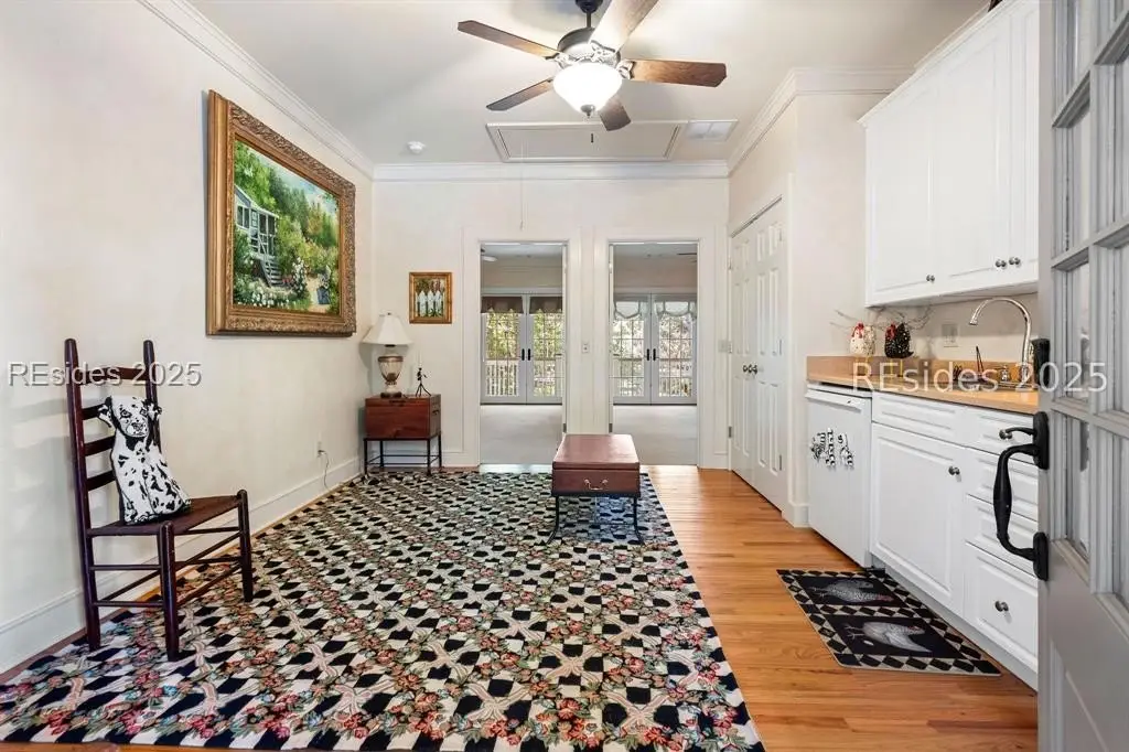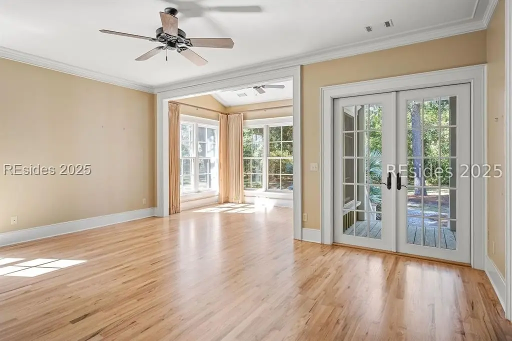 A Refined 13+ Acre Lowcountry Equestrian Retreat on Spring Island - A long, oak-lined drive leads to this extraordinary 13.2-acre equestrian estate - an intimate compound within the private, gated community of Spring Island. The property features a main house, guest cottage, 2+ car garage with golf cart bay and potting shed, the Orvis retreat, an equestrian viewing gazebo, three-stall barn, and two large, fenced pastures plus one paddock around the stalls. The main residence offers a welcoming front porch with sweeping views of pastures and the barn. French doors open to a vaulted great room filled with natural light and fine craftsmanship. The chef's kitchen with dual islands and premium appliances flows into a keeping room anchored by a Savannah brick fireplace. A screened porch opens to gardens for year-round Lowcountry living. The primary suite includes a sitting area, spa-style bath, and private porch. Guest suite, laundry, and bright studio or "woman cave" complete the main living areas. A breezeway connects the main house to the garage and potting shed, ideal for gardeners and nature enthusiasts. The guest cottage offers front and back porches, a sitting area with kitchenette, and two ensuite bedrooms, providing privacy and comfort for family or friends. Across a wooden bridge, the Orvis Room "man cave" features a wraparound porch with outdoor fireplace overlooking a tranquil water feature. Inside, a great room, office, or bourbon room, and full bath create an ideal gathering place. The gazebo overlooks pastures, perfect for entertaining or watching dressage. The three-stall barn includes a tack room, bath, utility area, and space for future living quarters. Two large, fenced pastures and one paddock provide ample room for horses. Life on Spring Island is unlike anywhere else, offering 3,000 acres of preserved natural beauty and premier amenities: Arnold Palmer-designed golf, equestrian center, tennis and pickleball, fitness complex with heated and chilled saltwater pools, scenic trails for walking or riding, a 7.5-acre community garden, and an inspiring art barn. (Note - 5 photos with furniture in them have been virtually staged to show the home's potential)