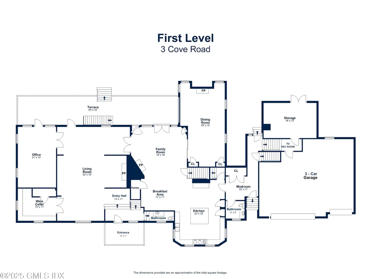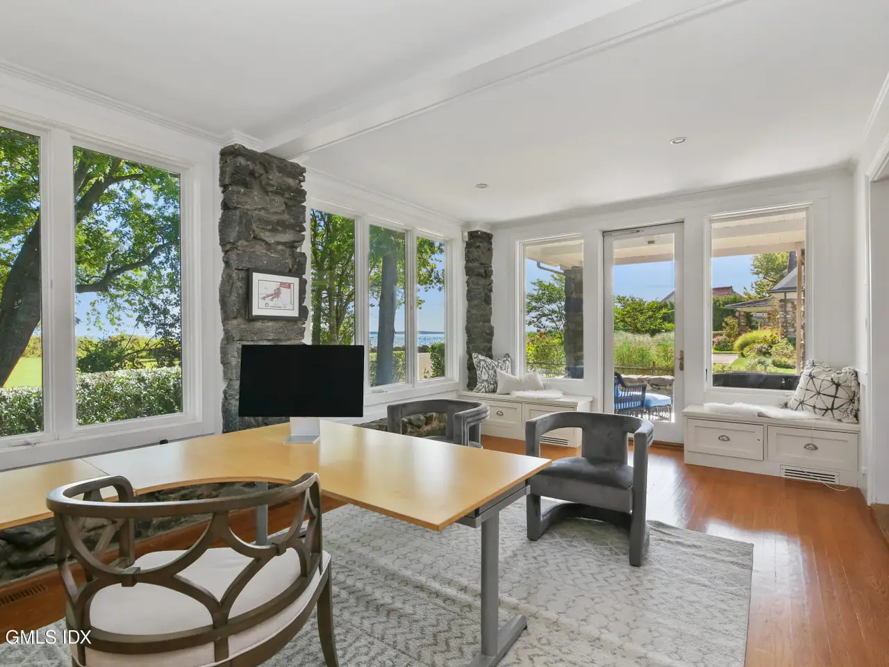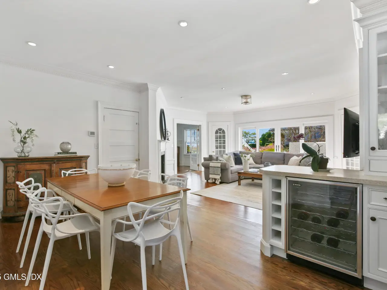 Three Cove Road is one of those properties that rarely comes to the market. This distinguished six-bedroom stone and shingle classic is situated in the coveted private association of Lucas Point and epitomizes timeless coastal New England architecture with exceptional water views from all levels. The residence enjoys panoramic east-to-west vistas, a treasured oversized level lot (.56 acres) and deeded access to a private beach, boatyard and dock just steps away. A charming porte-cochere and Dutch door welcome you into light-filled, open-plan interiors where formal and casual spaces flow seamlessly. High ceilings and expansive windows enhance the sense of space and natural light throughout. The first floor features a grand living room with three exposures and remarkable stone fireplace, expansive dining room with fireplace, study, wine room and eat-in kitchen opening to a family room with doors to covered and uncovered entertaining spaces to enjoy the beach views. Upstairs, six unique bedrooms each offer charm and comfort. The primary suite is a retreat in itself boasting a private balcony overlooking the Sound and Greenwich Cove. Additional finished bonus space with bathroom above three car garage for playroom or private office. This exceptional property allows for outdoor living at its best from kayaking/paddle boarding in open water as well as serene coves, to relaxing at the association's dock and private beach. Enjoy morning coffee or evening cocktails from the upstairs or downstairs decks, taking in spectacular sunrises and sunsets. Just moments from Tod's Point, the village of Old Greenwich, and everything this vibrant coastal community has to offer. The property has a large lawn and room for a pool and expansion too!