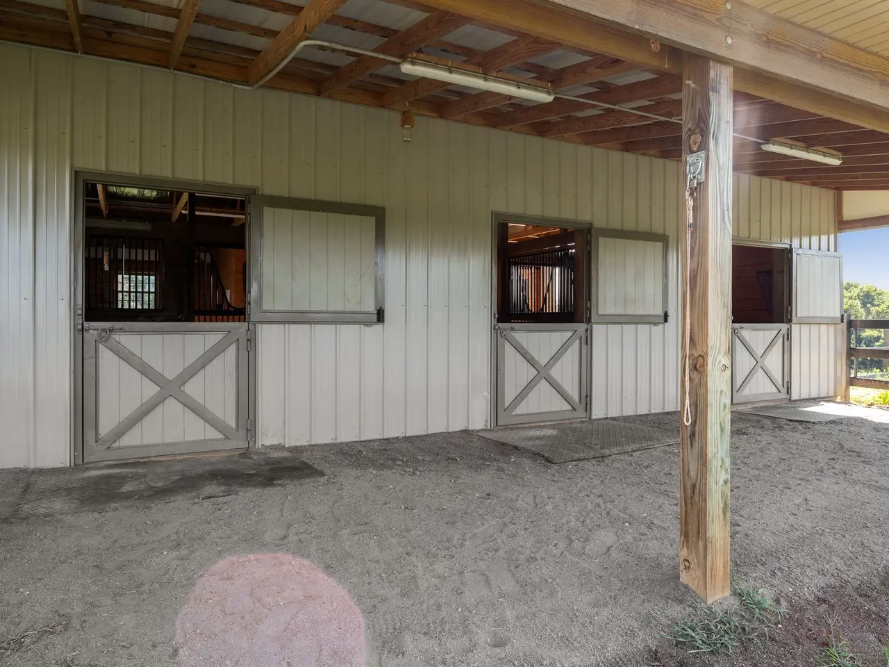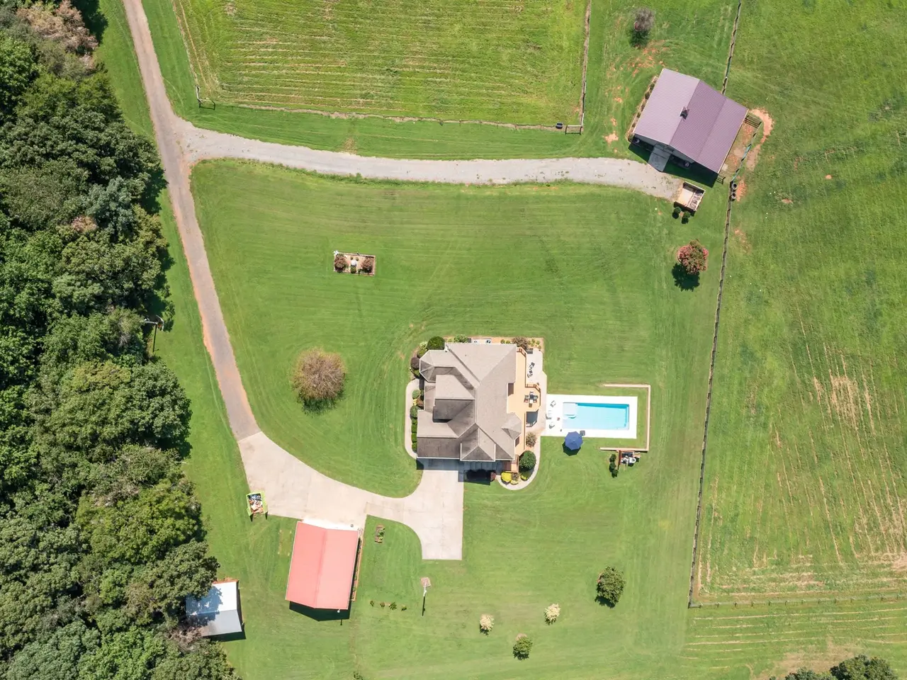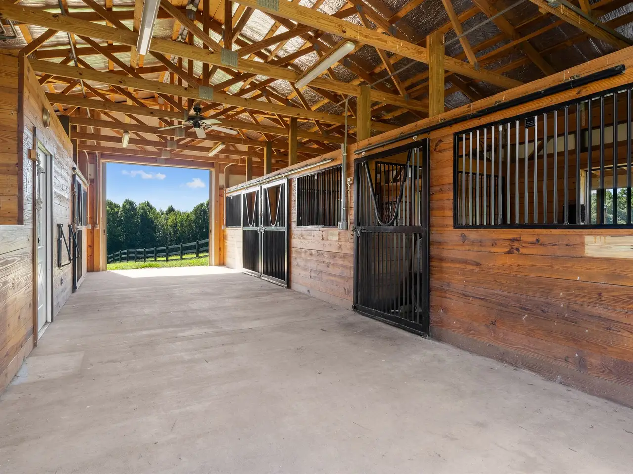 Discover the perfect blend of comfort, privacy, and functionality on this 46.84-acre North Iredell estate - affectionately named ?Ridgetop?. Tucked away from the road, this 5-bedroom, 4-bath home offers scenic views, wooded trails, abundant wildlife, and a creek running through the property.Ideally suited as a private equestrian estate, hobby farm, or boarding/training center, the property features a 4-stall center-aisle barn built in 2020 by Ever Trust Construction LLC with matted stalls, insulated tack room with A/C, hay storage, outside wash station, fans, and two frost-free pumps. The property includes a 7+/- acre pasture with a combination of 4-strand electric + post and rail fencing, plus an additional 1.5?2 acre pasture with 3-strand electric fencing. A service road provides easy access to the barn.The main home showcases hardwood floors, ceramic tile, crown molding, chair rail detailing, recessed lighting, and expansive windows that frame the pasture views and panoramic countryside. Primary bedroom has tray ceiling, beautiful bath and huge walk in closet. 3 bedrooms upstairs with Jack & Jill bath. A second living quarters in the basement includes a full kitchen, ideal for multigenerational living, guests, or rental opportunities.Outdoor living is a highlight with a spacious deck, screened porch, and a covered walk-out patio for entertaining or relaxing and a heated 16' x 38' Figerglass Ionizer Pool with travertine pool surround, 6' 3" at deep end with sunshelf (new pump 2024).Outbuildings include a 1200 sq ft workshop with water, electric, and wood stove plus a 24' x 24' open shed for storing equipment.This property combines the best of country living with modern convenience?ready to support equestrian pursuits, farming, or simply enjoying a private retreat surrounded by nature. Located in Northern Iredell and convenient to major interstates 77 and 40.