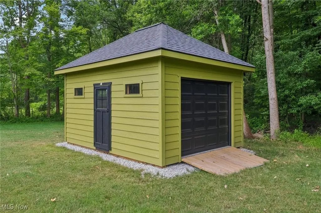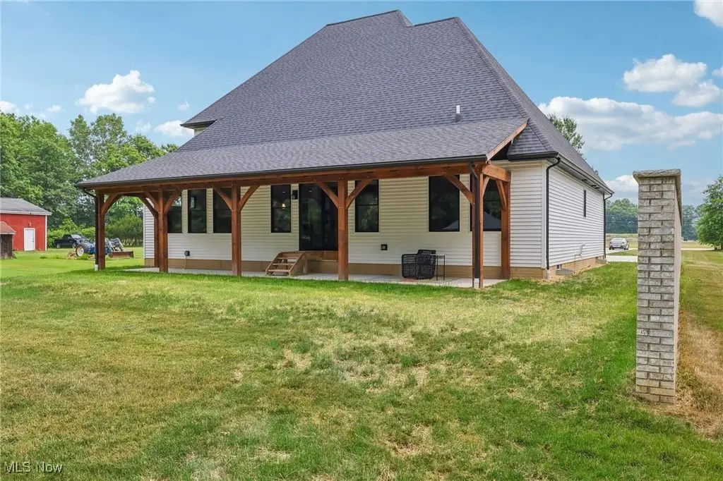 Set on a lush, wooded acre, this 2024-built masterpiece by Garland New Homes offers refined country living with the convenience of nearby city access. Spanning 3,526 square feet, the home's striking black Pella windows frame scenic views while enhancing its bold architectural character. Step through grand 8-foot doors into an open-concept haven where natural light pours across the spacious living areas. The thoughtfully designed first-floor master suite features a luxurious dressing room closet, creating a tranquil retreat that's both elegant and functional. Two additional bedrooms provide generous accommodation on the 2nd floor, while a dedicated 1st floor office with french doors is ideal for remote work or creative pursuits. Out back, enjoy peaceful evenings under the expansive 50-foot covered patio. The side of the yard has an expansive 30' brick wall privacy fence. You will also find a 16'x12' Amish-built shed with a front door & side garage door with a ramp perfect for lawn mower, gardening, or extra storage...could even be used as a playhouse! The mudroom, complete with its own closet, makes everyday organization effortless. A partially finished basement adds flexible living space, and the oversized 4-car garage with electric heating plus extended parking pad offers comfort and capacity year-round. A whole-house generator ensures uninterrupted peace of mind. This home balances rustic charm with modern amenities a serene country setting with seamless access to city life.