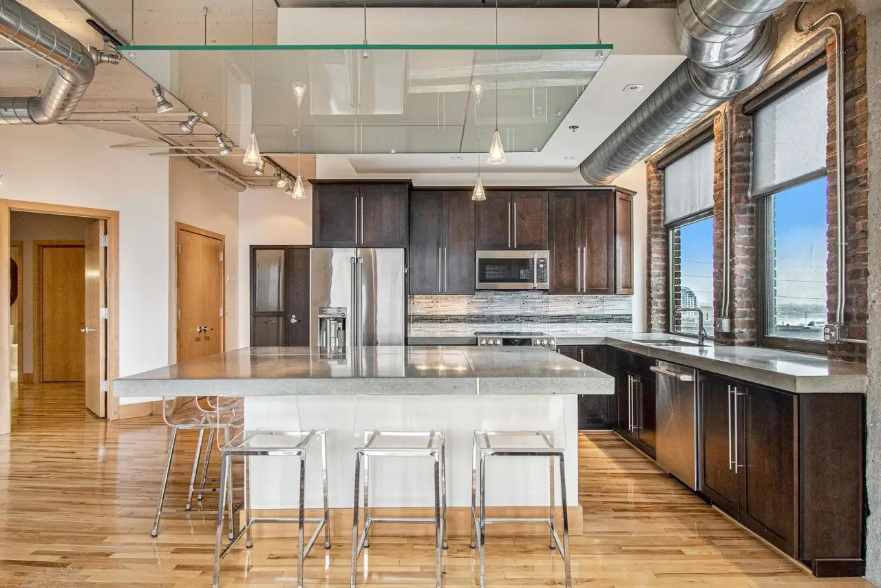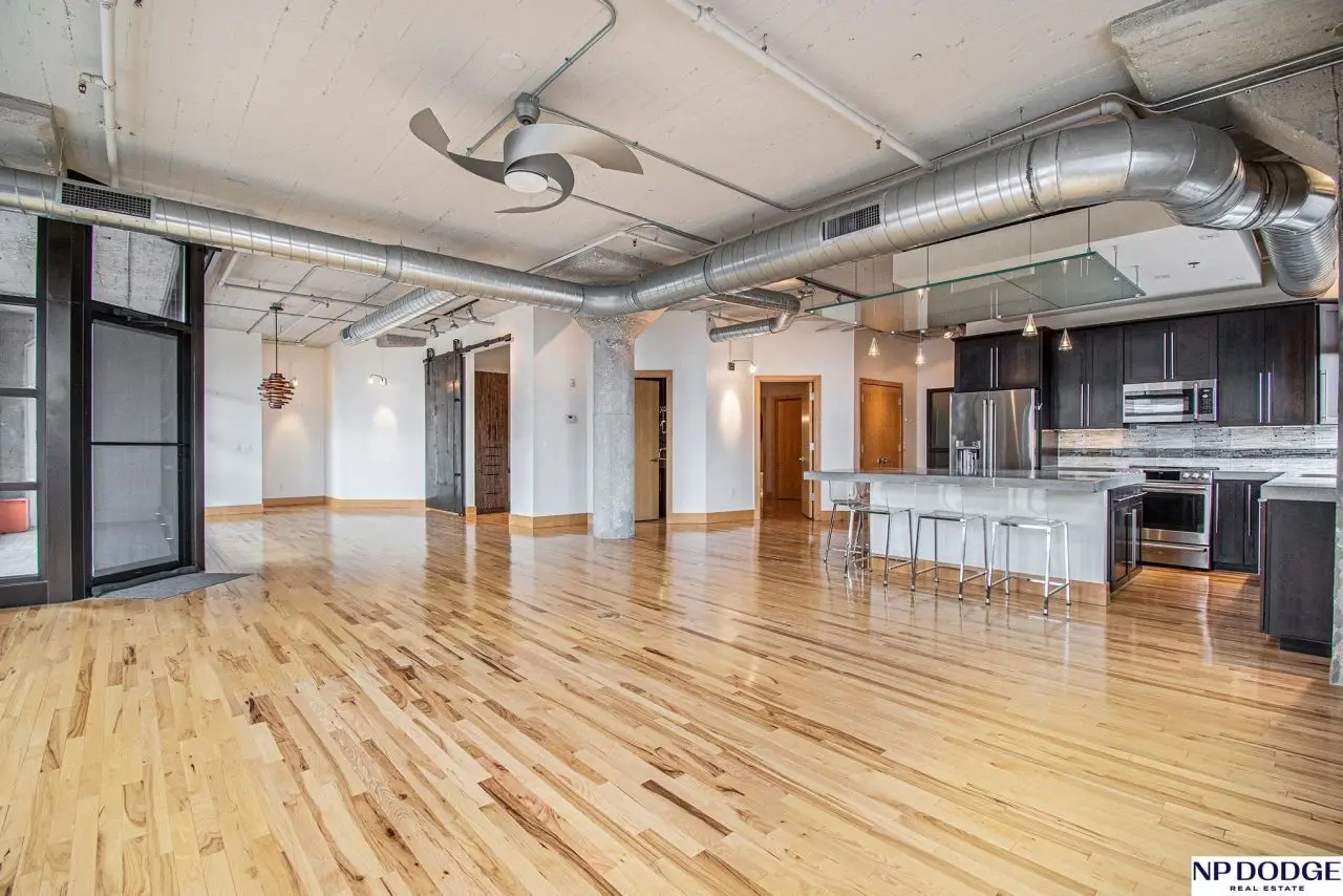Experience the best of downtown living in this spacious, move-in-ready condo in the Capital District, directly across from the CHI Center, close to Holland Center. Enjoy rare privacy while being steps from Omaha's top dining, entertainment, and events. Featuring high-end Cafe appliances, a 5x8 island, concrete countertops, walk-in pantry with 2 wine fridges, hardwood floors, 10' ceilings, and a sunlit open layout. Formal dining room, private covered 6x20 balcony, and a charming office. The primary suite offers a spa-like bath with dual sinks, large walk-in shower, soaking tub, and generous closet. In-unit laundry with washer/dryer. Includes access to a workout room and three secured underground heated parking spots. Head up to the rooftop balcony for 360? views! Minutes to the airport, Old Market, CWS Stadium, and more. HOA includes water, sewer, trash, snow, security, and exterior maintenance. Discover a unique lifestyle in the heart of Omaha!