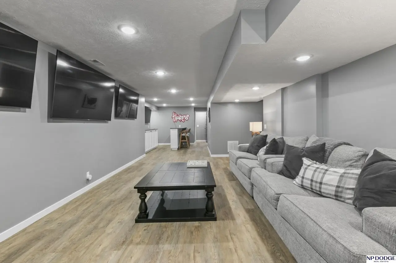 Contract Pending. Exceptional updated 4-br, 4-car 2-story in popular Skyline Estates/Ranches area in Elkhorn on a .69-acre treed lot backing to horse trails & located just 2 blocks from Skyline Elementary. This well-loved home has been updated over the years & includes a recently redone Master Bath & expanded walk-in closet in the Master Suite. The other 3 baths in this home also have been beautifully redone with tile. The basement was redone in 2020 & includes a bedroom, full bath, wet bar, exercise room & a 37.3 x 13.3 family room w/ 3 mounted tv's & LVT. In addition to the open concept kitchen & great room updated in 2016 w/ new wood floors & custom soft pull cabinets & drawers, there is a first-floor office/ sunroom w/ 14ft vaulted cedar ceiling & a slider opening to an expanded patio. 2nd floor carpet & LVT in utility rm, 8-25; 100-yr DaVinci roof; AC, 2019. Detached 24 x 24 garage has 2nd floor w/ separate entrance for storage. This is a wonderful, welcoming home. Mill levy a low