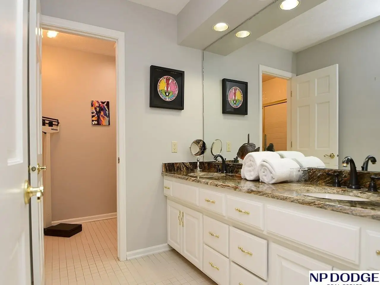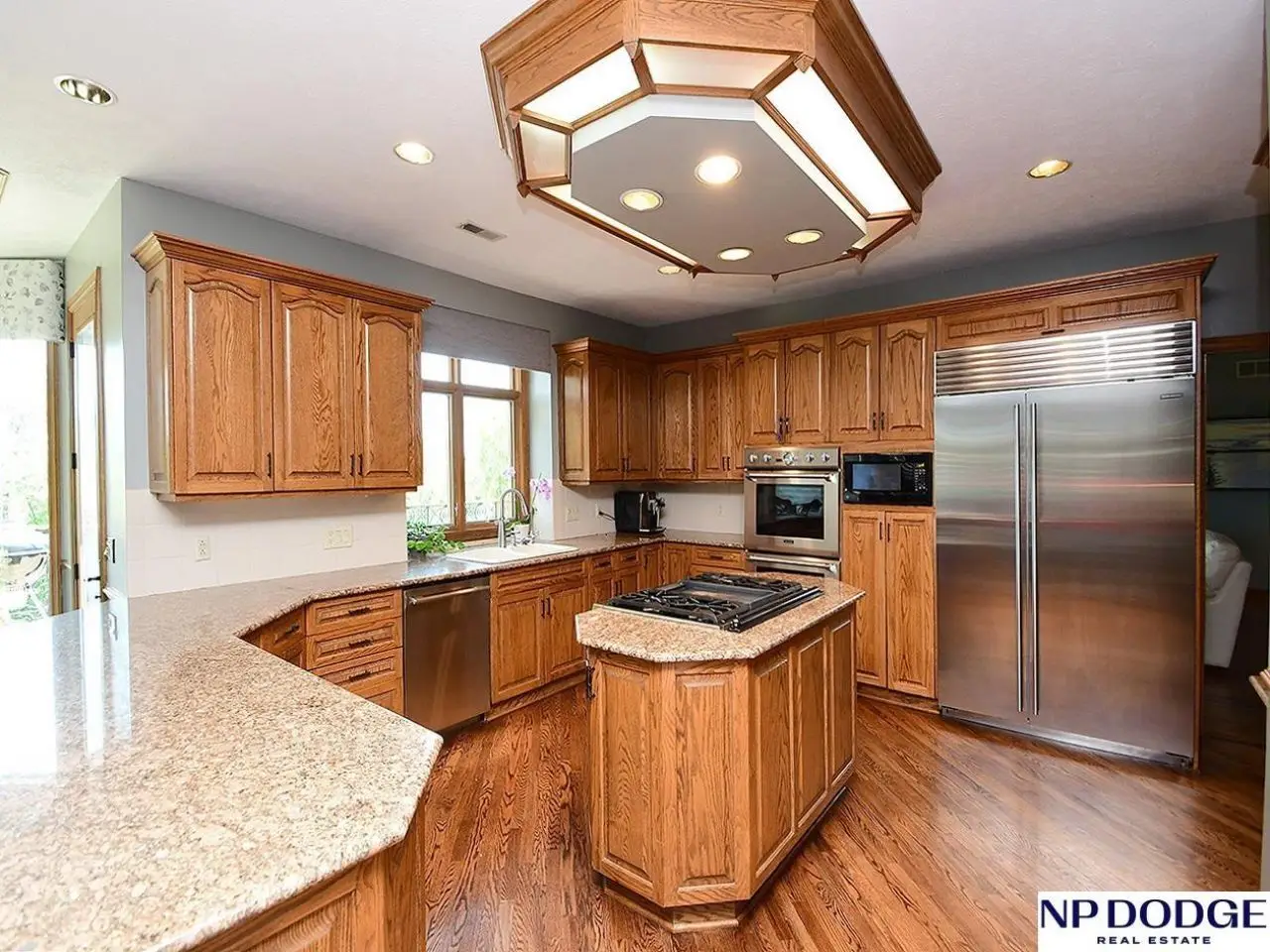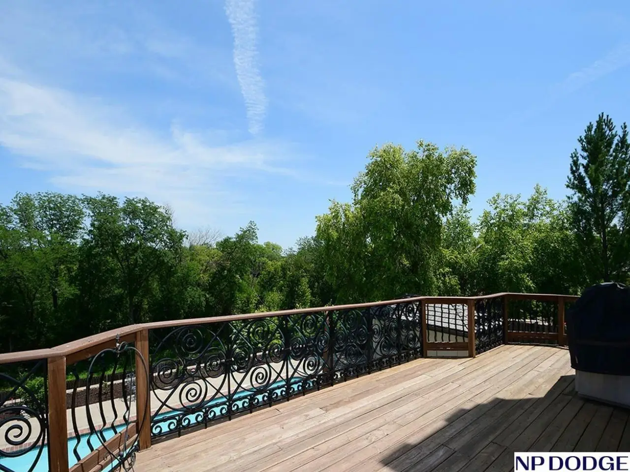 Executive 1.5 Story home with swimming pool backing to 1200 Acre Lake Zorinsky Park. Great home for entertaining. Very private 1/2 acre lot. Relax at pool side or just enjoy the park-like setting from oversized deck. Home features over 7,000 FSF, 5 Bedrooms, 5 Baths. Dramatic spiral staircase entry, open floor plan, kitchen has Thermador Appliances and Sub Zero Fridge. Walk-out lower level has full kitchen, theater room, workout room, bedroom, full bath. Very open area. Can be second living area. Millard Schools. One of a kind home!! AMA