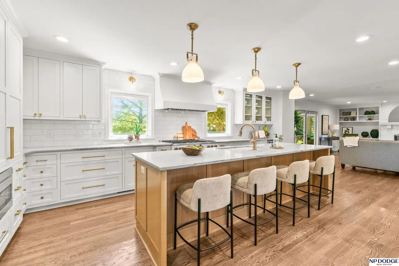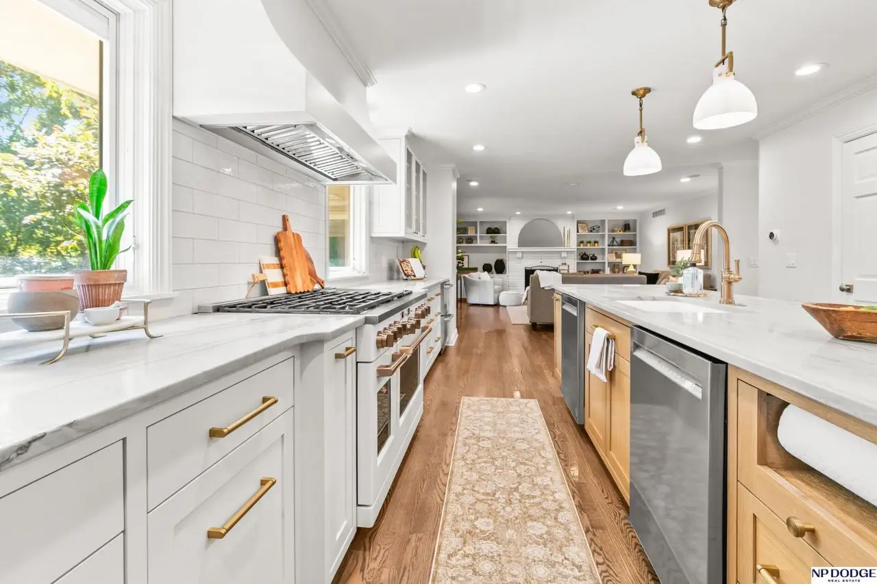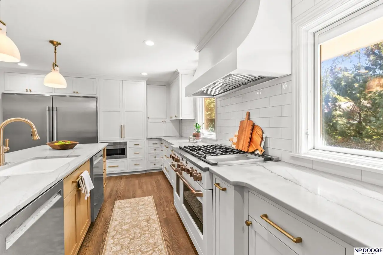 This stunning 2-story home in the heart of West Fairacres has been transformed over the past decade, most renovations from 2020, 2025, into a functional masterpiece blending luxury, leisure, & convenience. Nearly $300,000 in upgrades include a chef's kitchen w/ floor-to-ceiling custom cabinetry, quartzite countertops, GE Cafe 6-burner range, dual KitchenAid dishwashers, & oversized fridge/freezer. The primary suite offers a spa-inspired bath w/ heated marble floors, soaking tub, steam shower, & walnut cabinetry, plus walk-in closets in all 2nd-floor bedrooms. A redesigned main bath & added 2nd-floor laundry enhance everyday comfort. Updates include a new roof (2025), HVAC systems (2020), James Hardie siding, & refinished hardwoods. Outdoor living shines w/ a stone firepit, patio, & a beautiful four-season room off the back overlooking the landscaped corner lot. The oversized 3-car side-load garage includes wiring for a heater & a floor drain, perfect for Nebraska winters.