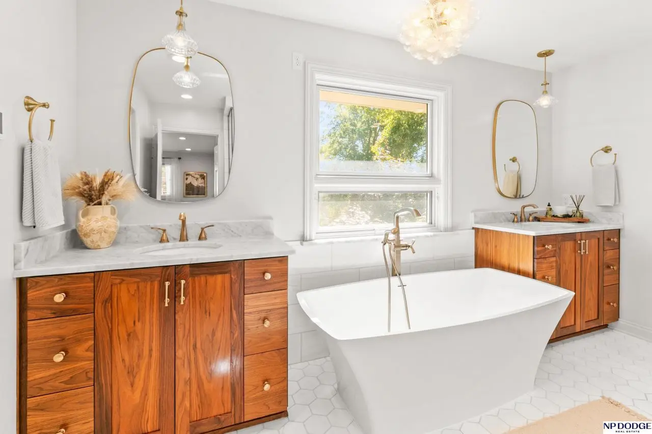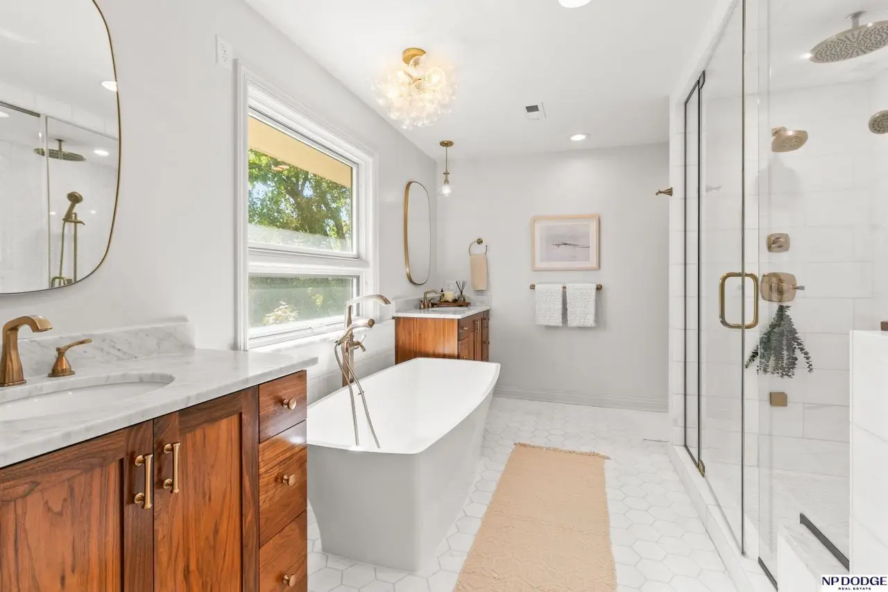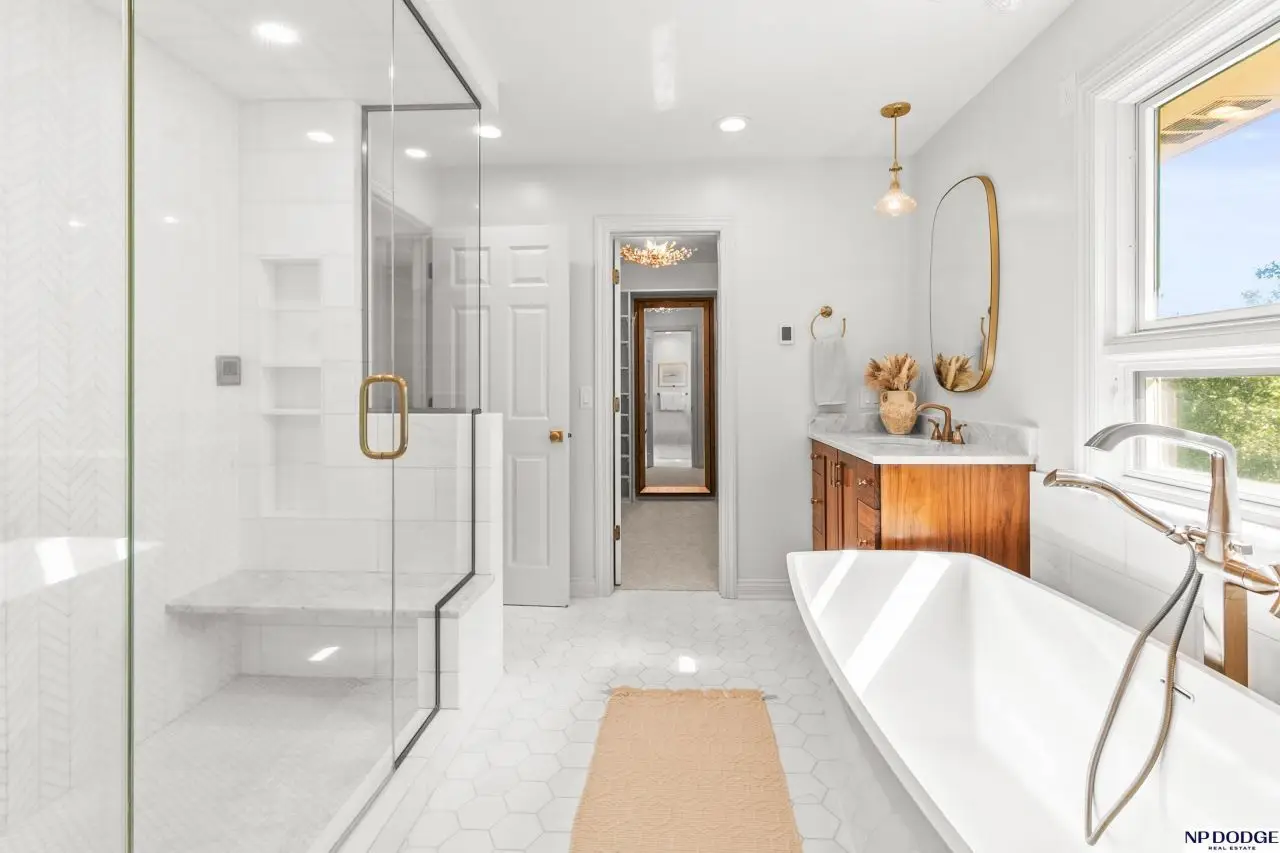 This stunning 2-story home in the heart of West Fairacres has been transformed over the past decade, most renovations from 2020, 2025, into a functional masterpiece blending luxury, leisure, & convenience. Nearly $300,000 in upgrades include a chef's kitchen w/ floor-to-ceiling custom cabinetry, quartzite countertops, GE Cafe 6-burner range, dual KitchenAid dishwashers, & oversized fridge/freezer. The primary suite offers a spa-inspired bath w/ heated marble floors, soaking tub, steam shower, & walnut cabinetry, plus walk-in closets in all 2nd-floor bedrooms. A redesigned main bath & added 2nd-floor laundry enhance everyday comfort. Updates include a new roof (2025), HVAC systems (2020), James Hardie siding, & refinished hardwoods. Outdoor living shines w/ a stone firepit, patio, & a beautiful four-season room off the back overlooking the landscaped corner lot. The oversized 3-car side-load garage includes wiring for a heater & a floor drain, perfect for Nebraska winters.