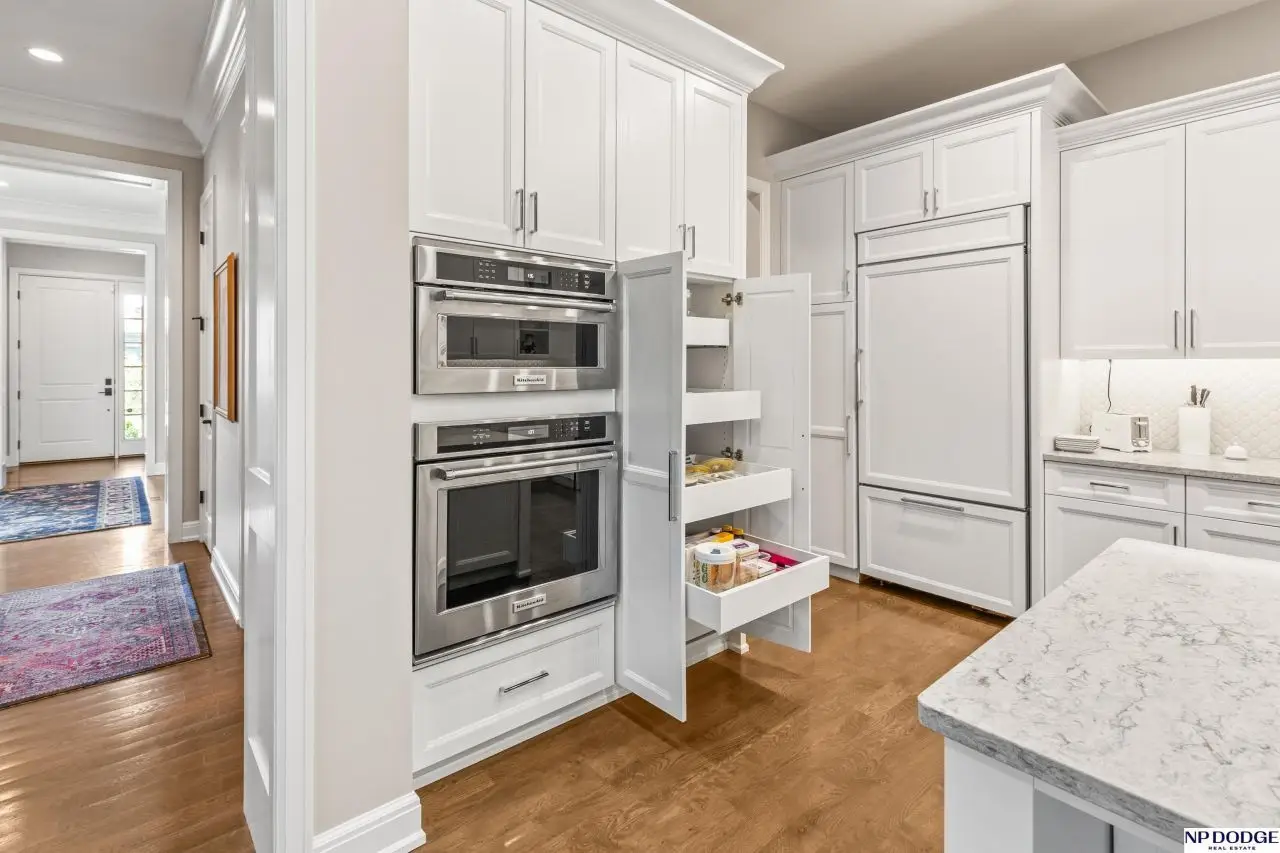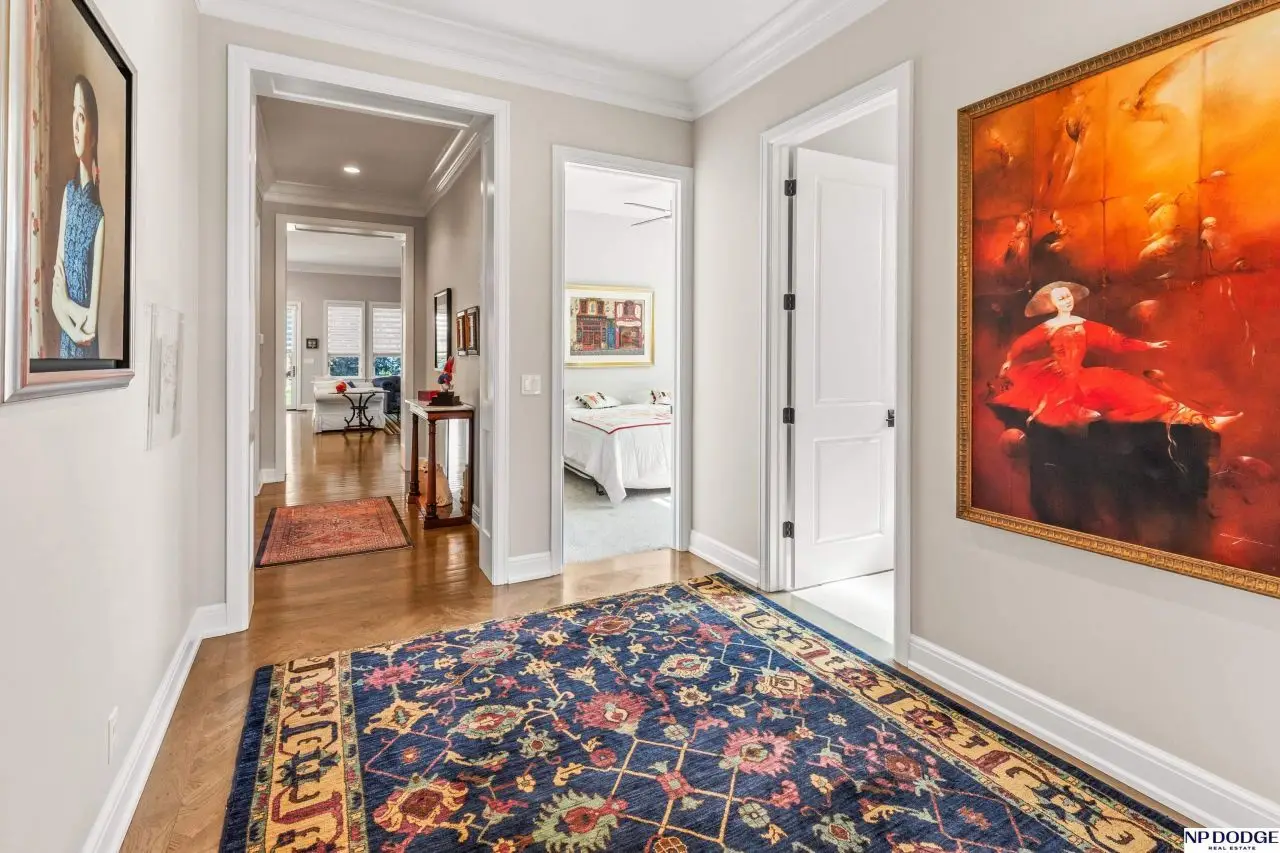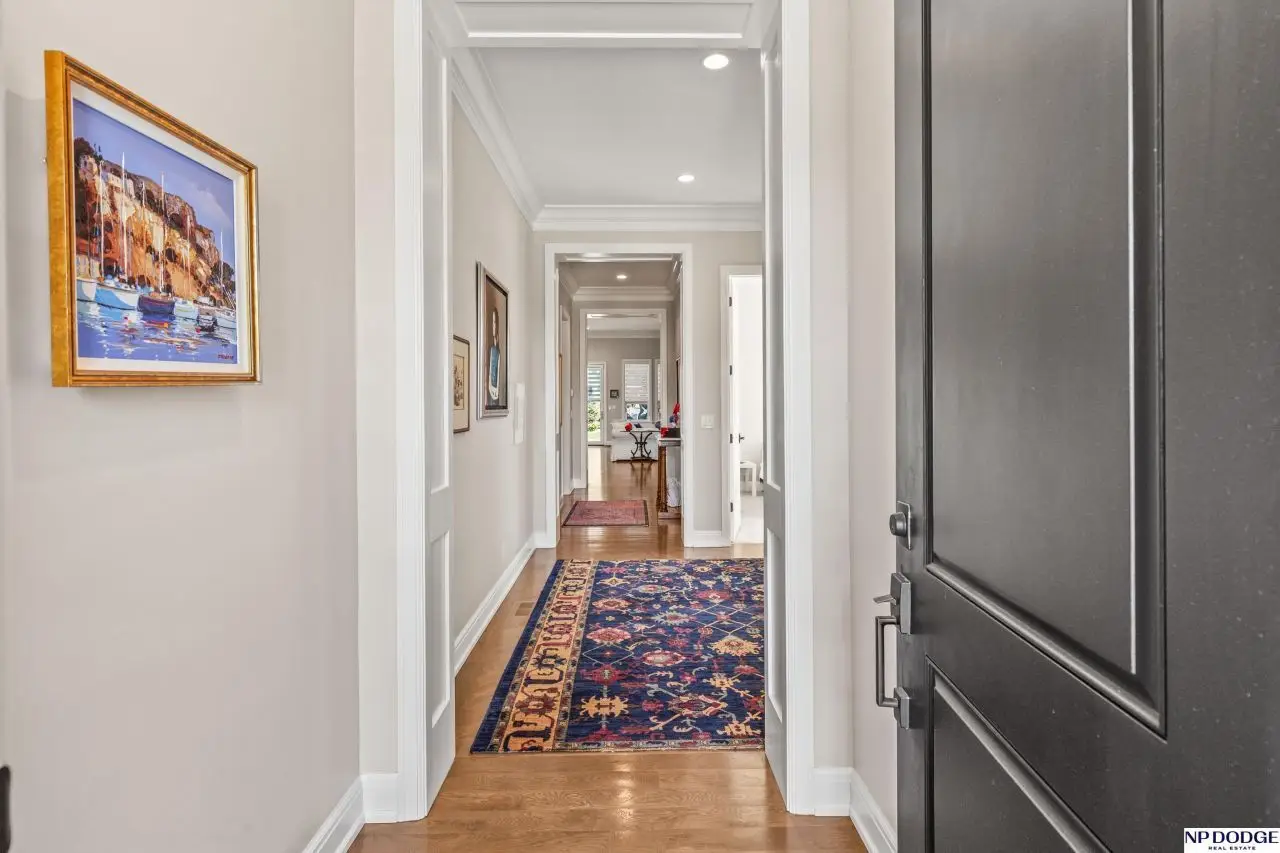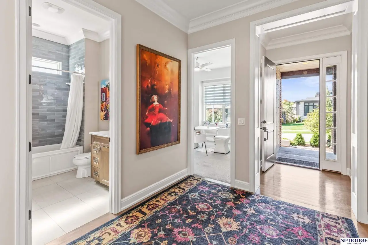 Open Sunday 1-3, 10/19/25 Built by SL Jensen, this home showcases quality and elegance throughout. A stunning entryway highlights 12 ft. ceilings, custom wood floor inlays, 8-ft solid-core doors, and elegant crown moldings. The open floor plan is ideal for entertaining with a seamless flow between the dining area, living room, and gourmet kitchen. The kitchen features a breakfast bar, Sub-Zero refrigerator, and 5-burner gas stove. The inviting living room centers around a gas fireplace with custom built-ins and pendant lighting. The primary suite includes a tray ceiling and spa-like bath with dual sinks and herringbone tile floors. The lower level offers a spacious rec. room that is perfect for game days, complete with a wet bar, fourth bedroom, full bath, and ample storage.
