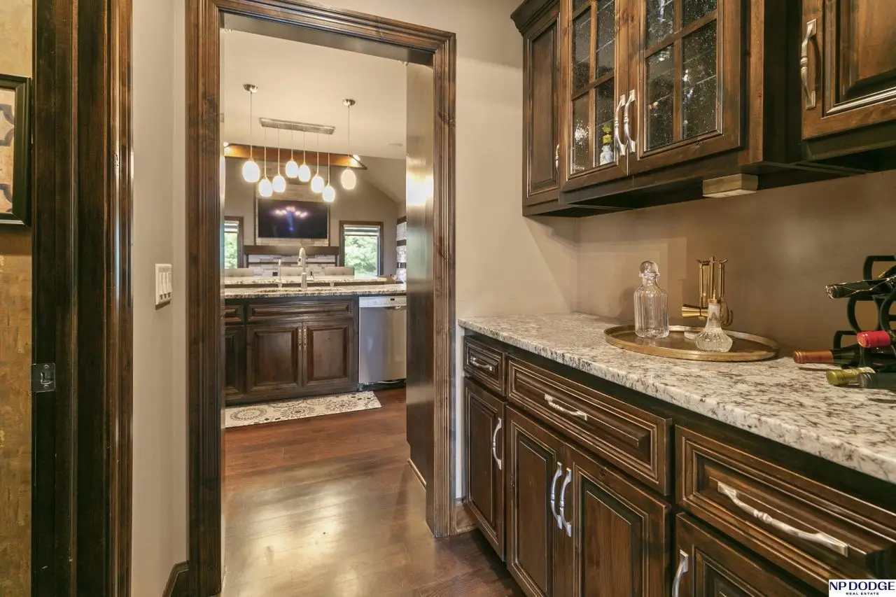 Turn the key and move right in to one of Elkhorn's favorite neighborhoods. This special 2-story in West Bay Woods 2 has been meticulously maintained and is now available. Striking finishes, craftsman meets modern. Very warm, extremely inviting and the ideal floorplan to entertain or relax. Hardwood floors and a tasteful kitchen with large hearth room, great room, formal and informal dining spaces and so much more. All 2nd floor bedrooms have direct bath access. Lower level has 5th bedroom, large rec room with fireplace, office/flex room, theater room and hidden storage/utility spaces. Beautiful, mature landscaping. Walk to school. Minutes from Zorinsky Lake and countless shopping/dining options. Some of the best construction quality in the area. Pre-Inspected.