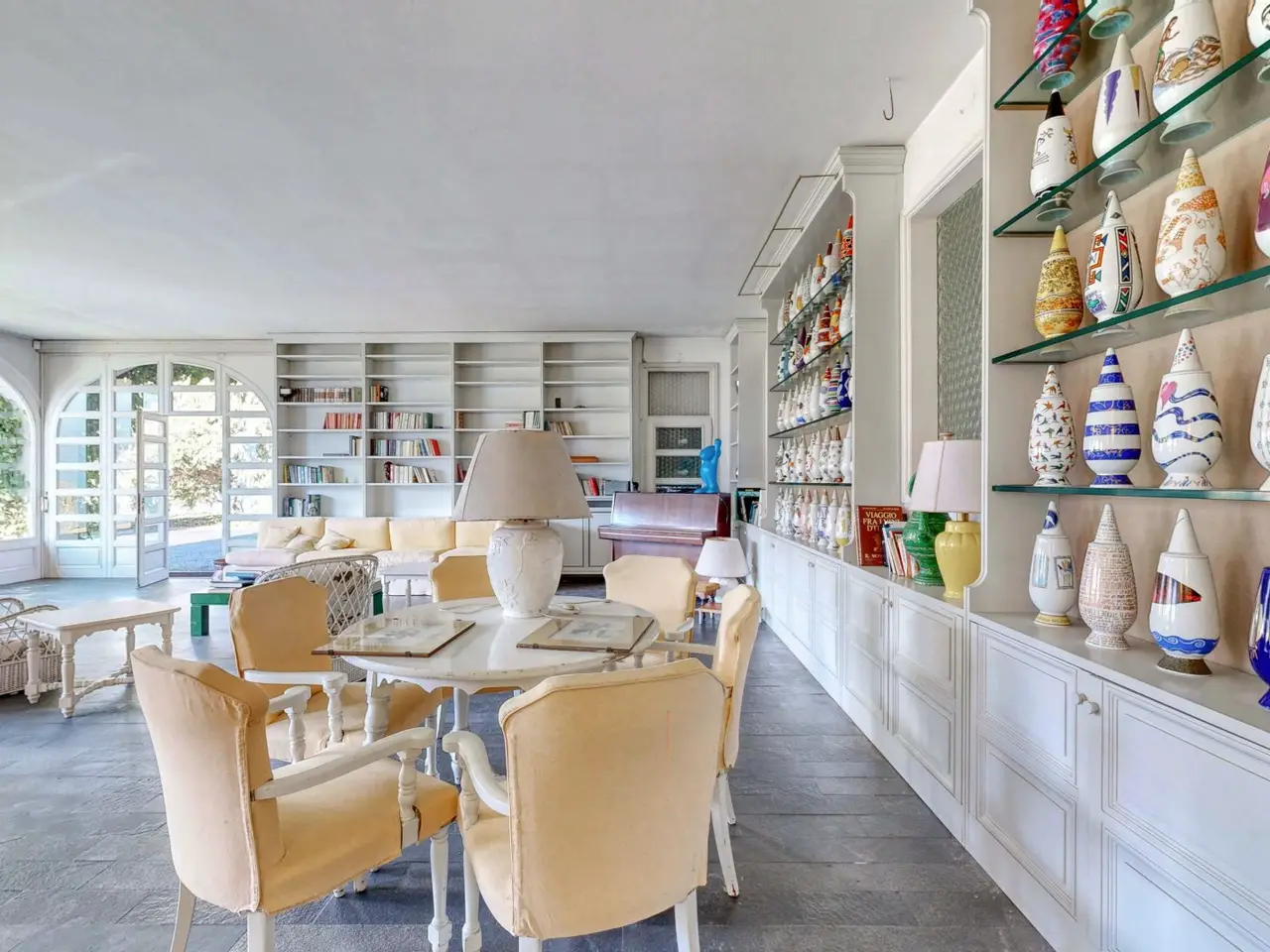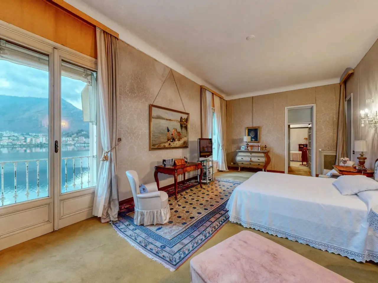 Nestled in a landscape of rare beauty, this prestigious villa for sale on Lake Orta represents one of the most exclusive residences in the region. Located in Piedmont directly on the shores of Lake Orta, the property offers breathtaking views and an atmosphere of absolute tranquility, perfect for those seeking a luxury home surrounded by nature. The villa, built in the mid-20th century, stands out for its timeless charm and perfect balance between elegance and modern comfort. Surrounded by a lush 6,500-square-meter garden, the property boasts exclusive access to the lake, thanks to a private pier, ideal for those who love water sports or wish to relax directly on the crystal clear waters. The main house is spread over several levels for a total of 2,000 square meters of interior space, with spacious living areas perfect for entertaining guests and enjoying the lake views. Large picture windows offer unparalleled views, while the interiors are embellished with fine materials, coffered ceilings, stone columns, and marble finishes. On the second floor is the sleeping area, consisting of ten elegant bedrooms and five bathrooms, ensuring maximum comfort and privacy. The attic floor houses additional utility rooms and an independent suite. In addition to the main residence, the villa has a fully equipped annex, complete with changing rooms, showers and a bar area with a relaxation zone. For sports lovers, the property also includes a tennis court, perfect for moments of outdoor recreation. Thanks to its unique location and attention to detail, this fine villa for sale in Italy represents a unique opportunity for those who want an exclusive home on the shores of Lake Orta. The direct access to the lake, the lush garden and the refined environments make this pieds dans l'eau villa a charming retreat perfect for experiencing luxury in total privacy and relaxation.
