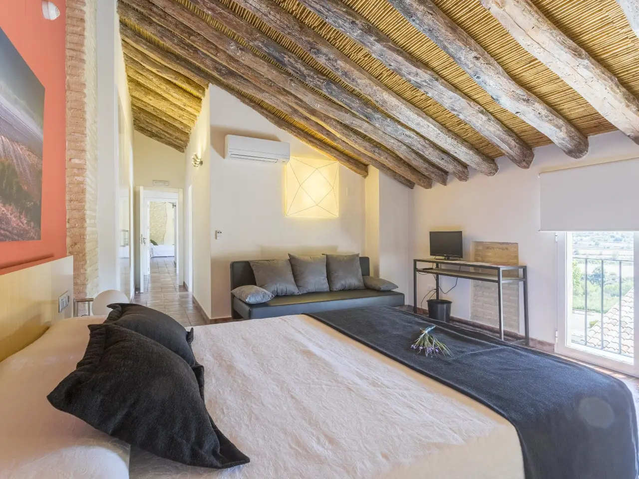 Hotel with 8 large rooms between 25 and 35m2. It also has a spa area and is close to all the wine cellars of the so-called Terres dels Alforins within the DO Valencia. The rooms have been decorated by the interior designer Mª José Virosque, inspired by the native Valencian wine theme. They are distributed over two floors, the second being attic, with all the charm of wood and spectacular views.