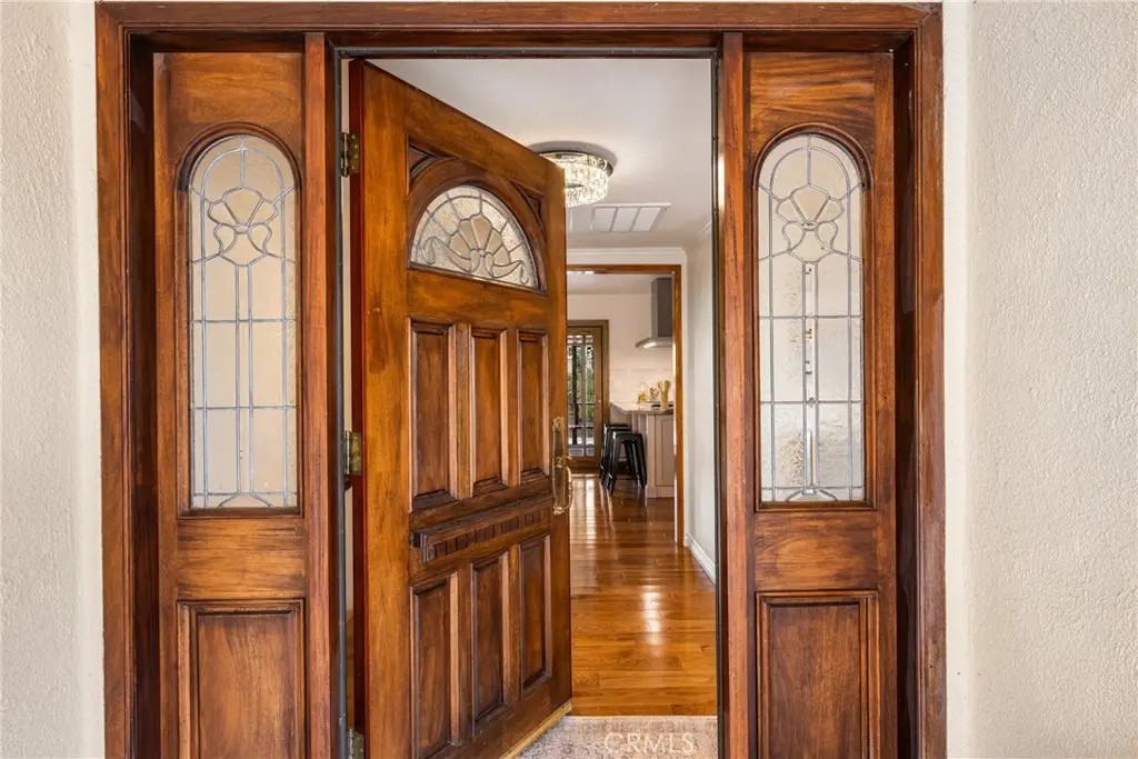 Welcome to this beautifully upgraded 4-bedroom, 3-bathroom home offering 2,121 sq ft of thoughtfully designed living space. With a downstairs bedroom and full bath, this layout is perfect for guests or multigenerational living. At the heart of the home is the Designer Chef's Kitchen, featuring premium appliances: Sub-Zero Dacor refrigerator, Dacor double oven with warming drawer, Wolf 6-burner cooktop, Bosch dishwasher, and Dacor convection microwave. Enjoy the gorgeous Quartzite countertops, vegetable prep sink, and custom pull-out shelving make this a dream kitchen for any culinary enthusiast. All bathrooms have been tastefully updated with elegant Kraft Maid birch wood cabinetry, adding warmth and sophistication throughout the home. The home boasts 3/4-inch Hickory wood floors, recessed lighting and ceiling fans perfect for those warm summer days. Outside, entertain in style under the custom - built covered patio, perfect for alfresco dining. The expansive backyard is a private oasis featuring mature Hass avocado, orange, lime, and kumquat trees, plus a convenient slab sink for barbequing. On opposite sides of the yard, you'll find two custom built 8x16 sheds complete with insulation, drywall, windows, and 3-amp wiring offers exceptional additional space. Additional highlights include RV parking with remote controlled gate access, Noritz tankless water heater, reverse Osmosis water system, a Vertex security system, with multiple cameras for added coverage, newer ductwork, and a 3-year-old composition shingle roof with 50-year warranty. A rare find that blends luxury finishes, thoughtful upgrades, and versatile outdoor space - this home is truly the total package!