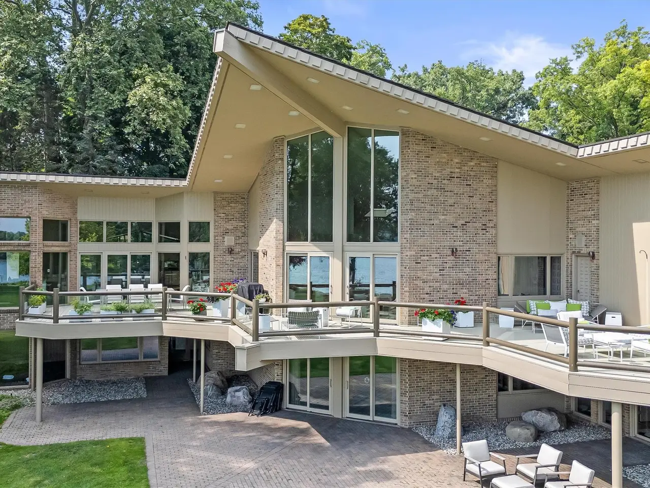 Meander through the Orchard Lake Country Club property to your home on the best street on Orchard Lake. On an exclusive stretch of shoreline, with only fourteen estate-sized parcels on this private, dead-end street. Unparalleled privacy, prestige and panoramic lake views from nearly every room. 3333 W Shore features 2.12 acres and 230 feet of lake frontage on 795-acre all-sports Orchard Lake, with picturesque views of Apple Island. Blend of mid-century modern and contemporary design, desirable ranch with finished walkout lower level offers over 9,200 square feet. Striking architecture, cedar shake roof, vaulted ceilings, floor-to-ceiling windows, skylights, and hardwood floors throughout. Intricate, detailed, solid wood doors and leaded glass doors. The enormous great room is the interior focal point, two-story fireplace. Gourmet granite kitchen, oversized island with counter-top seating for six. Thermador six-burner, plus griddle gas cooktop, double ovens, and wine refrigerator. Luxurious primary suite offering stunning lake views. Dual walk-in closets, coffee bar, oversized marble shower, sleek stone soaking tub and washer and dryer. Walkout lower level features three en-suites, theater with leather reclining chairs, entertainment area, partial second kitchen. Enormous, mirrored exercise studio with rubber floor, gym lockers and dry sauna. Cedar closet. Three fireplaces. Elevator. 90-foot deck spanning the entire home, glass railing. Steps down to the brick paver patio, offering multiple outdoor entertaining areas. Sports court. Newer mechanicals and some Pella windows. Large circular driveway for ample guest parking. Three-car attached garage, plus a secondary garage that accommodates six cars with room for lifts, perfect for your boat storage. Private entrance office/in-law/guest suite offers a separate home office, bedroom and full bathroom. Taxes are currently non-homestead. West Bloomfield schools. A rare opportunity to own one of the most coveted addresses on Orchard Lake!