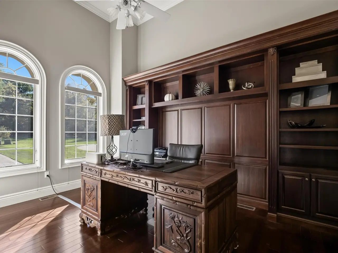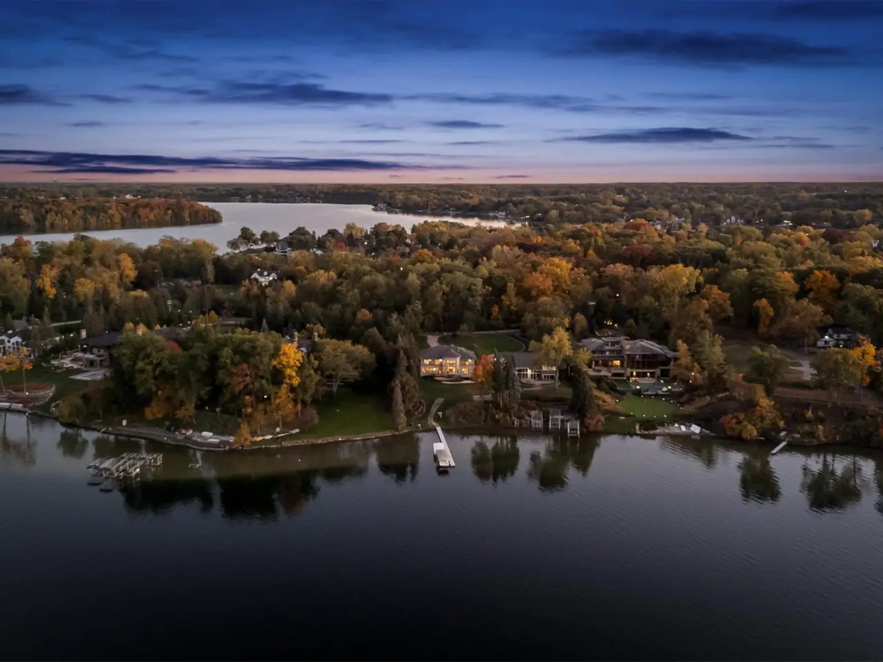 Situated on Dow Ridge Road, one of the most prestigious streets in Oakland County, and certainly the epitome of Cass Lake living. Perched above the shoreline on just over three quarters of an acre lot. 108' of crystal clear, sandy shoreline. Newer built in 2012. Long double-wide driveway, with circular fountain area, provides ample parking for large gatherings. Grand two-story foyer and great room. The great room offers floor-to-ceiling windows with magnificent unobstructed views of the lake. Library/office with custom built-ins. Bright, white gourmet granite kitchen, oversized island with countertop seating, and premium stainless steel appliances: SubZero refrigerator and freezer, Wolf gas range, KitchenAid dishwasher. Walk-in pantry. Full back hall bath, great when coming off a day on the lake. Desirable first-floor primary suite, doorwall to deck, dual walk-in closets. Curved hardwood and wrought iron staircase. Three en-suites upstairs all facing the lake with their own balconies, granite baths and walk-in closets. The second floor loft/office area could easily be enclosed to create an additional bedroom. Lower-level walk-up, second full kitchen, exercise area, 5th en-suite. Lower level kitchen has two side-by-side six burner gas ranges. Dual staircases, solid core doors, palladium windows, Generator, new roof 2025, interior freshly painted 2025. New tile balcony with a glass railing. Unable to duplicate lot and home for this price. Room for a pool in the backyard. Large brick-paver lakefront patio. Four car garage. West Bloomfield Schools: Gretchko Elementary, new West Bloomfield Middle & West Bloomfield High. Experience lakefront living at its finest!