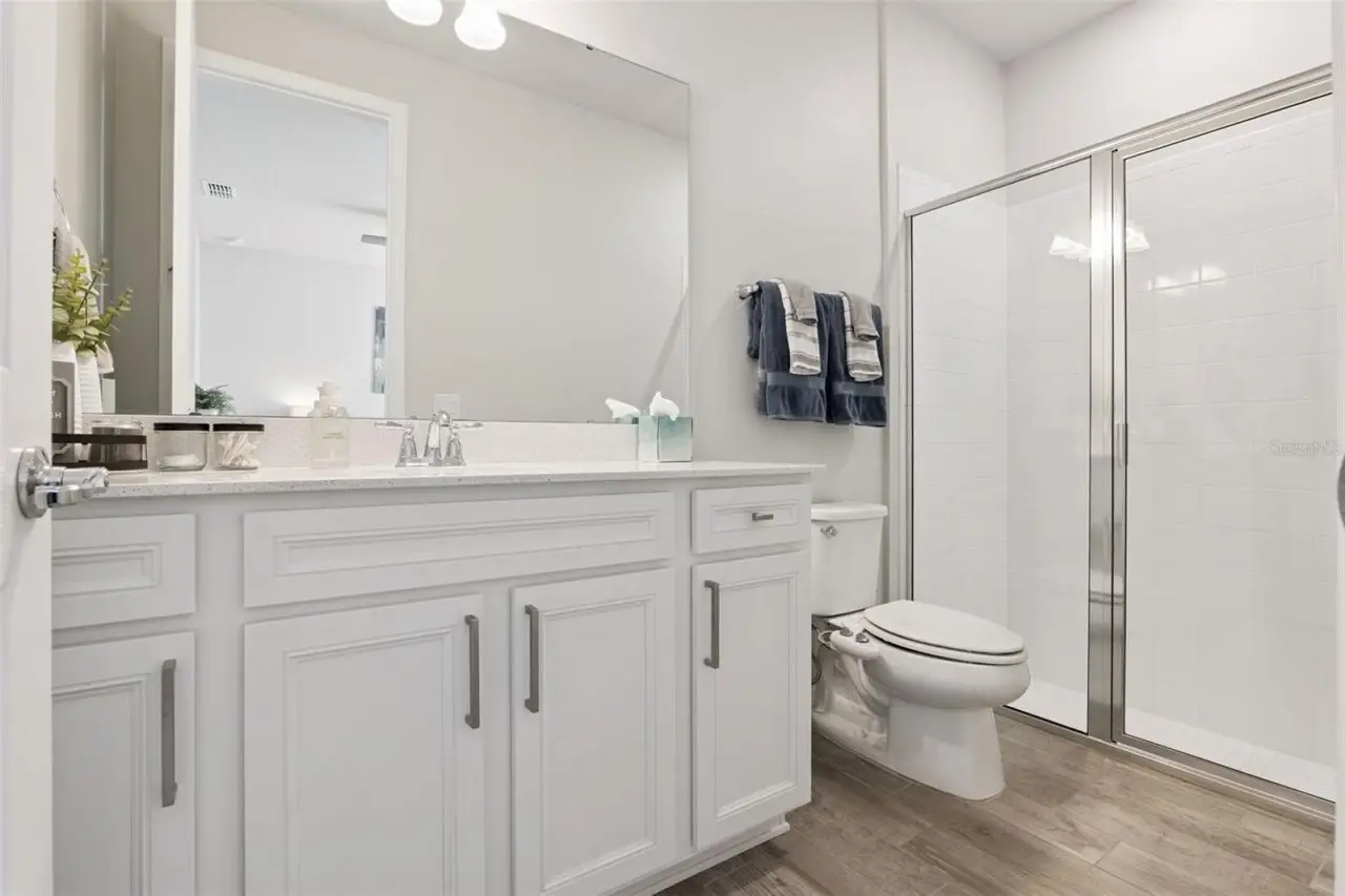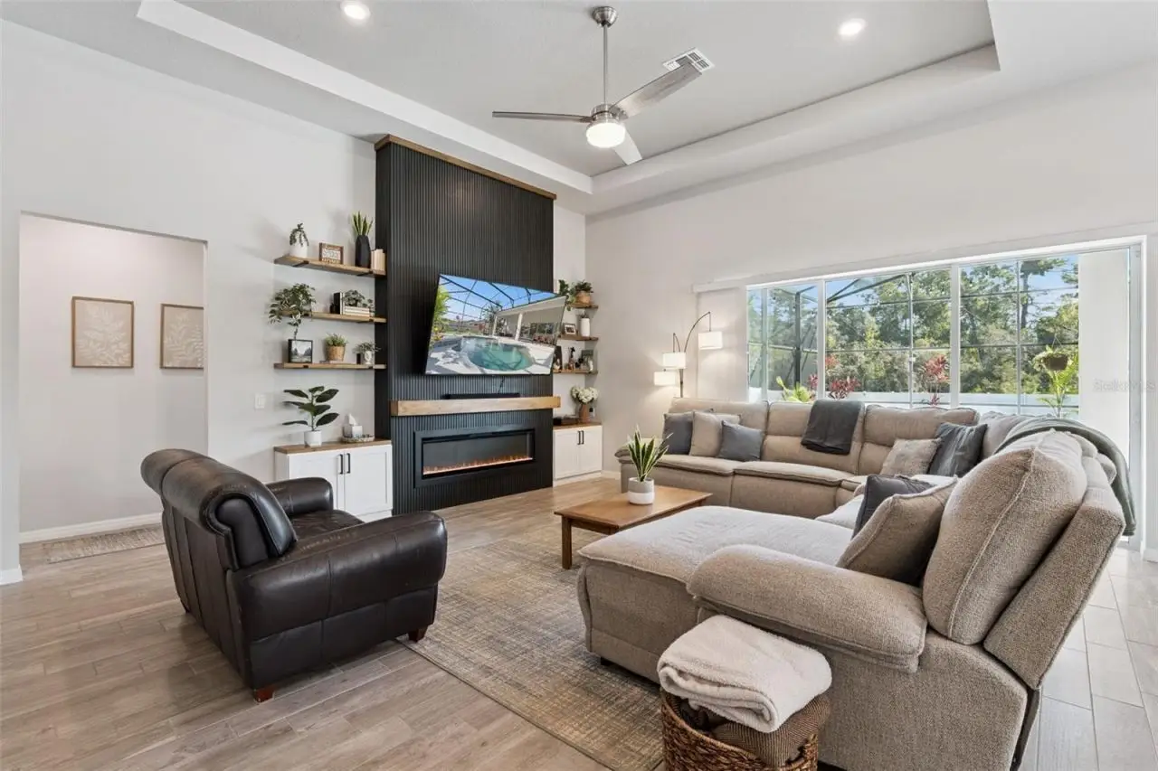 WHY WAIT TO BUILD? Welcome Home to 4161 Sunset Preserve Blvd - Luxury Living in Sunset Preserve! Located in the exclusive, gated, lakefront community of Sunset Preserve. This better-than-new 2021 Pulte-built Dockside floor plan offers a rare opportunity to own a beautifully upgraded, truly move-in-ready home on an oversized lot complete with a PRIVATE SALTWATER POOL. With four bedrooms and three full bathrooms, this stunning residence blends elegance, comfort, and functionality in a thoughtfully designed single-story, three-way split floor plan. Perfectly situated on 1/2 ACRE LOT, the fully fenced yard, oversized screened lanai, and sparkling private pool provide unparalleled space and privacy. Whether you're hosting gatherings or enjoying peaceful evenings at home, the setting is ideal for both entertaining and relaxation. Step inside to discover a gourmet kitchen featuring stainless steel appliances, 42-inch designer cabinetry, quartz countertops, and a large center island-perfect for casual meals or preparing holiday feasts. The formal dining room adds a touch of sophistication and is well suited for family dinners and celebrations. The spacious family room is highlighted by soaring ceilings, a custom-built media wall with an electric fireplace feature, creating an open, inviting, and naturally bright atmosphere. Every detail in this home has been upgraded with care, including wall-to-wall solid-surface flooring, premium custom interior paint, modern ceiling fans in all bedrooms, stylishly upgraded bathrooms, walk in closet storage, and a custom-built drop zone.Additional features include a dedicated irrigation well to help minimize water costs, as well as multiple energy-efficient enhancements. The home is equipped with R-30 attic insulation, R4.1 insulation with vapor shield on block walls, air-filtration sealant, and Low-E dual-pane vinyl windows-delivering year-round comfort and long-term savings.Located in one of the area's most desirable waterfront communities, residents enjoy access to a private boat ramp and the pristine waters of Lake Pickett. Sunset Preserve also offers a community playground and serene water access, making it perfect for outdoor enthusiasts.This is a rare chance to own a private, luxury home with high-end finishes, energy-efficient upgrades, and exceptional outdoor amenities. Whether you're spending quiet mornings on the water or hosting friends on your expansive property, this home delivers the perfect blend of elegance, comfort, and the true Florida lifestyle.