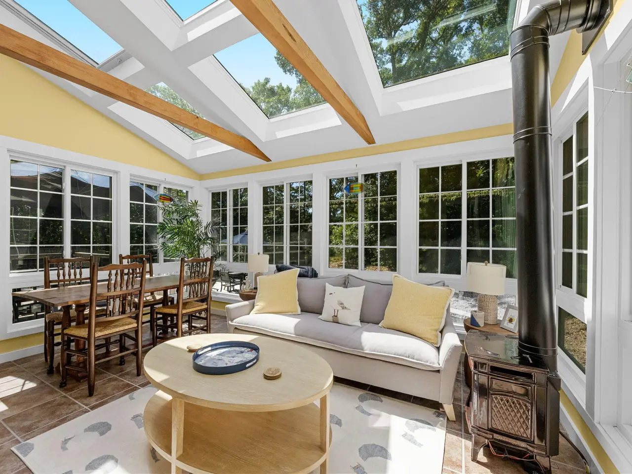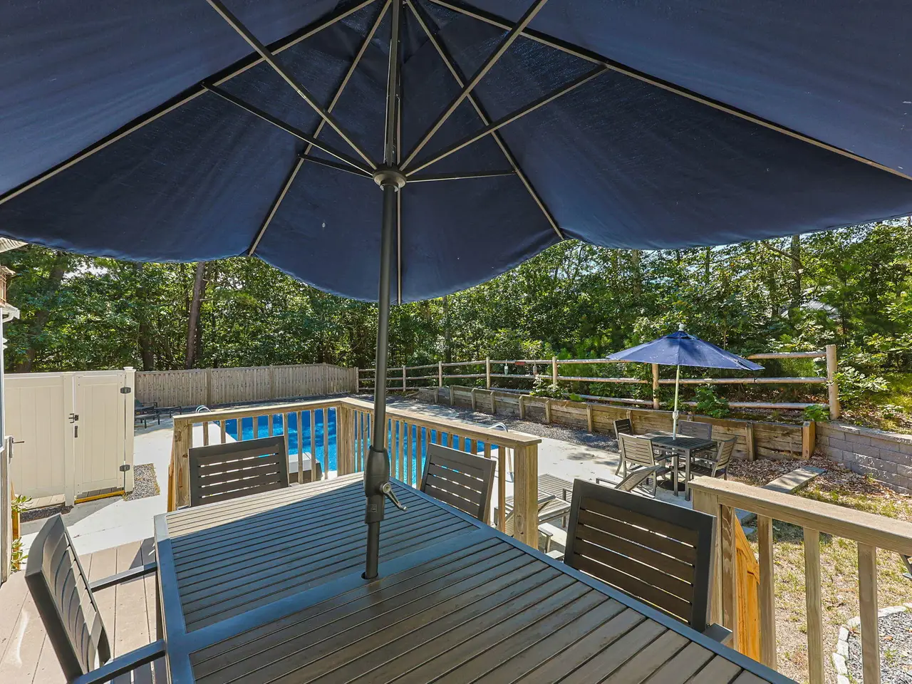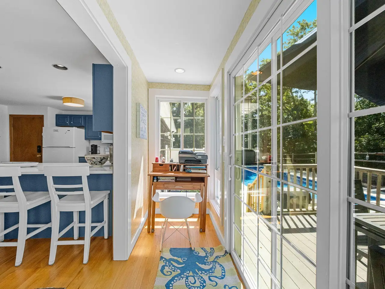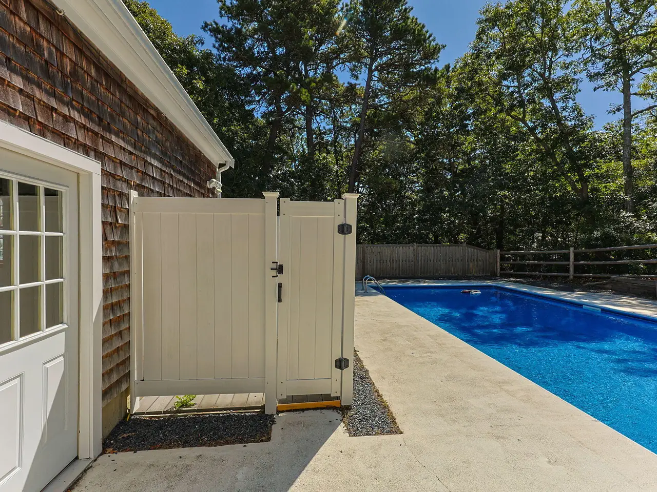 Tucked away on a quiet cul-de-sac, this inviting 3-bedroom, 2-bath ranch offers the perfect blend of comfort and coastal charm. The vaulted living room, enhanced by skylights and a cozy fireplace, creates a bright and welcoming gathering space. A sunroom with a warming stove overlooks the private backyard, while the spacious deck and sparkling pool are ideal for summer living and entertaining. The lower level includes an exercise room, abundant storage, and excellent potential for additional living space. With a newer roof and a quiet setting close to the beach, this home offers privacy, convenience, and an easy Cape Cod lifestyle.