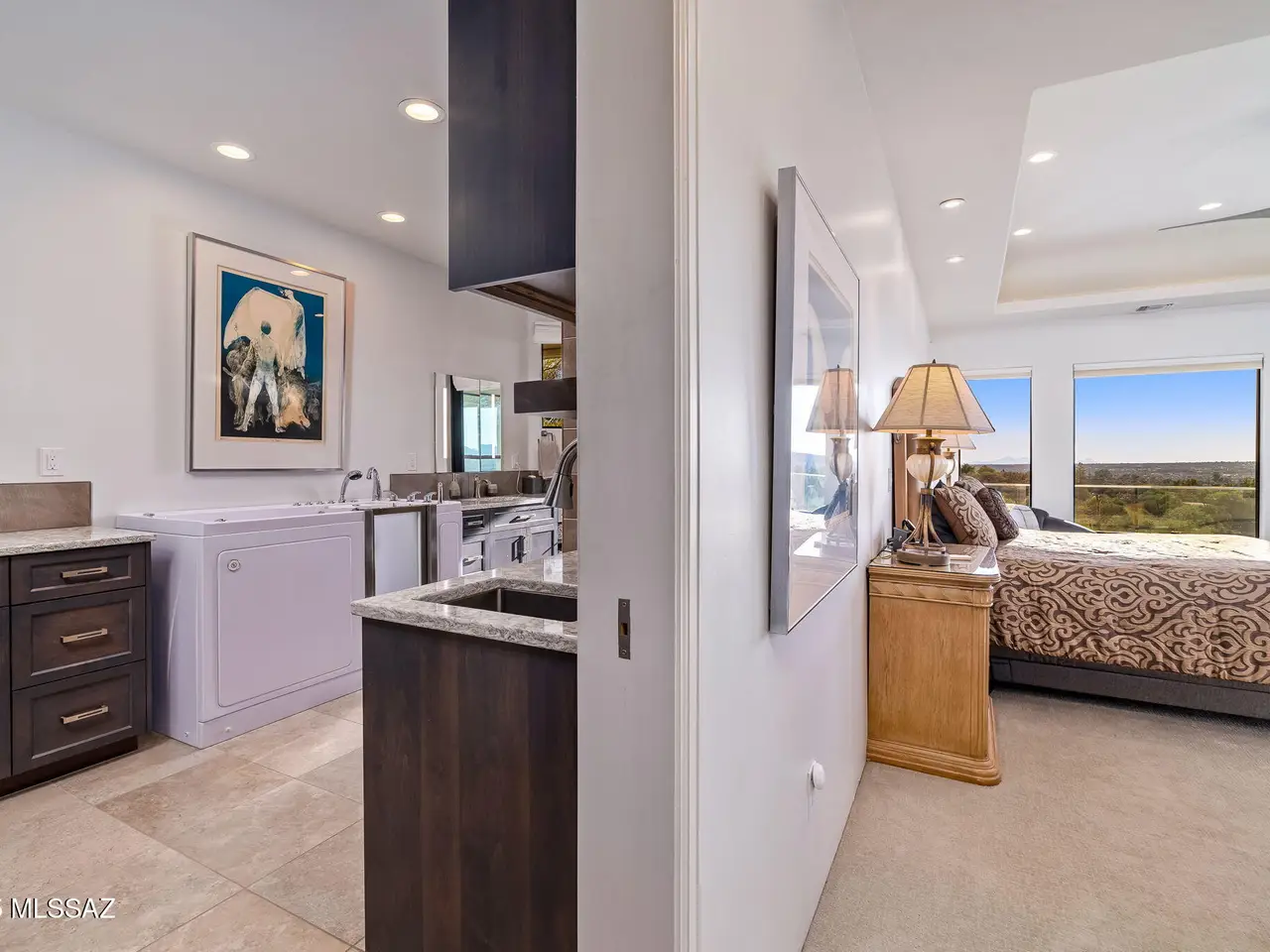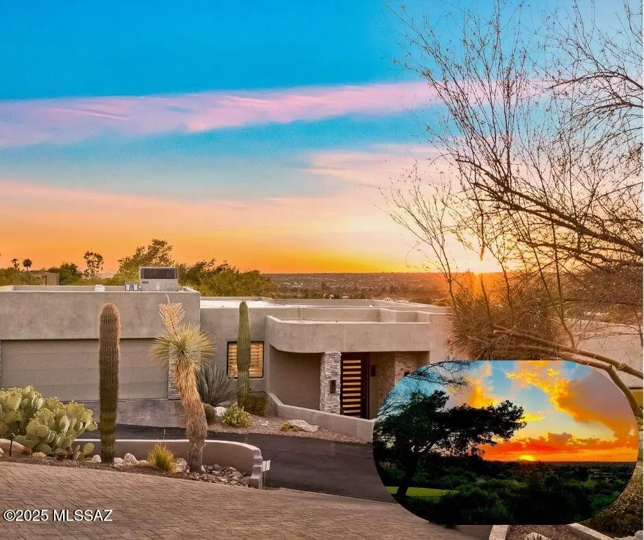 Contemporary desert retreat perched on quiet hillside w/sweeping city & golf course views offers rare privacy & elegance without the restrictions of an HOA. Designed for modern living & entertaining w/clean architectural lines that blend seamlessly w/natural landscape for exceptional curb appeal. Step inside to discover light-filled open spaces w/soaring ceilings, sophisticated finishes & versatile floorplan that invites relaxation or gatherings w/friends. Expansive living area flows to chef's kitchen & dining area while comfortable lounge spaces make everyday living feel special. Exceptional primary suite hosts luxurious bath, kitchenette, custom closet & private patio access all w/valley views. But the true magic is outside-generous patios & terraces expand your living area dramatically