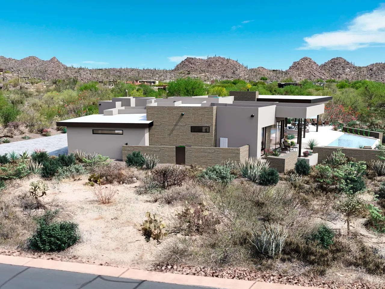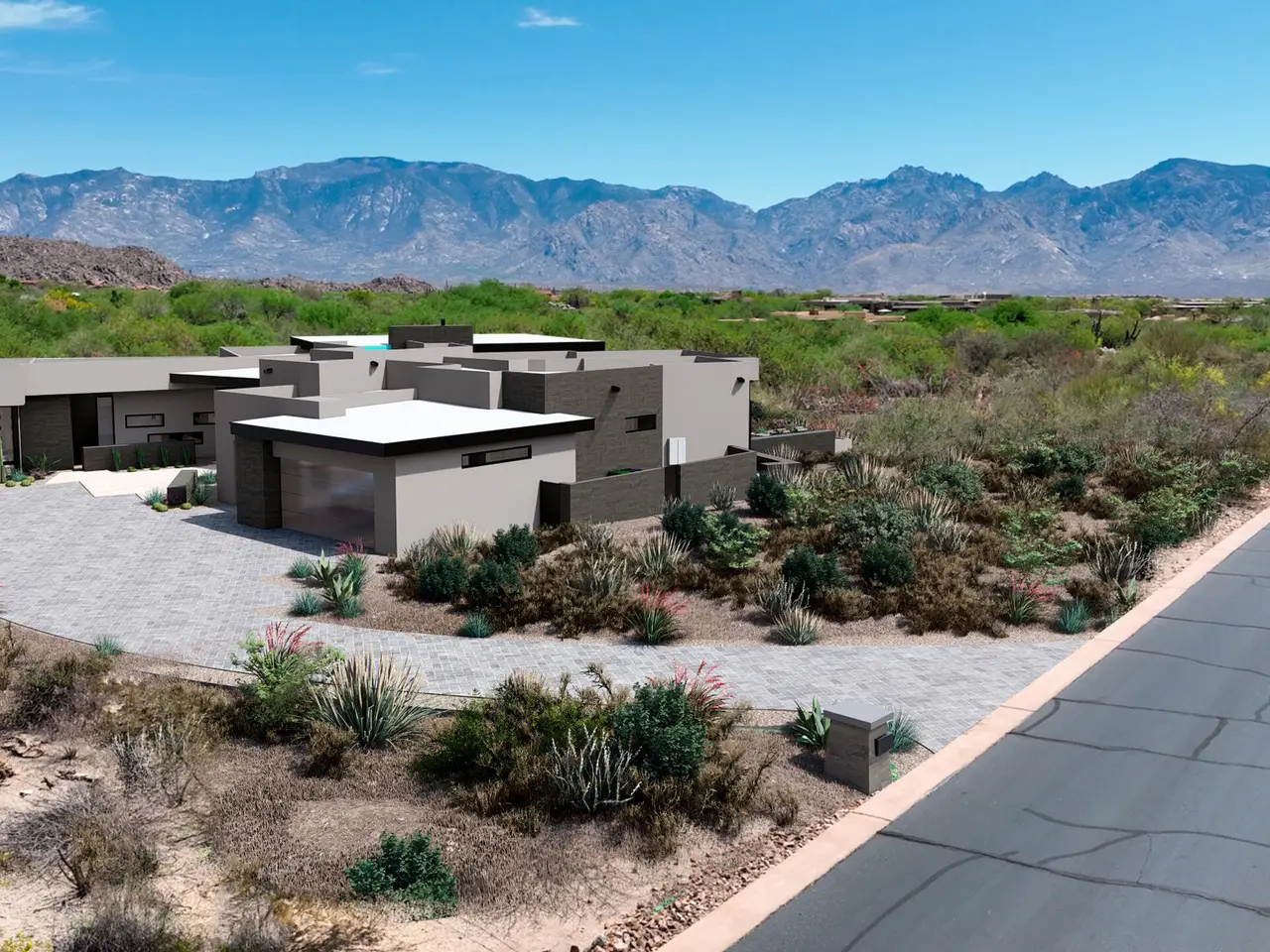 Under Construction | A Desert Contemporary Masterpiece in Stone Canyon. Architect Marc Soloway and R & B Construction unite to create a striking new custom home in the prestigious guard-gated community of Stone Canyon--one of the nation's top-ranked private golf clubs. Designed with Soloway's signature modern lines and extensive use of glass, this 4, 287 sq ft single-story home offers a refined blend of desert elegance and contemporary sophistication. Set along the 11th fairway, the home captures sweeping golf course views and breathtaking panoramas of the Catalina Mountains. The orientation is ideal--enjoy soft morning light and sunrise views from your back patio, and in the evenings, take in Oro Valley's famous sunsets as the mountains glow with shades of pink and purple. Stone Canyon Community is surrounded by dramatic rock outcroppings and iconic saguaro-dotted landscapes, this property showcases the very best of the Sonoran Desert. Inside, the home is thoughtfully designed for luxury living and effortless entertaining. Generous open spaces with soaring ceilings flow through a great room concept, anchored by a sleek fireplace and expansive windows that frame the natural beauty beyond. The chef's kitchen features Sub-Zero and Wolf appliances, a walk-in pantry, and custom cabinetry, all curated in a warm, modern-organic palette that gives the home a soft, inviting feel. The split floor plan includes a spacious office and bonus exercise room, while the oversized primary suite offers a spa-like bath with freestanding tub, open layout, and large walk-in closets. Every room in the home is positioned to capture a view, creating a seamless connection to the outdoors. The resort-style backyard includes a heated pool and spa, lush desert landscaping, multiple seating areas, an outdoor kitchen, and a cozy fire pit - perfect for entertaining in Arizona's year-round sunshine. A masonry wall adds privacy, while energy-efficient construction and high-end windows and doors enhance comfort and performance. This home is more than a place to live - it's a design-forward retreat that embraces the beauty of its surroundings and the lifestyle Stone Canyon is known for.
