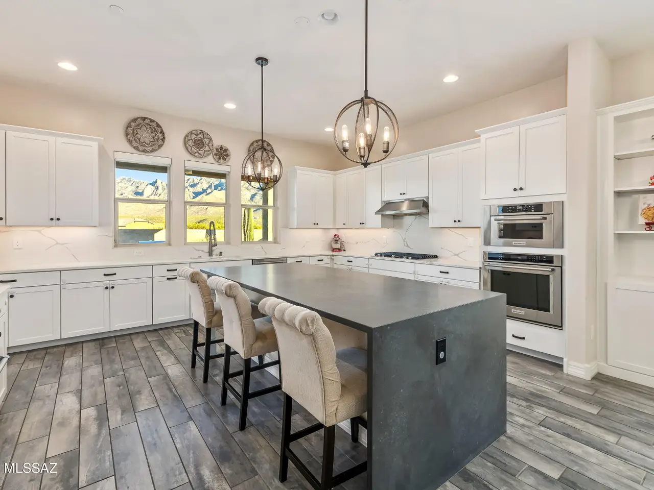 Tucked away in the gated community of Sanctuary at Silverhawke, this exceptional single-level home blends elegant design with sweeping Catalina & Pusch Ridge mountain views. With 3BR/31/2BA+office, den & bonus room & flexible 3,249sf floor plan, this residence sits on an oversized cul-de-sac lot offering privacy & tranquility. Recently renovated with about $100,000 in premium upgrades, every inch reflects elevated craftsmanship and thoughtful design. Kitchen has been elevated with a new sink and faucet, walk-in pantry and addition of a half bath, seamlessly blending convenience with design. In the laundry room, updates like a new backsplash, pocket door & modern countertop give the space a fresh, functional feel. Great room & office were also transformed