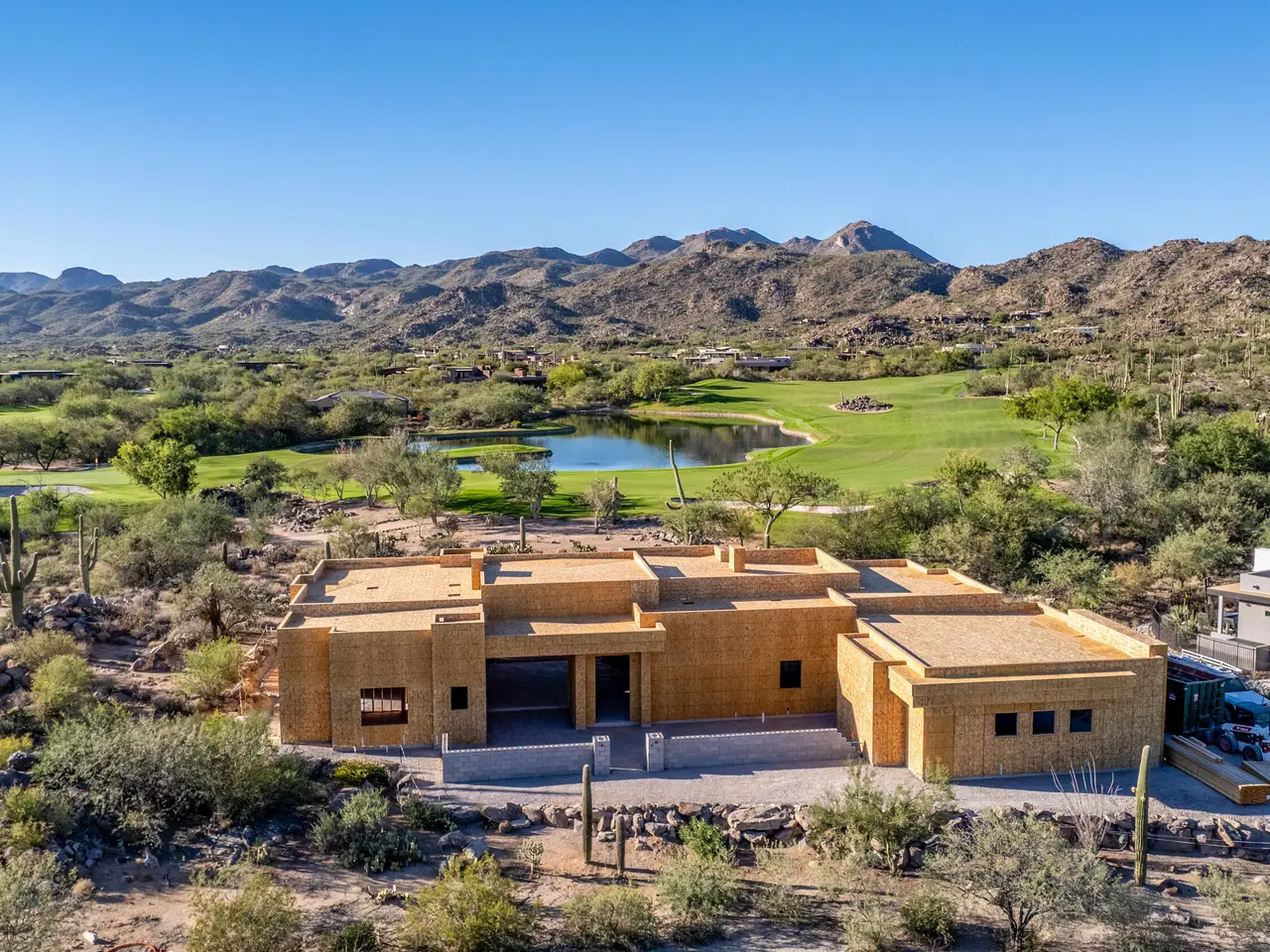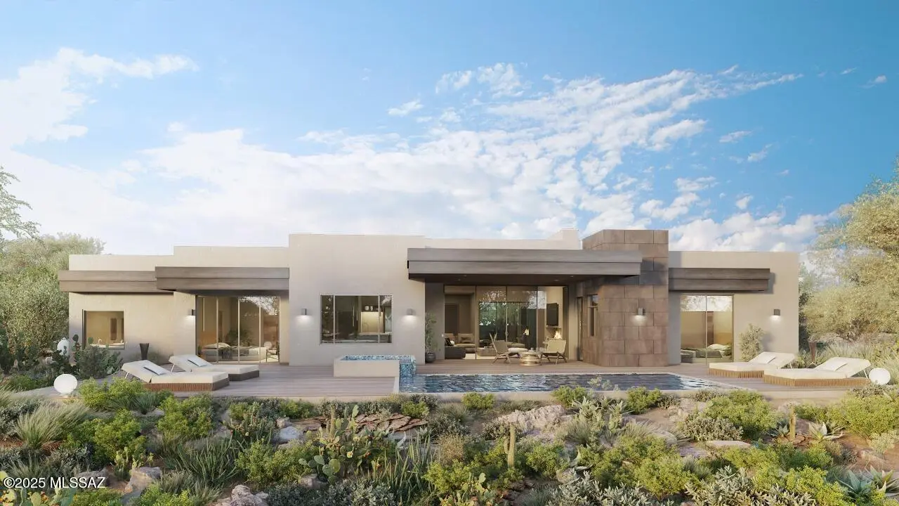 Under Construction \ Experience the epitome of luxury living on Stone Canyon's coveted Hole #10--arguably the best golf hole lot in the community. With sweeping views of the entire fairway, the Tortolita Mountains as a dramatic backdrop, and a sparkling lake in a serene park-like setting, this home offers unmatched privacy on one of the most desirable streets in Stone Canyon.This 4-bedroom, 4.5-bath contemporary home is designed to impress at every turn. A grand entry opens to soaring 15-foot ceilings accented with tongue-and-groove detail and an illuminated tray. The expansive great room, anchored by a dramatic fireplace, flows seamlessly into an opulent kitchen showcasing rich quartered walnut cabinetry, a Wolf range with custom wood-wrapped hood, and a Wolf built-in coffee system.