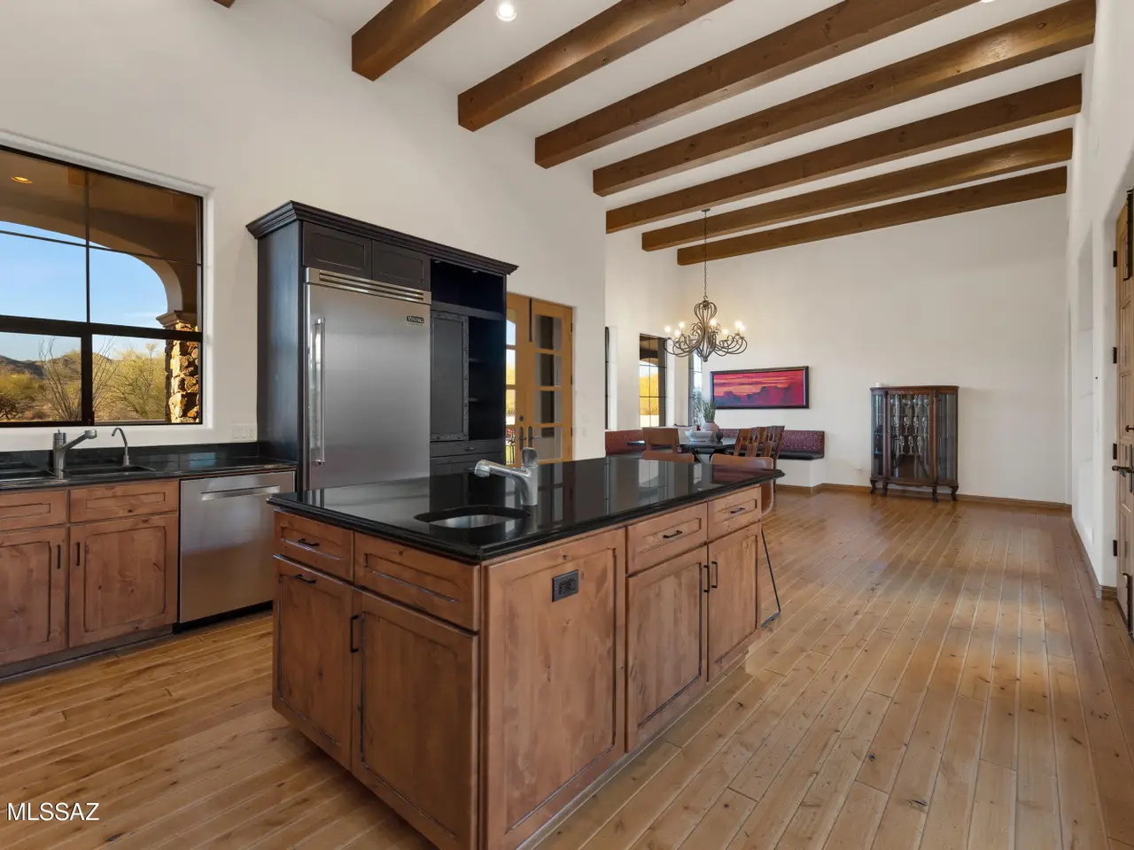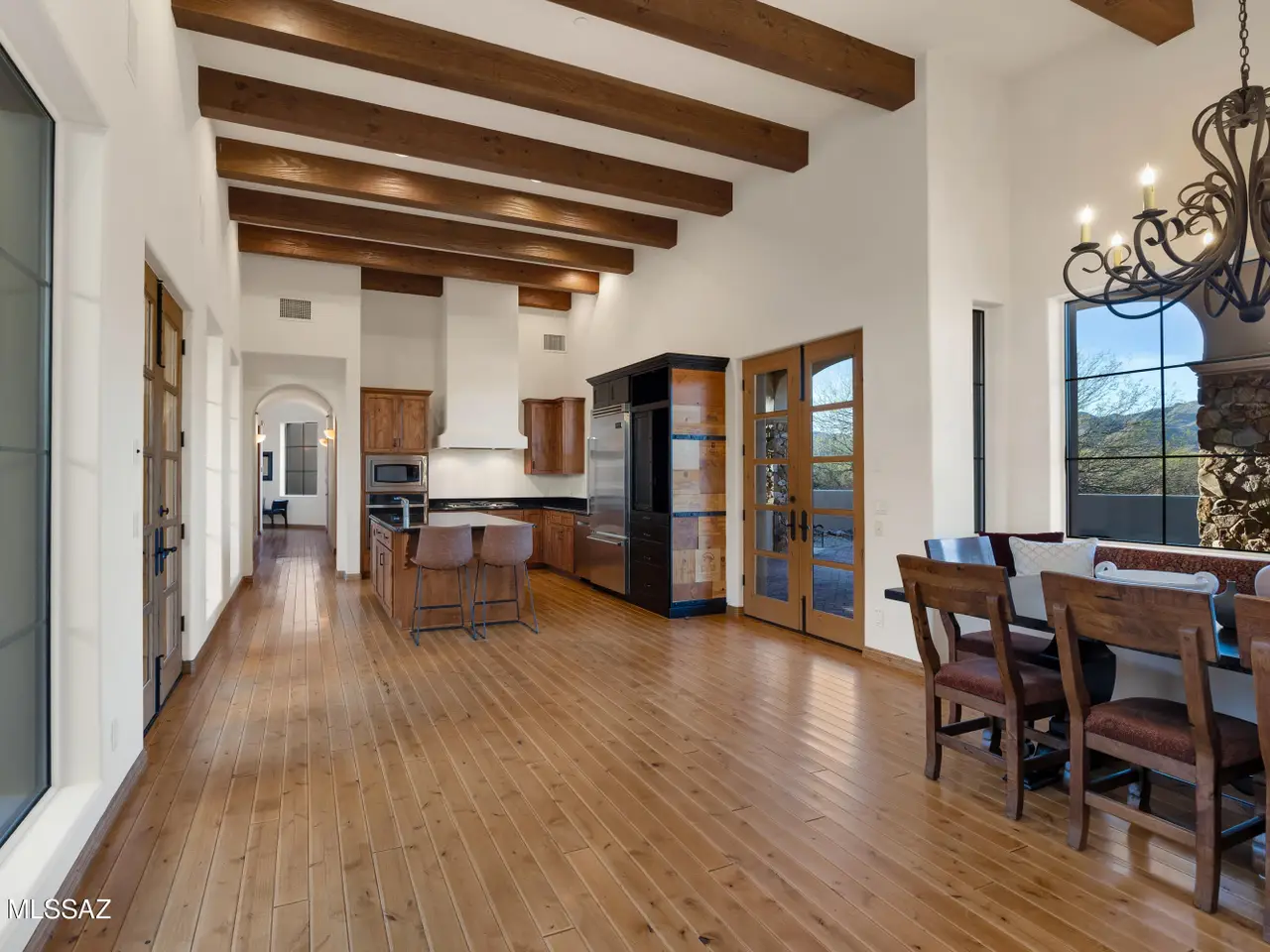 Enduring Mediterranean influence by RB Construction, SOLID masonry construction for unmatched durability and timeless architecture. 4,484 sq ft of grand scale living space, this home presents a unique tranquil interior courtyard complete with a soothing spa and expansive paneled windows that frame the space beautifully. Adding to its appeal, the property is situated adjacent to 26 acres of pristine conservation easement, ensuring a serene natural backdrop and enhanced privacy.Upon entering, you're greeted by a striking wood-beamed foyer that seamlessly transitions into a sophisticated kitchen featuring black granite countertops, a prep sink, large island with a built-in dining area overlooking the patio.