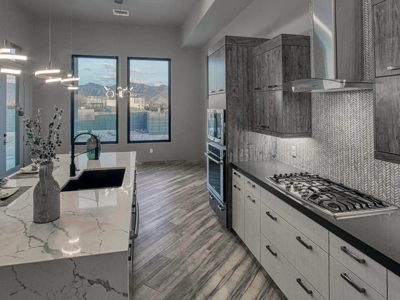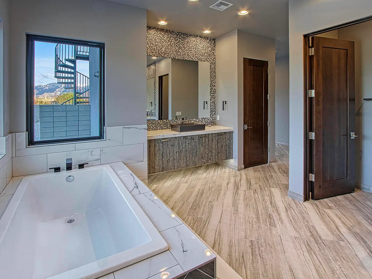 To be built custom home on a nearly one-acre lot. These pictures are same floorplan built in a different location. Stunning brand new contemporary on nearly one acre. 2,871 square feet, three bedrooms, 3.5 baths, open design concept. Quality craftsmanship throughout this custom home. Wall of windows including 10/16-foot slider with mountain views, designer kitchen with stainless appliances. Quartz counters with waterfall edge island and walk-in pantry, master suite includes luxurious bath with double vessel sink vanities, large soaking tub, walk-in shower, plus large walk-in closet with access to laundry. Large laundry room with loads of cabinets, and sink. Oasis walled backyard with large covered patio. Price includes this floorplan with standard features and lot premium. Some features in pictures are upgrades.
