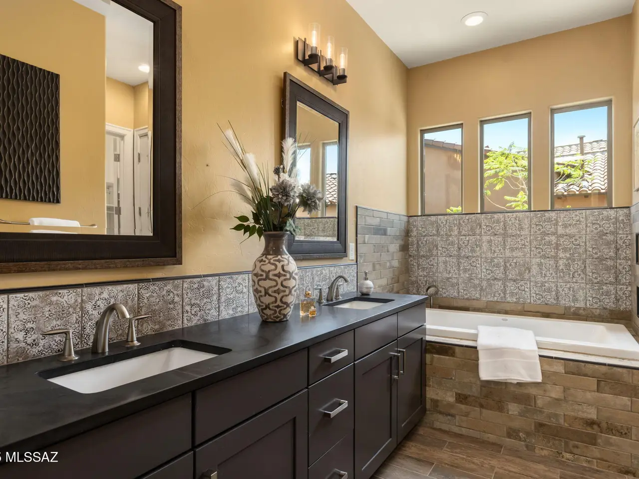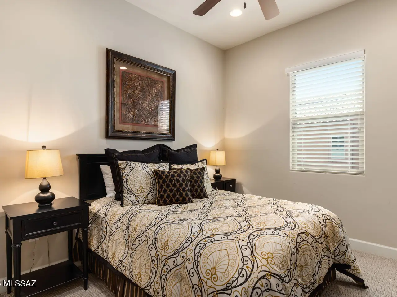 Fabulous 1,942 SF (3BD, 3BA) golf casita with Catalina Mtn views and lovely fully fenced yard in The Stone Canyon Club one of the USA's most desirable residential golf communities! Available mostly furnished, this delightful villa is highly upgraded and customized. Open great room design also enjoys a large covered patio that can be fully enclosed with auto rolling shades for cooler summer and warmer winter enjoyment. Beautifully landscaped and snake proofed yard includes gas firepit, artificial turf area, lovely landscaping and extensive paver patio areas. You'll appreciate the close location to the Clubhouse (marvelous restaurant) and Fitness Center (2 pools, spa, pickle ball & tennis courts, plus great exercise equipment). Ideal winter home with championship golf! Golf Membership Req'd