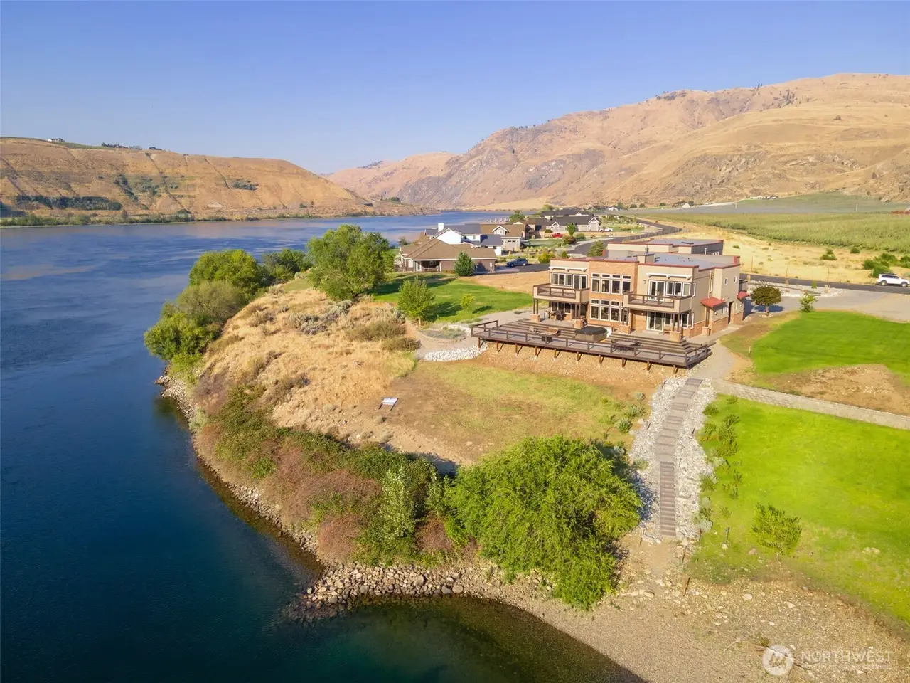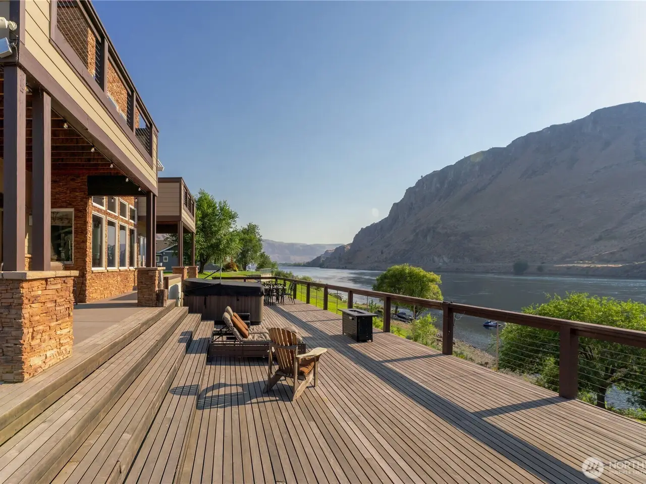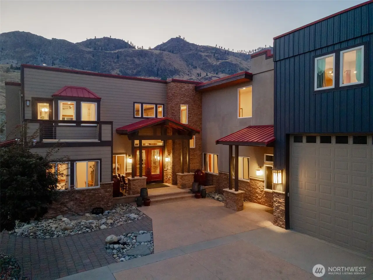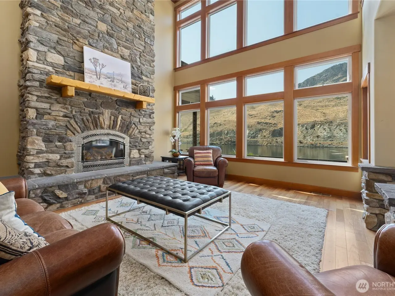 Stunning 6,884sf, 5bd/6.75bth low bank waterfront home w/ permitted buoy overlooking the Columbia River w/ unparalleled views, high-end luxury finishes & expansive outdoor living areas. The spacious home features high ceilings, hardwood floors, granite countertops, 2 primary bedroom suites w/ fireplaces, walk-in closets, baths w/ marble flooring & radiant heated floors. Great room w/ vaulted ceilings, sliding glass doors & gracious entertainer's kitchen w/ Viking appliances. 4 additional bedrooms, large media room w/ bunks & wet bar & attached garage w/ oversized doors that doubles as a yoga/exercise studio complete the home. Outdoor dining & lounge area w/ private spa. Fully furnished, turn-key Vacation Rental Home, 10 minutes from Chelan.